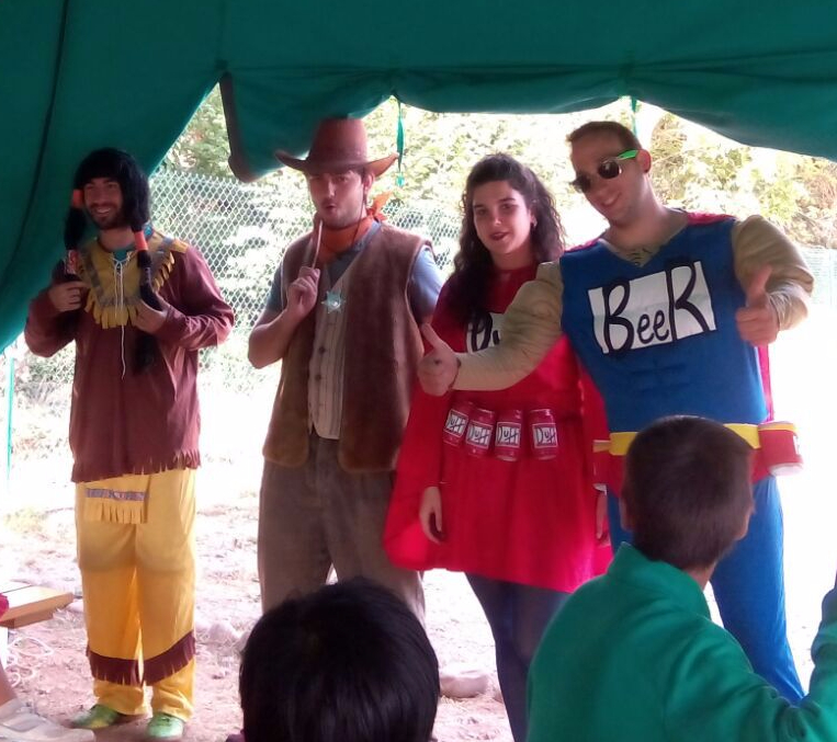El martes llegamos a Estados Unidos. Los indios y vaqueros del Lejano Oeste nos recibieron con el himno de fondo para contarnos todo lo que no sabíamos de su país. Por la mañana nos visitó Belinda, la psicóloga de la AECC, para explicarnos la importancia de protegernos del Sol. Para ello, hicimos una gymkhana en la que poner en práctica todo lo que nos habían enseñado. Al acabar, y bien untados de crema, enseñamos a los novatos las canciones típicas del campamento, mientras los monitores preparaban el comedor para el estreno del Lip Dub 2017. Ha quedado chulísimo, pero aún tendréis que esperar un poquito más para poder verlo en casa.