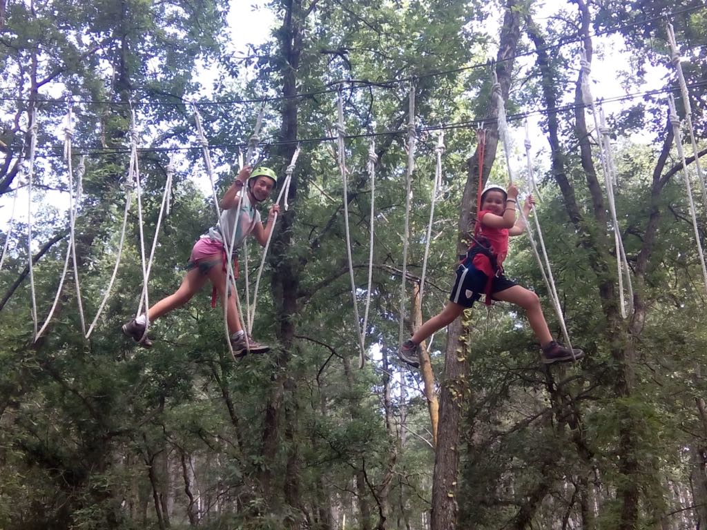Allí, las monitoras del parque nos dieron las instrucciones de seguridad para poder superar con éxito las pruebas que teníamos que hacer, no aptas para gente con vértigo. Nos pasamos la mañana entera entre tirolinas, mosquetones, puentes colgantes…