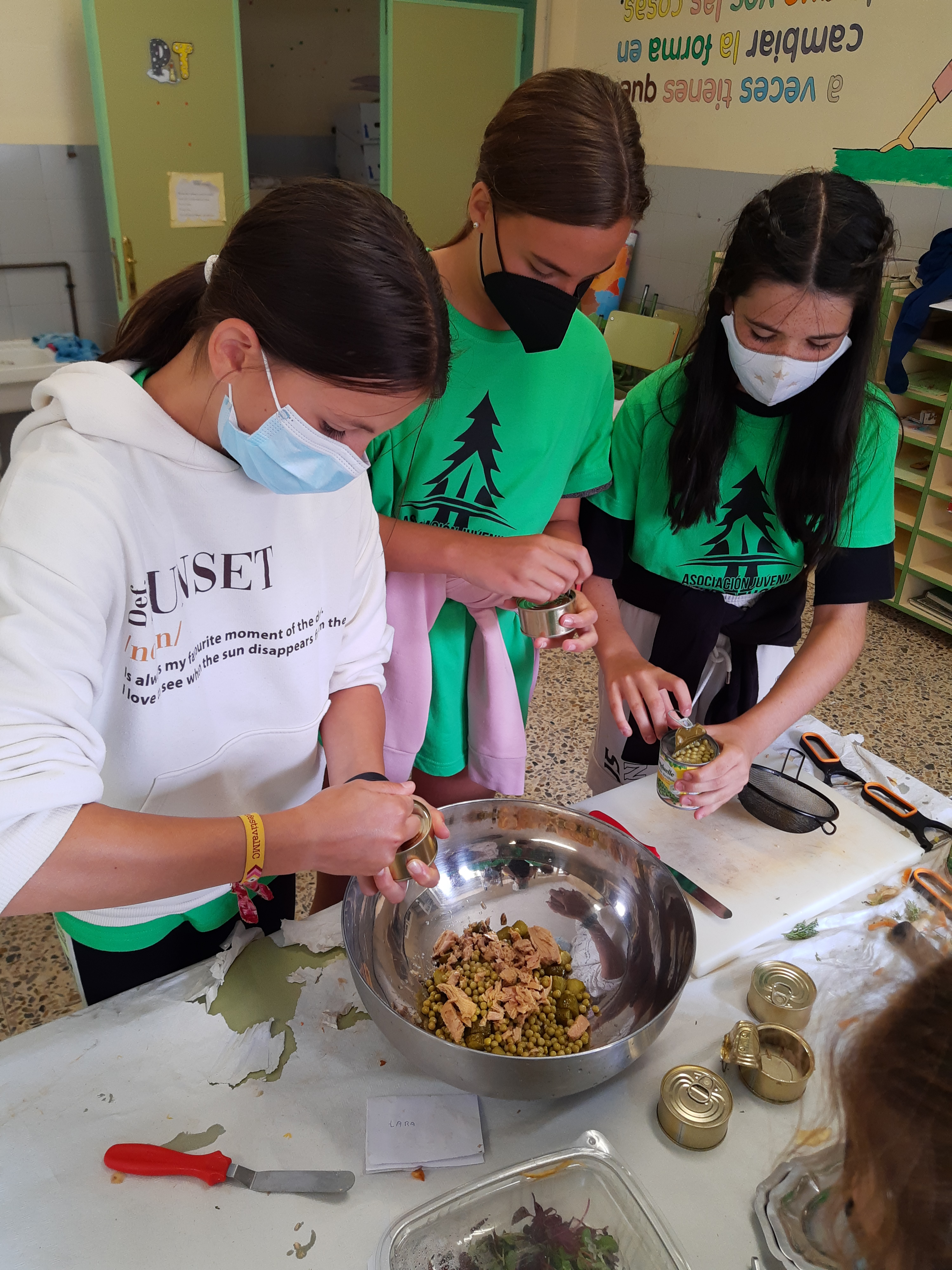 Empezamos el lunes 12 de julio desde el Parque Santa Ana, donde montamos nuestro añorado tipi e hicimos unos juegos para conocernos. Después, bajamos al regadío para hacer una gymkhana entre las huertas de los vecinos y vecinas de Cenicero. De vuelta, preparamos un menú digno de estrella Michelin con Álvaro y Noelia (¡Muchas gracias por todo!): ensaladilla rusa con mayonesa de aguacate y aire de lima, costillas a baja temperatura con salsa barbacoa y patatas y cremoso de yogur con tierra de galletas, esponja de sandía y helado. Por la tarde, jugamos a los misiles para acabar el día.
