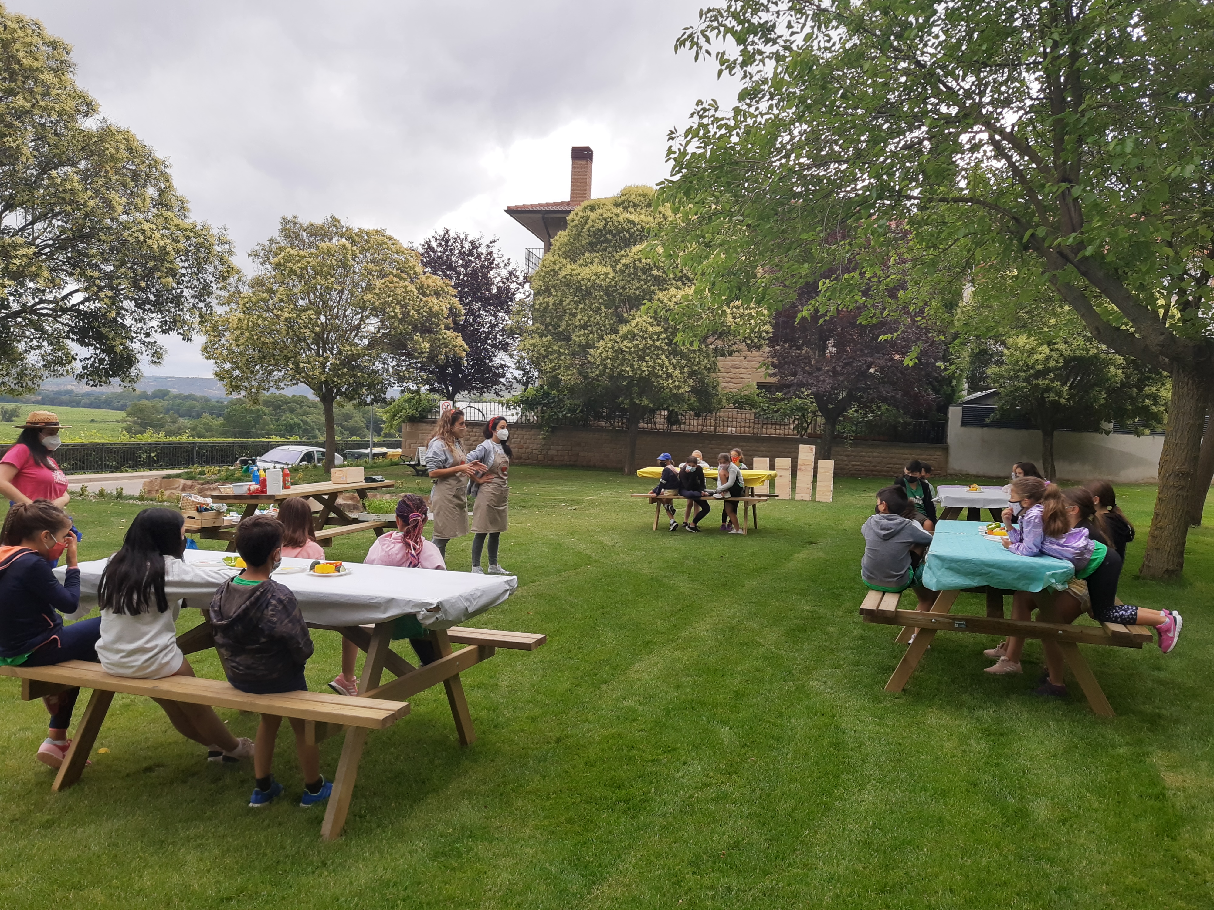 Pensamos que iba a ser una buena oportunidad instalarnos en Cenicero. Siempre estamos en busca de parajes para descubrir y quizás haya algunos cercanos que nuestros peques todavía no conocían. Tuvimos que renunciar a nuestras noches de tienda de campaña y ya tenemos ganas de meternos en el saco de dormir. También pensamos en apoyar a la hostelería del pueblo con las comidas. Metimos todo en una coctelera con mucha ilusión y salió nuestro Campamento Urbano Cenicero 2021.
