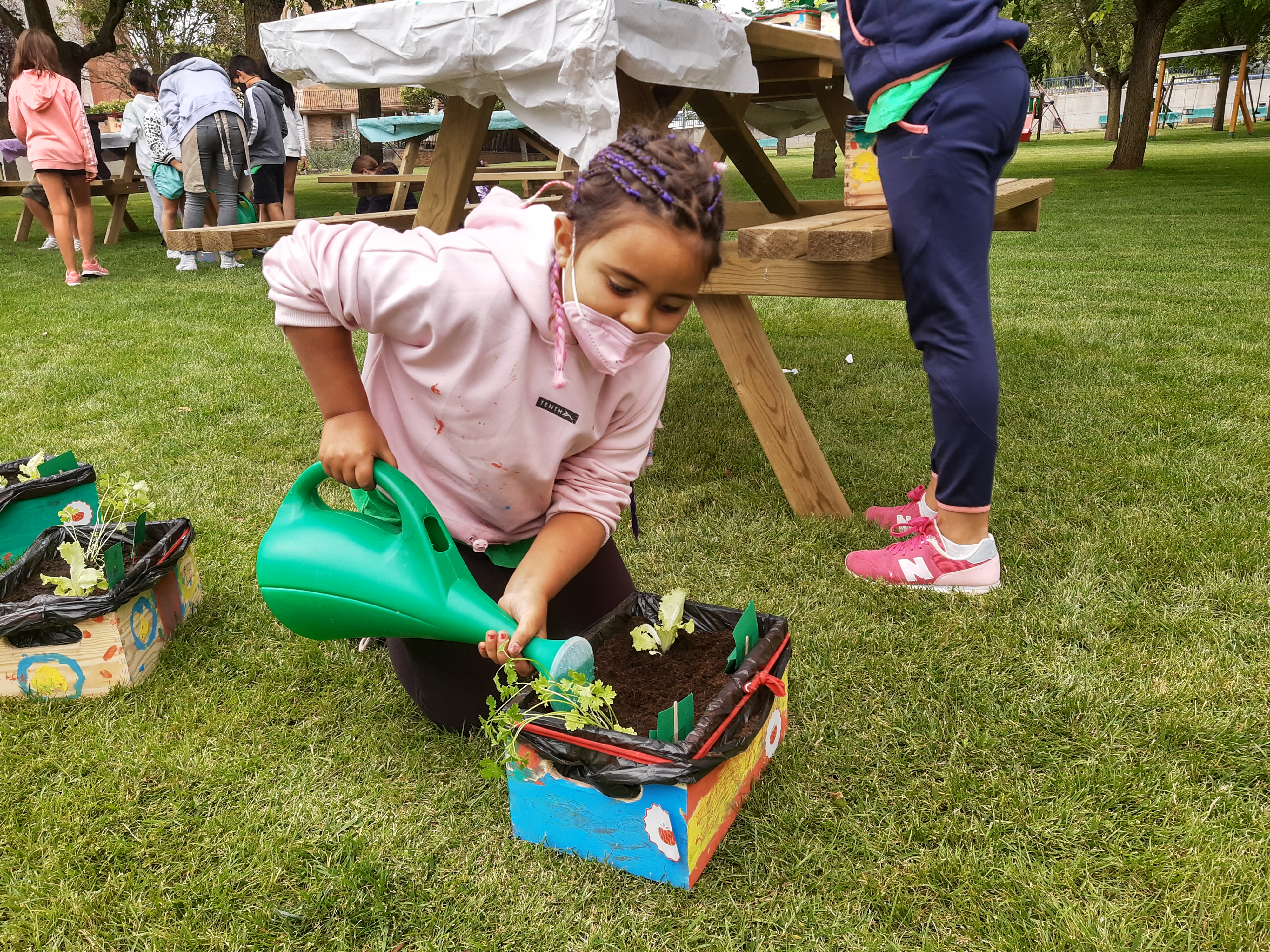 El miércoles los monitores aparecieron con buzo y sombrero de paja: el día de los agricultores. Nada más empezar el día, fuimos hasta la ventana de nuestra compañera Izaro para cantarle el cumpleaños feliz. A la vuelta, ¡alguien había llegado al Parque Santa Ana! Las chicas de La Huerta de Rizos nos prepararon un taller con el que hicimos una pequeña huerta en un cajón de madera. ¿Cómo van vuestros cultivos? Después comenzamos los preparativos del Lipdub que grabamos por la tarde, después de llenar la tripa con unas riquísimas lentejas y albóndigas. ¡Nos os perdáis nuestra versión de La Venda!