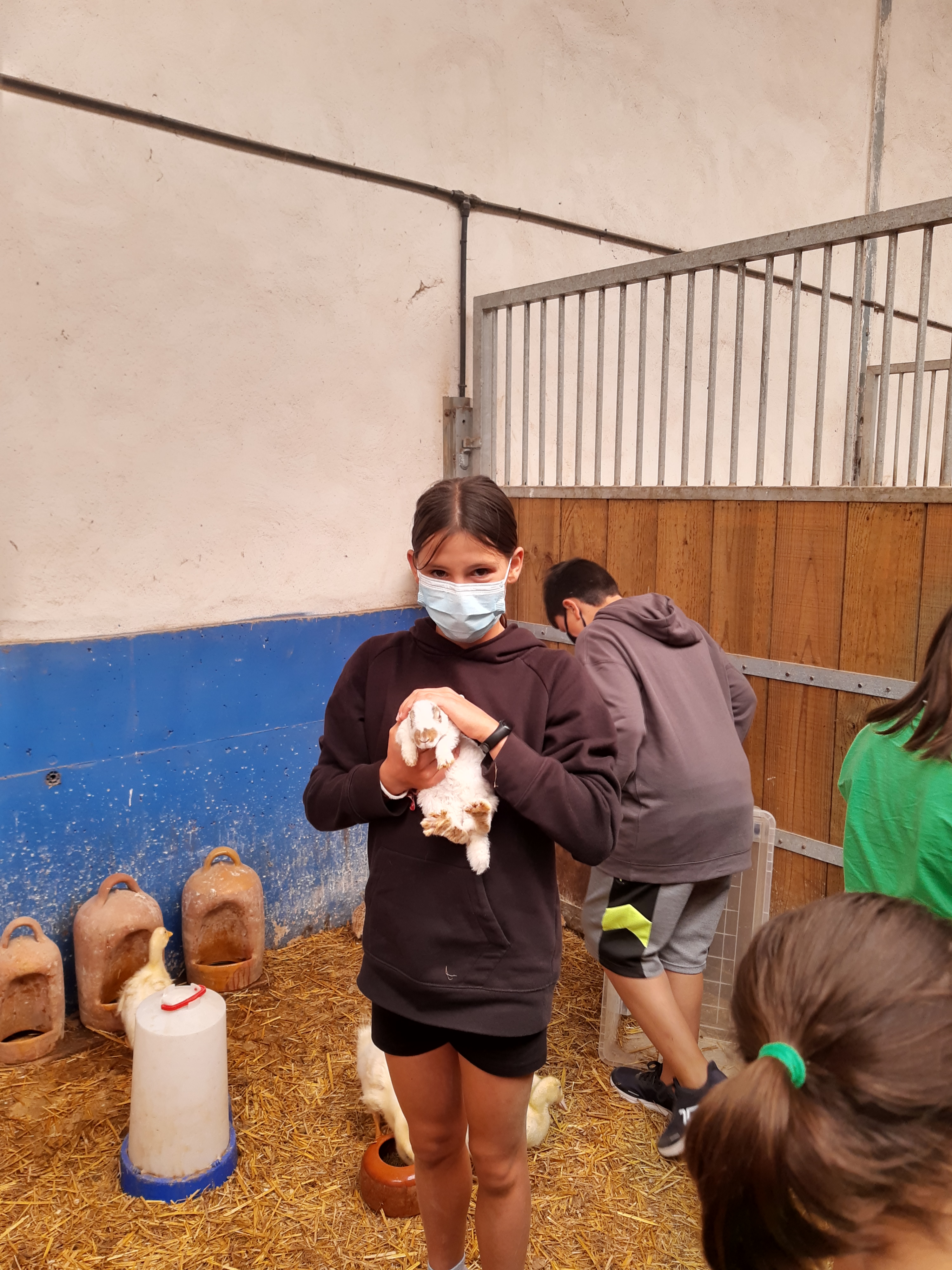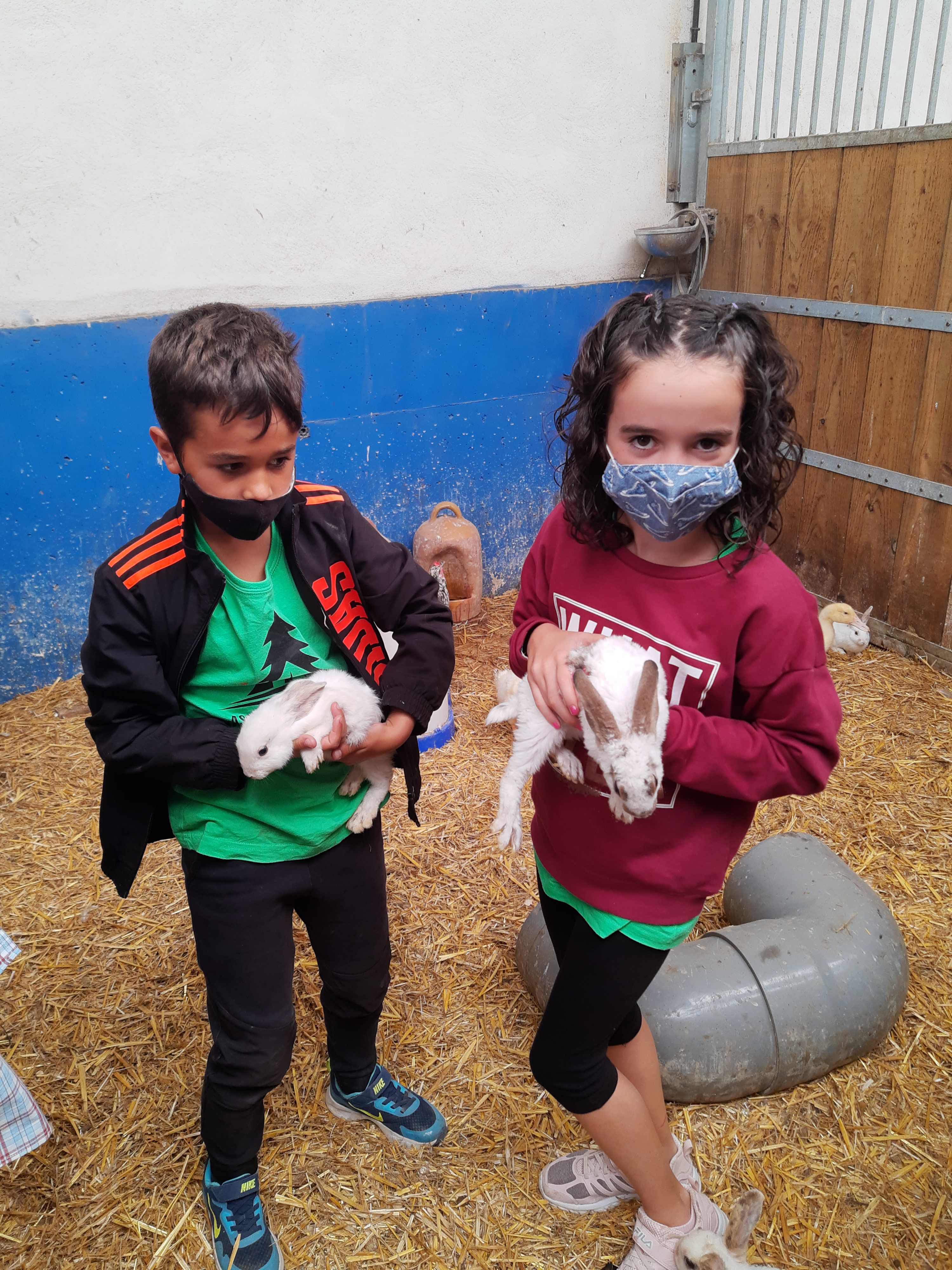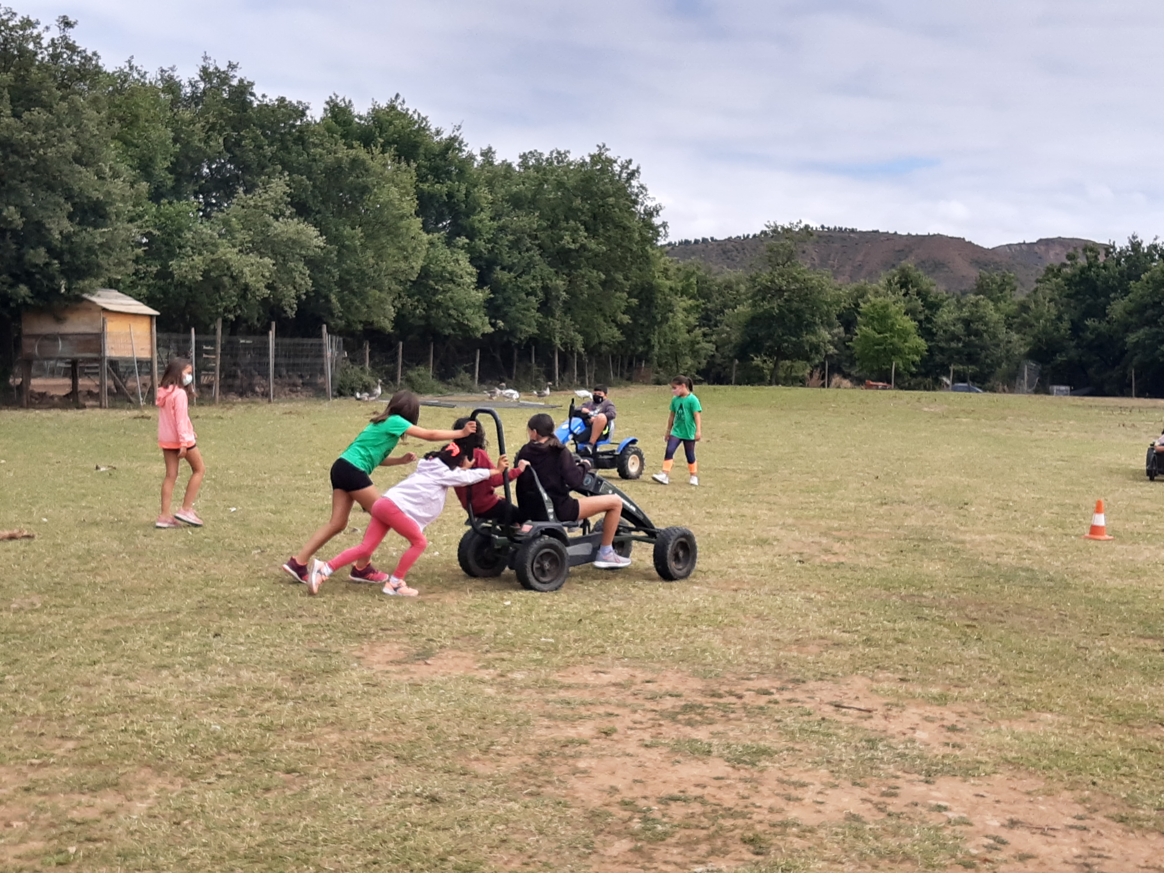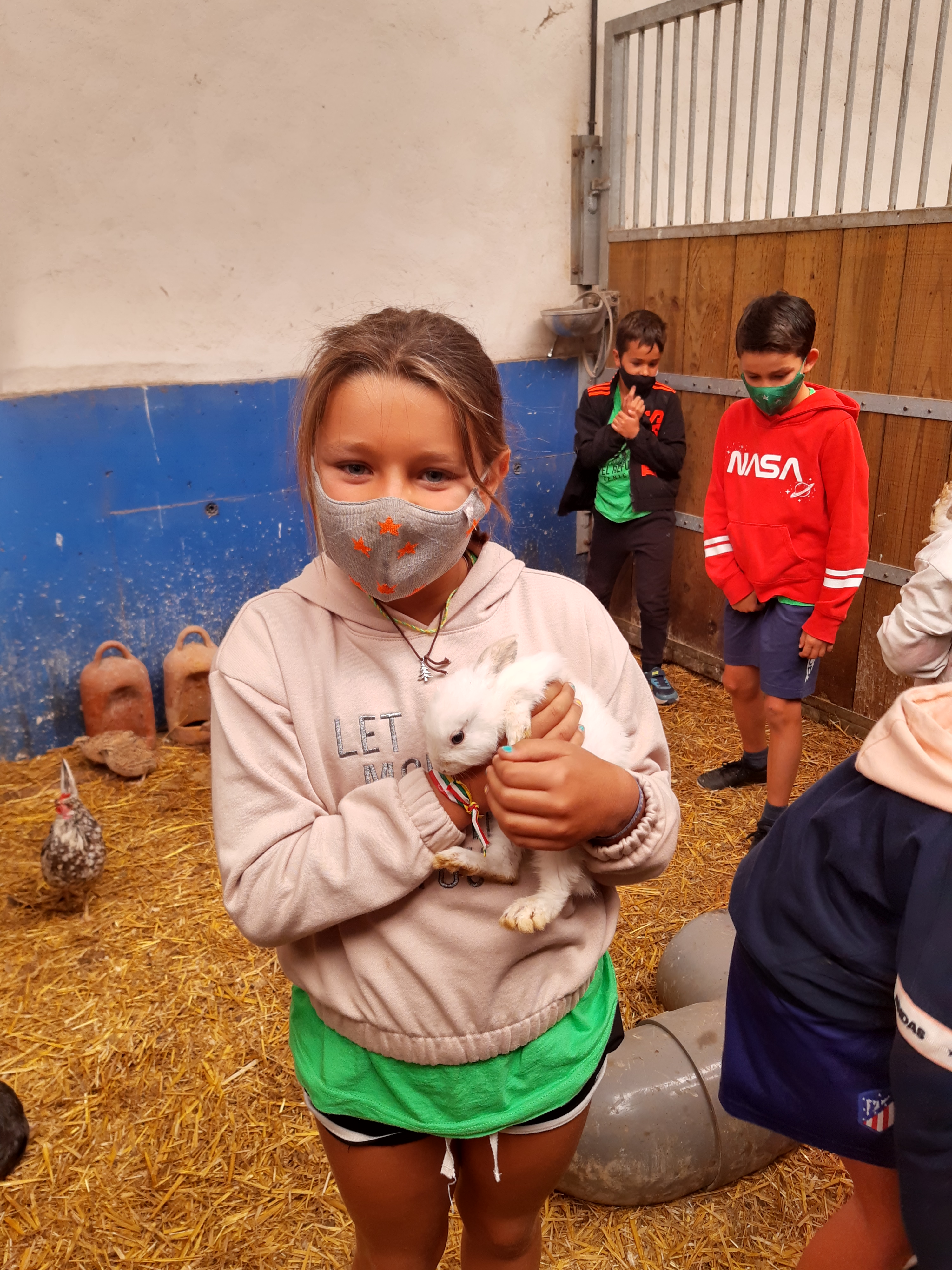 El jueves volvimos a salir de excursión, aunque esta vez en autobús. Fuimos hasta la Granja Escuela El Carrascal, donde nos explicaron cómo era la vida de los animales de la granja y pudimos aprender muchas curiosidades de ellos. ¡Y pudimos montar en pony y hacer carreras de tractor a pedales! De regreso a Cenicero, comimos una paella en las piscinas y, por la tarde, hicimos juegos y estrenamos nuestro tobogán acuático.