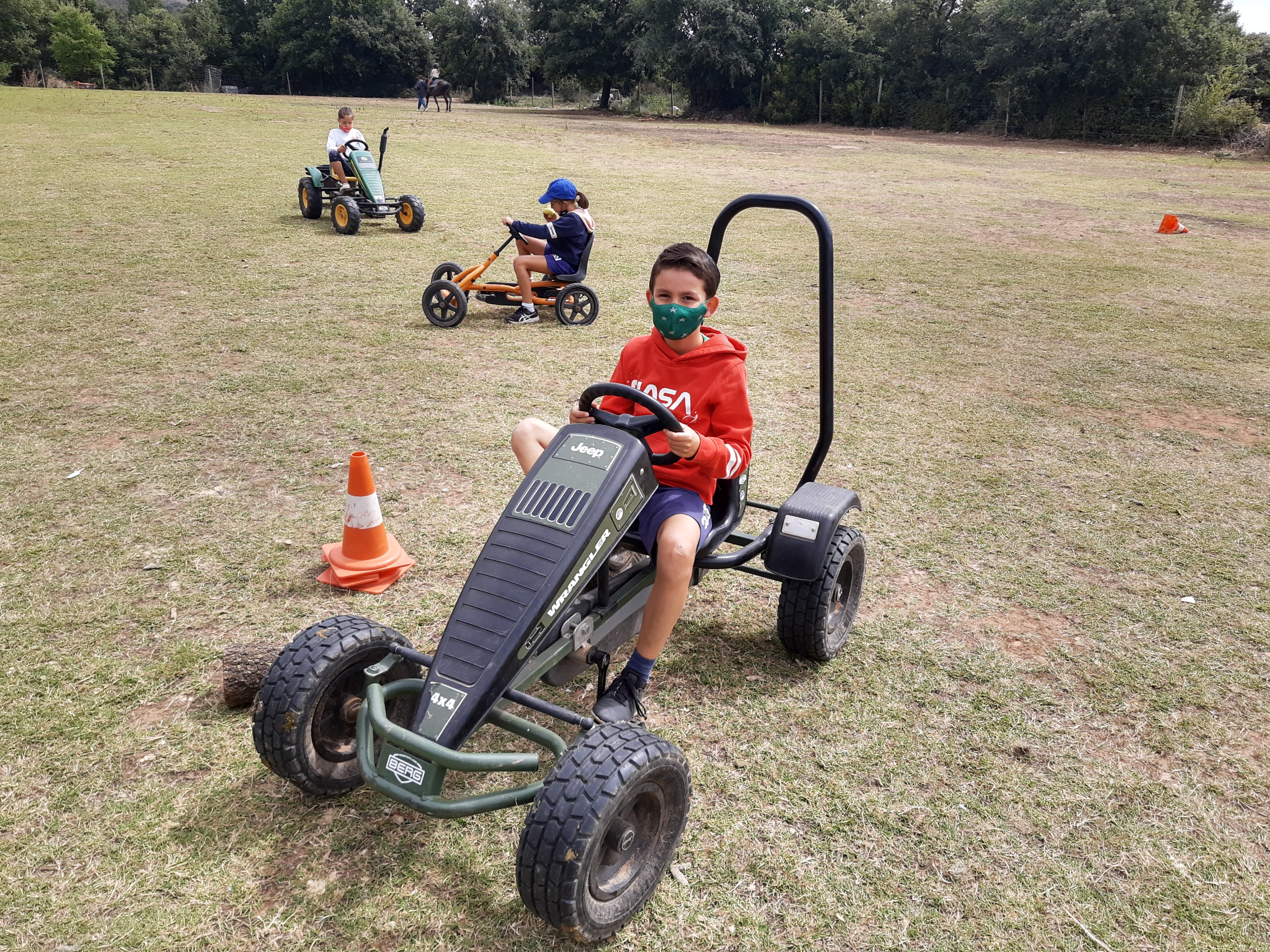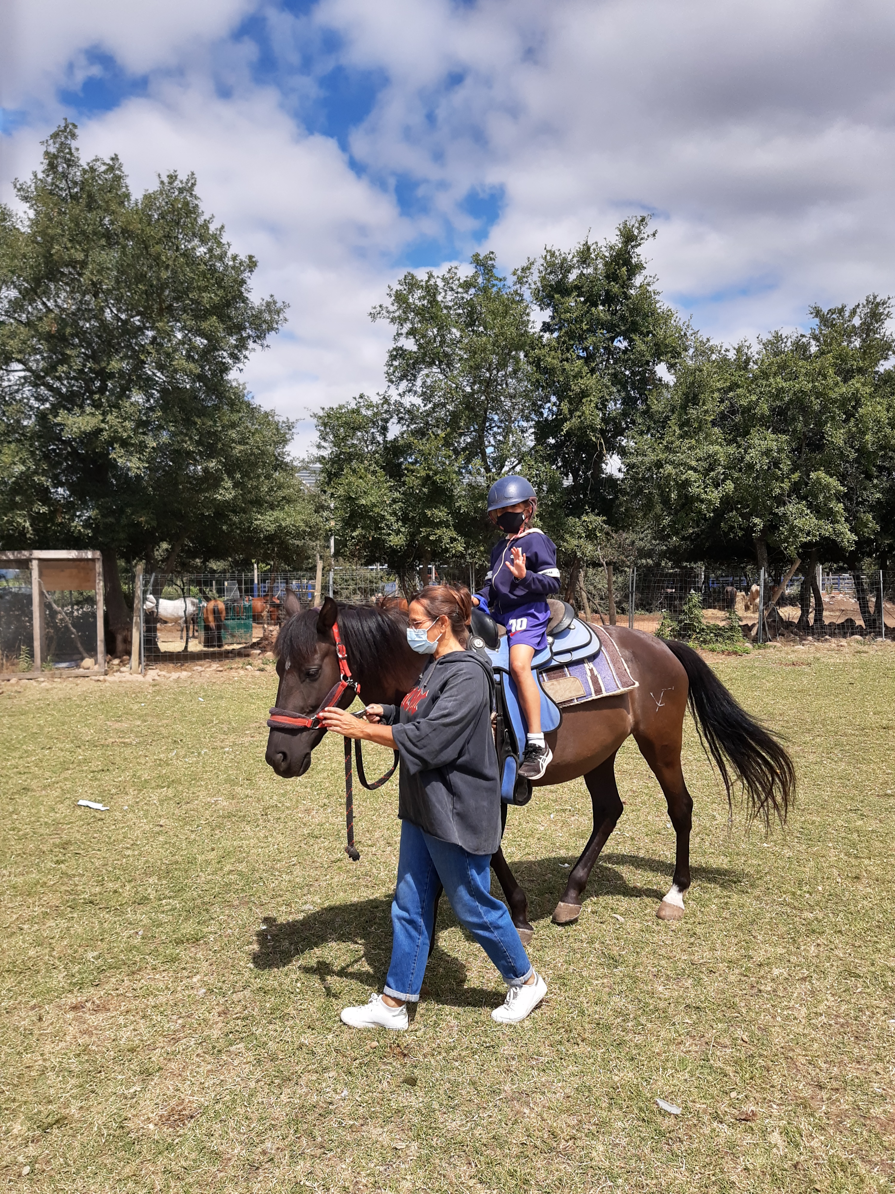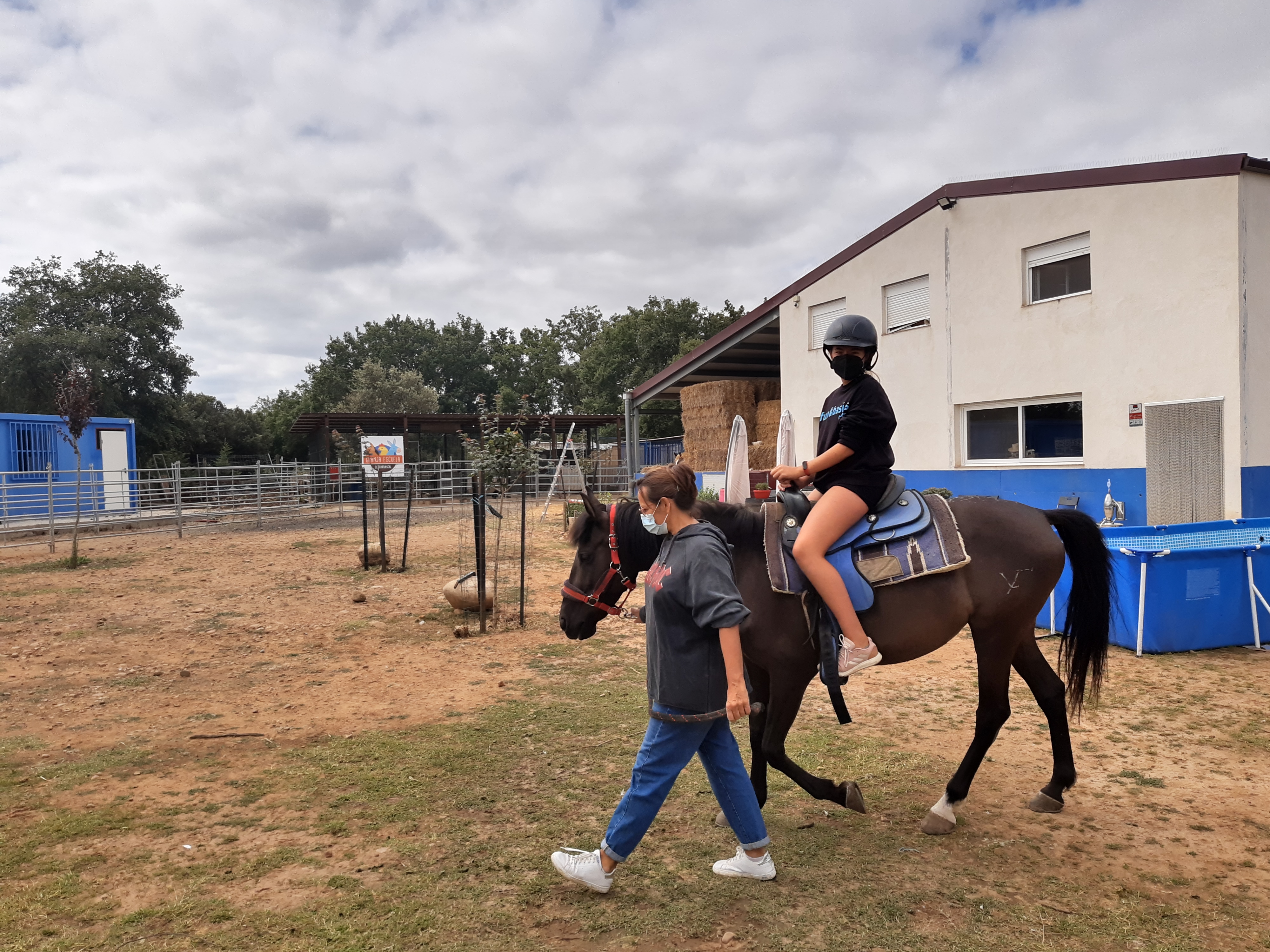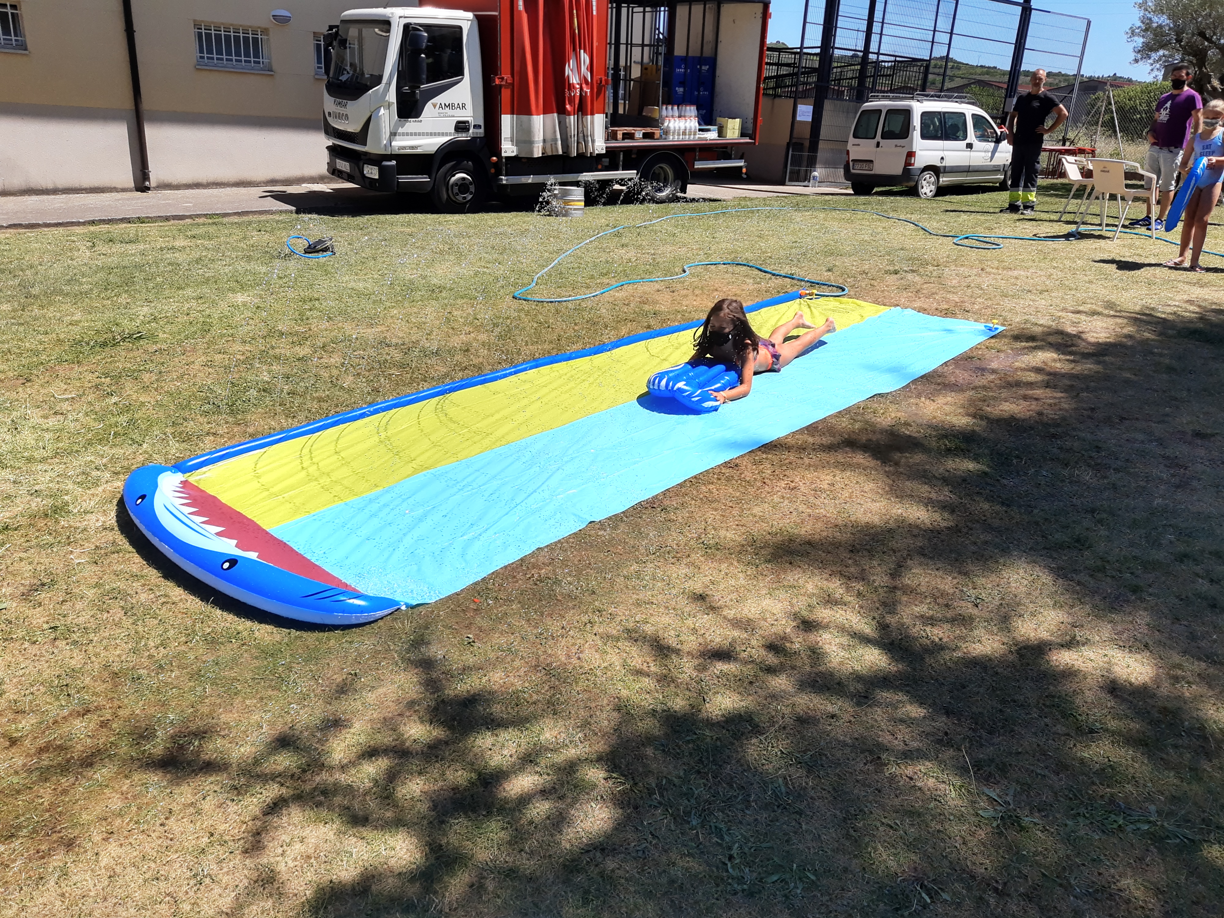 El jueves volvimos a salir de excursión, aunque esta vez en autobús. Fuimos hasta la Granja Escuela El Carrascal, donde nos explicaron cómo era la vida de los animales de la granja y pudimos aprender muchas curiosidades de ellos. ¡Y pudimos montar en pony y hacer carreras de tractor a pedales! De regreso a Cenicero, comimos una paella en las piscinas y, por la tarde, hicimos juegos y estrenamos nuestro tobogán acuático.