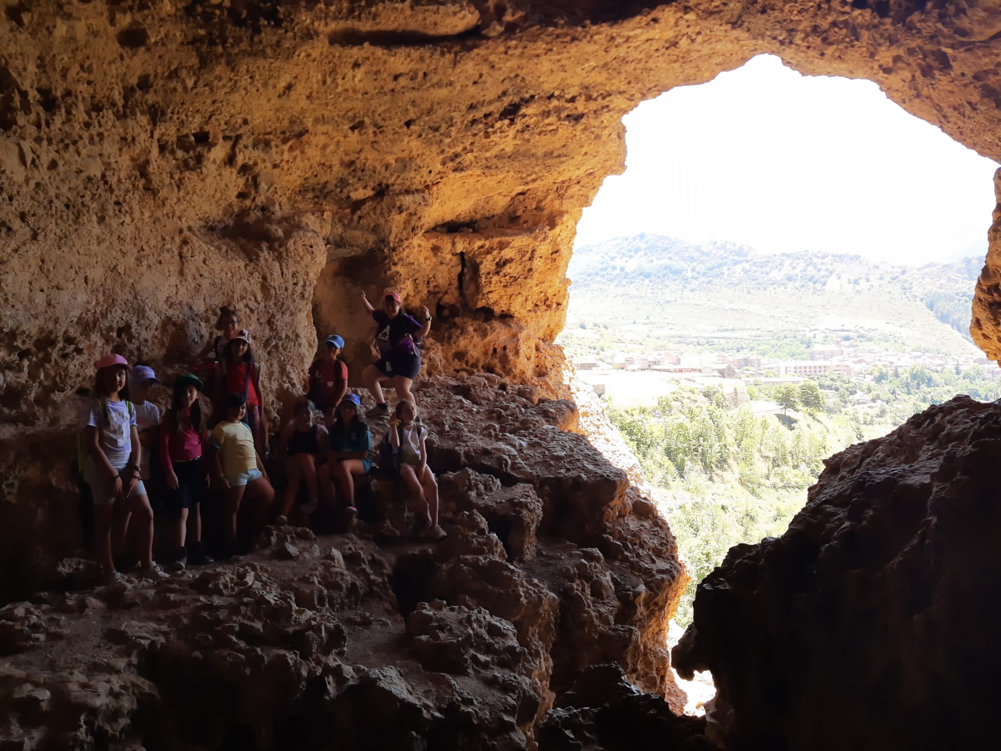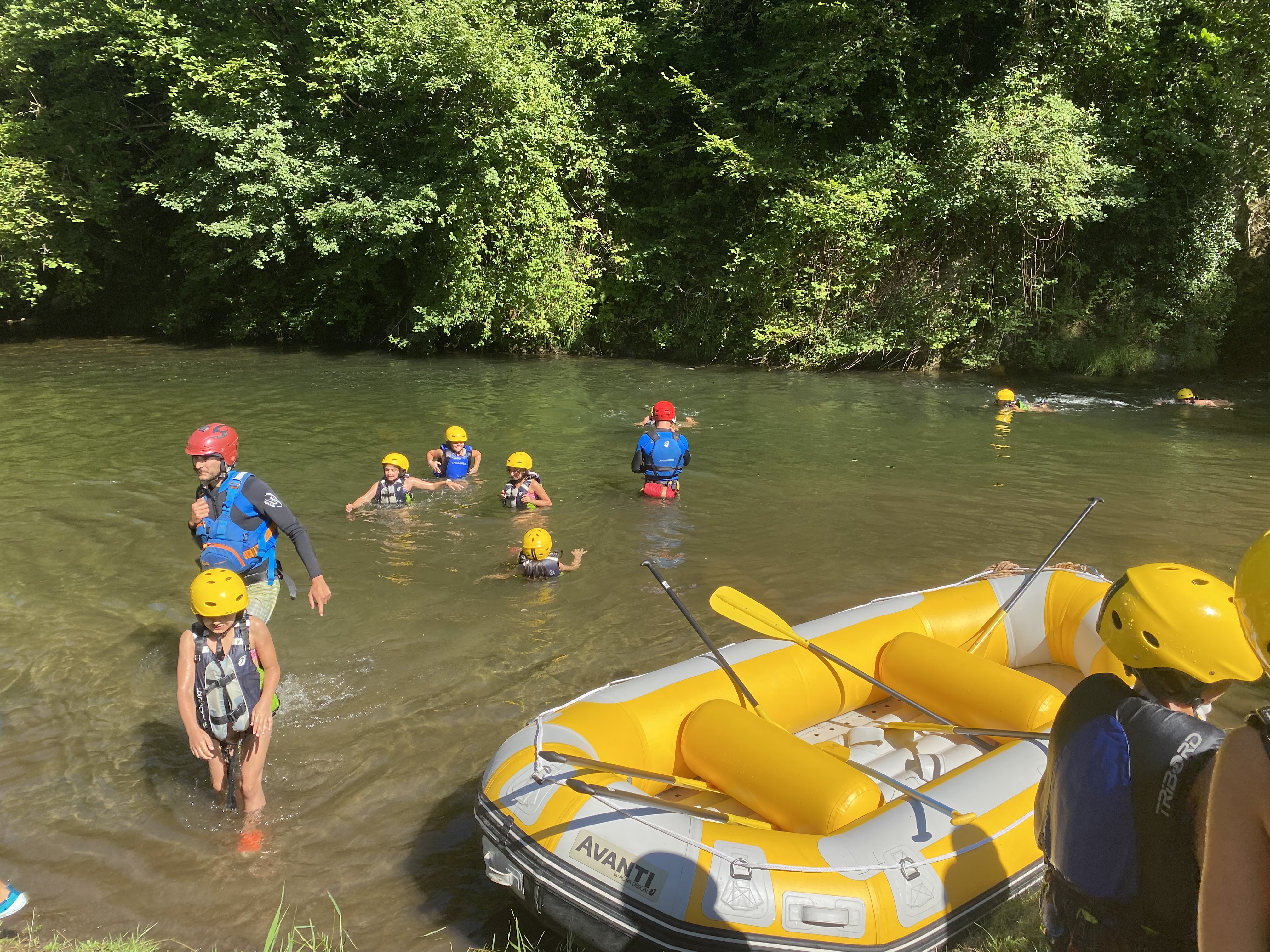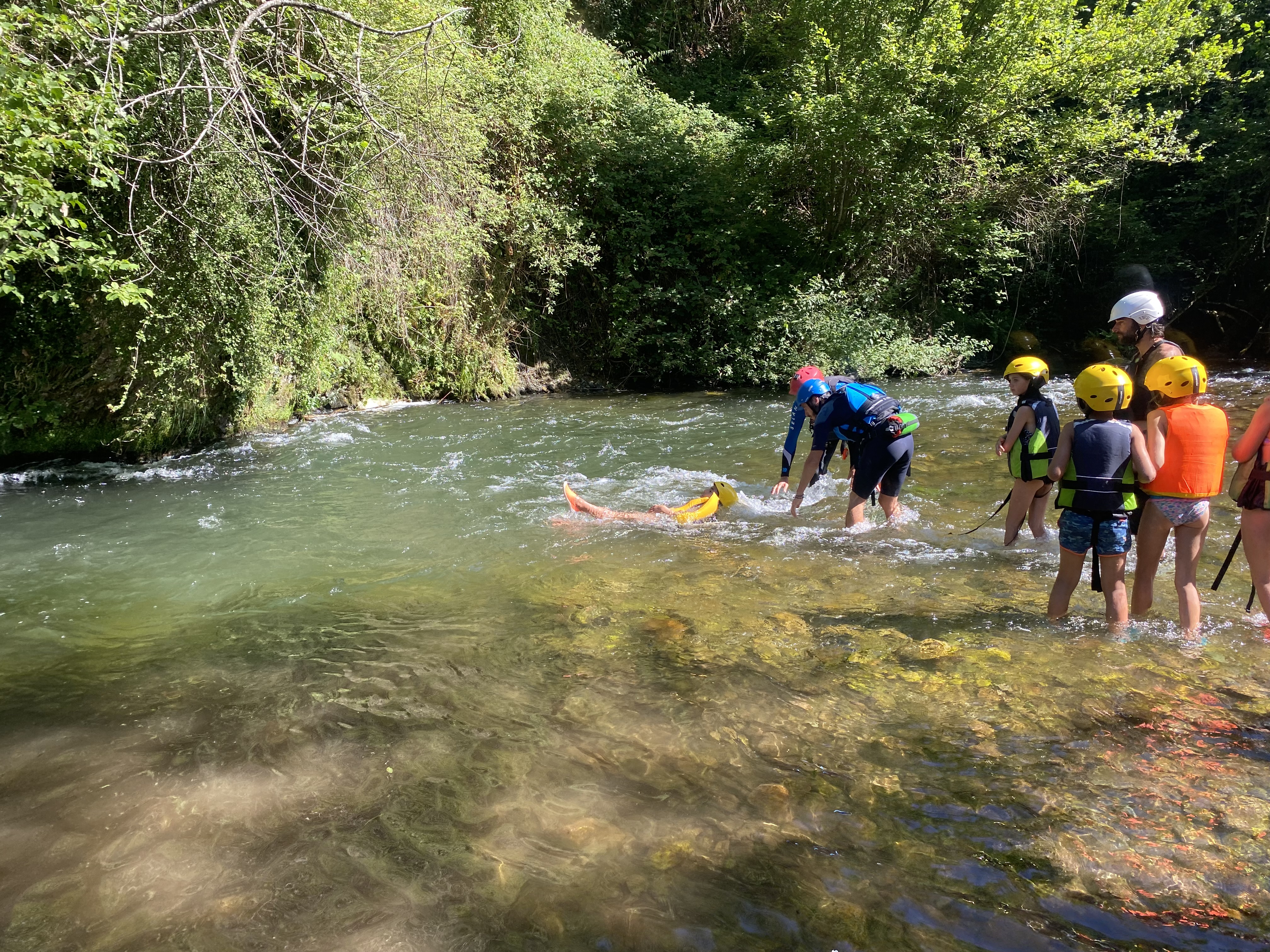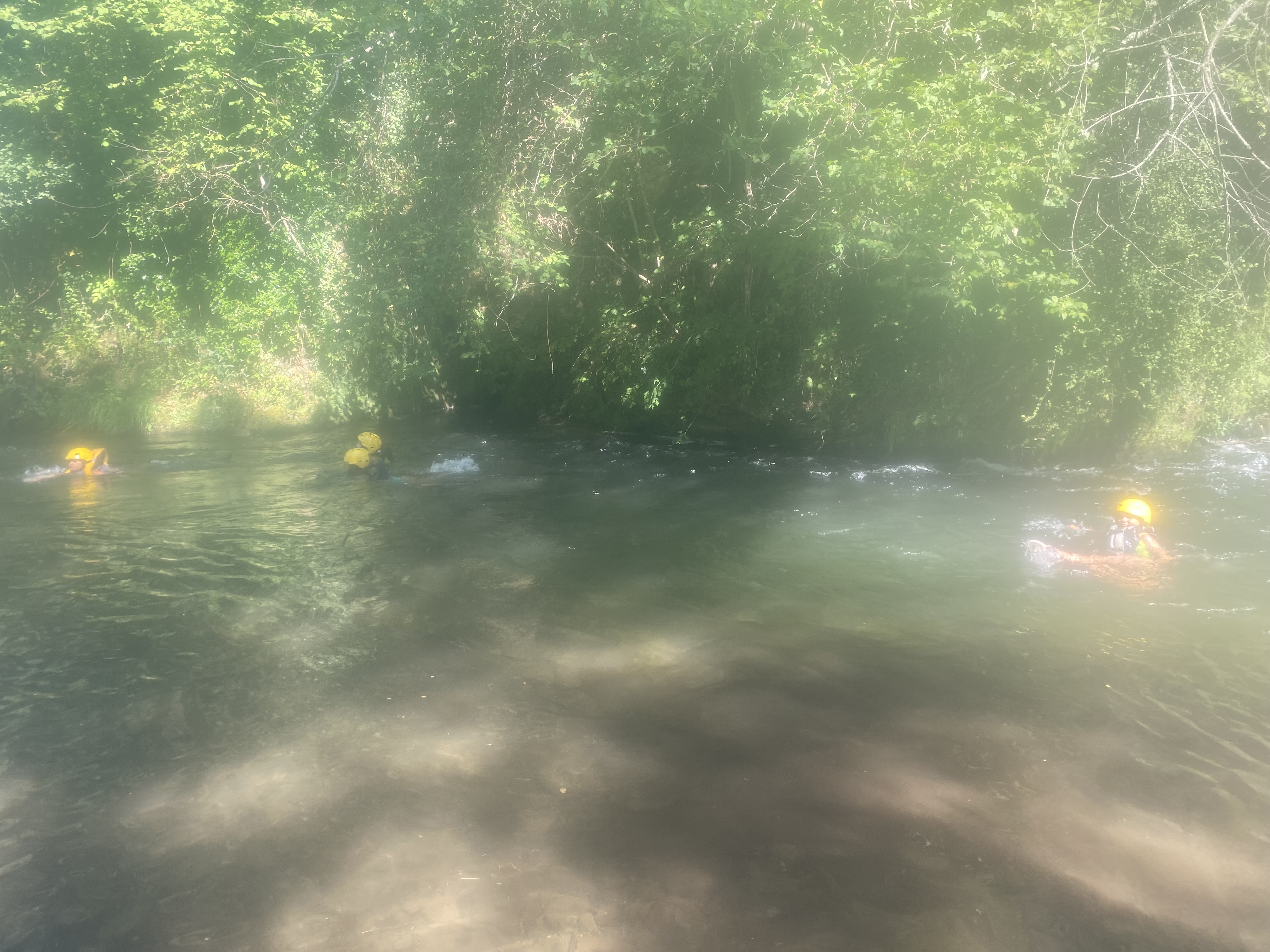 El tercer día tocó cambiar los papeles. Mientras esta vez eran los mayores los que se quedaban en el campamento preparando pociones y tiñendo camisetas, los pequeños salían rumbo a Anguiano. Desde allí, emprendieron el camino que llevaba hasta la cueva de un tal Nuño, que al parecer se había olvidado allí el burro y los caballos. Al volver a Anguiano, se montaron en unos botes para practicar rafting en el río Najerilla. Aprendieron a remar, rescatar a gente del agua e incluso a dejarse llevar por la corriente. Al volver al campa, los mayores contaron que habían estado en la piscina. Ya juntos, por la noche, jugamos a dos juegos míticos y tradicionales del campa: el ogro y el agujero negro.