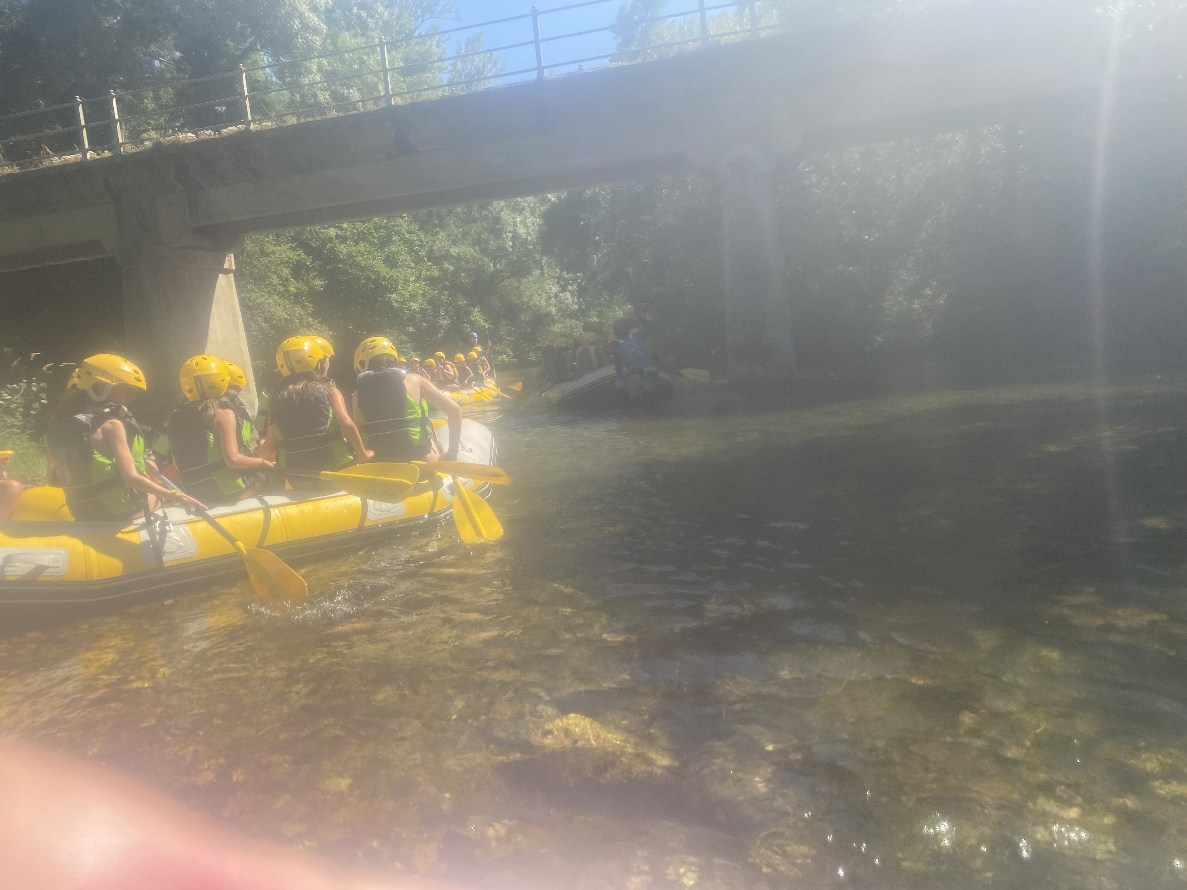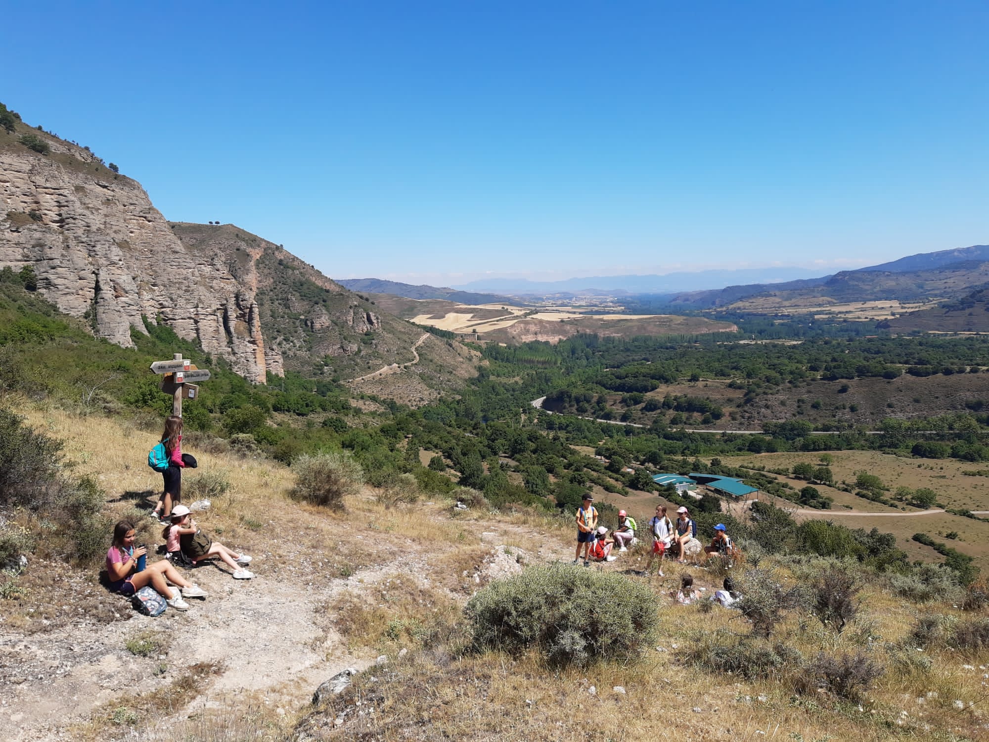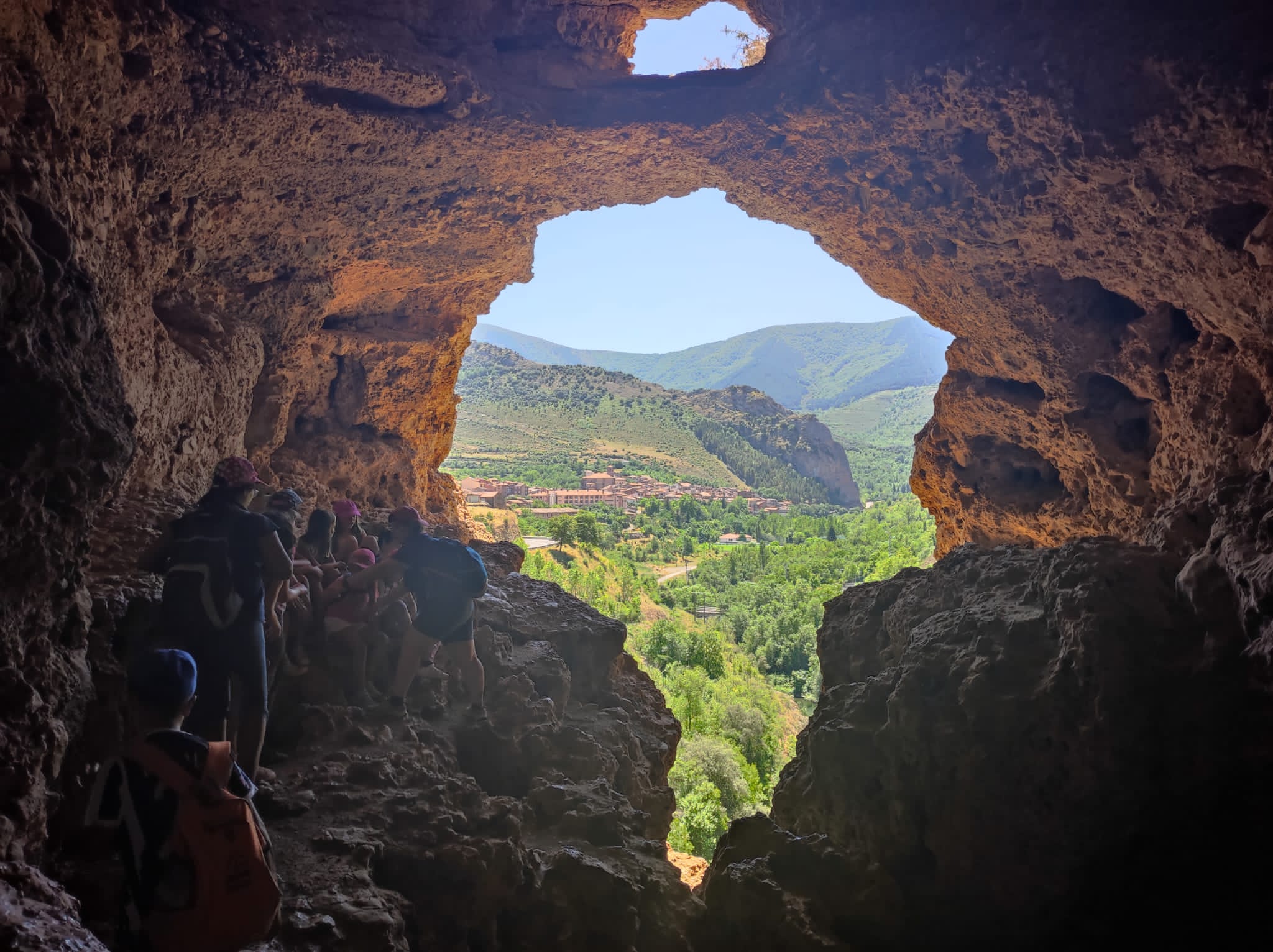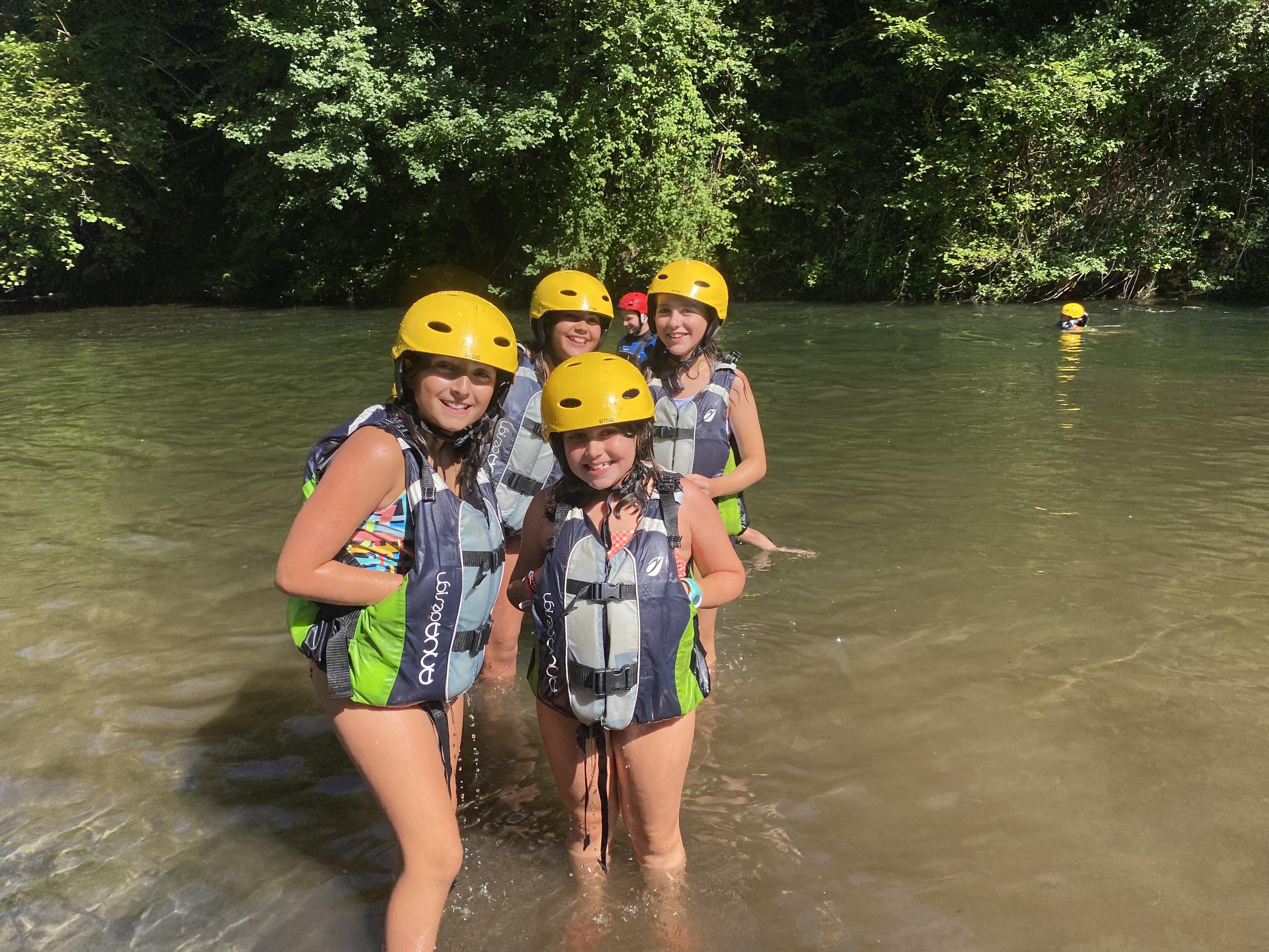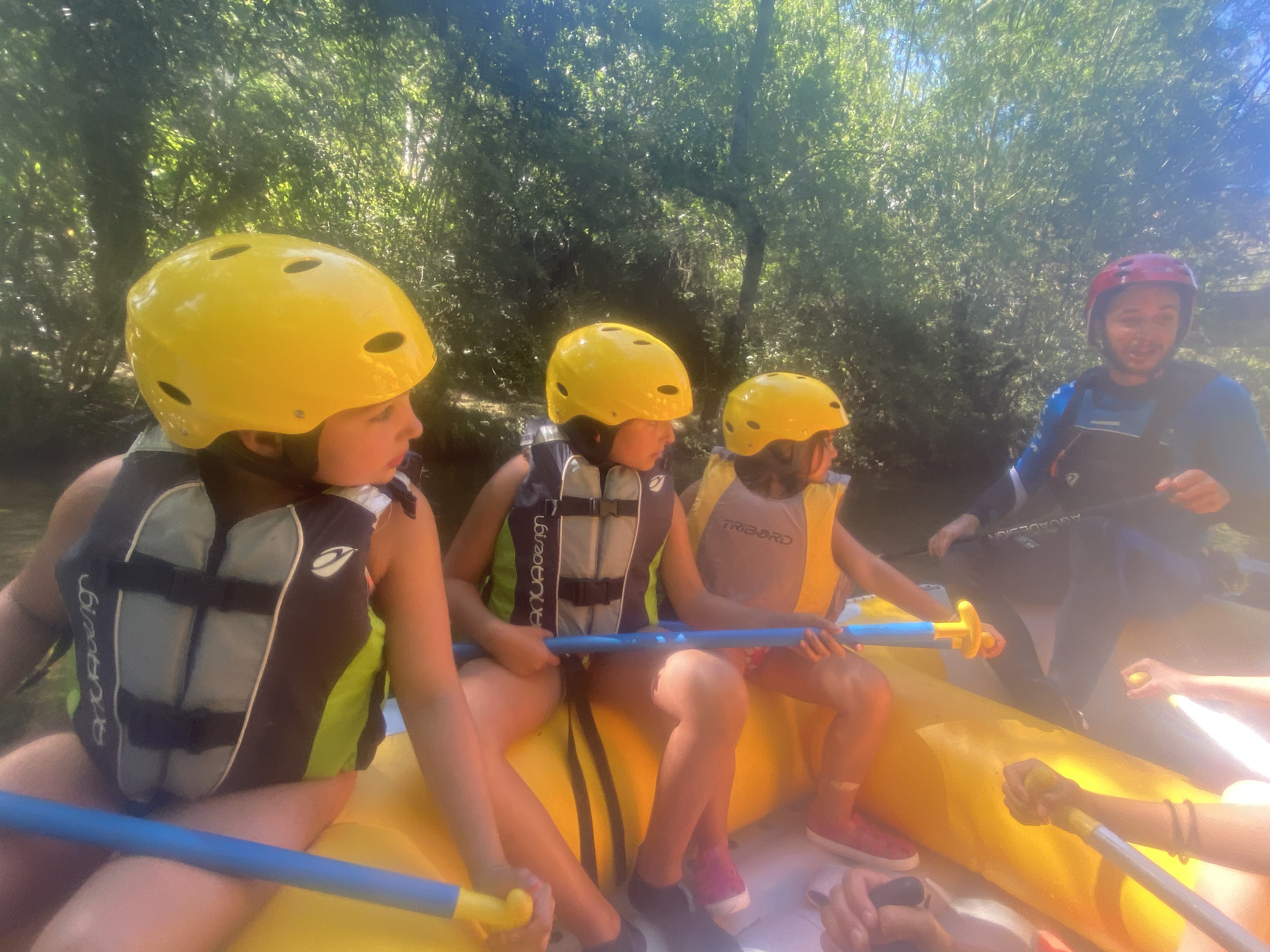 El tercer día tocó cambiar los papeles. Mientras esta vez eran los mayores los que se quedaban en el campamento preparando pociones y tiñendo camisetas, los pequeños salían rumbo a Anguiano. Desde allí, emprendieron el camino que llevaba hasta la cueva de un tal Nuño, que al parecer se había olvidado allí el burro y los caballos. Al volver a Anguiano, se montaron en unos botes para practicar rafting en el río Najerilla. Aprendieron a remar, rescatar a gente del agua e incluso a dejarse llevar por la corriente. Al volver al campa, los mayores contaron que habían estado en la piscina. Ya juntos, por la noche, jugamos a dos juegos míticos y tradicionales del campa: el ogro y el agujero negro.