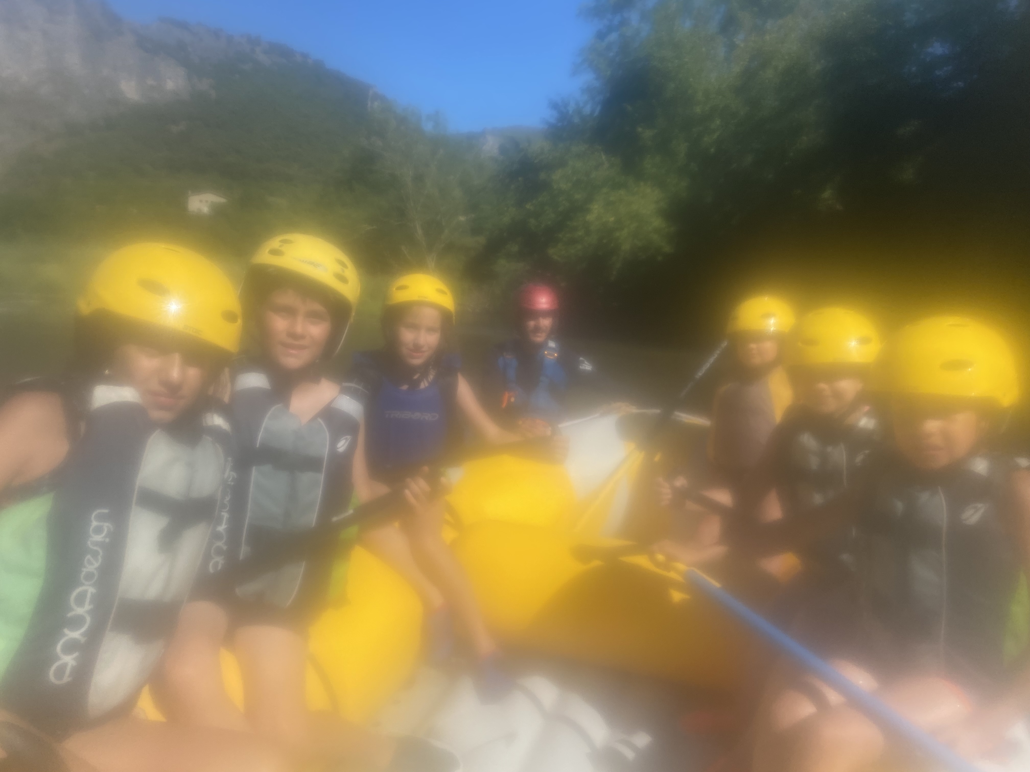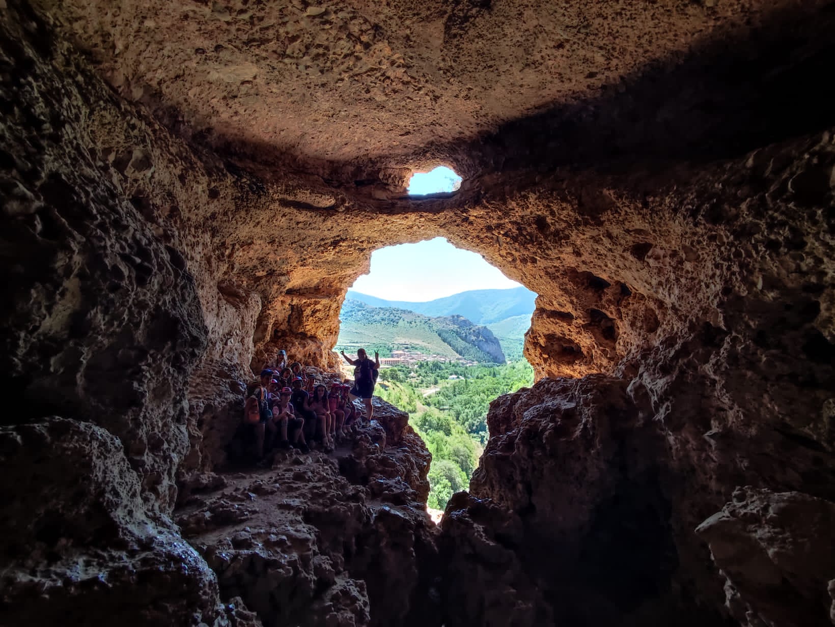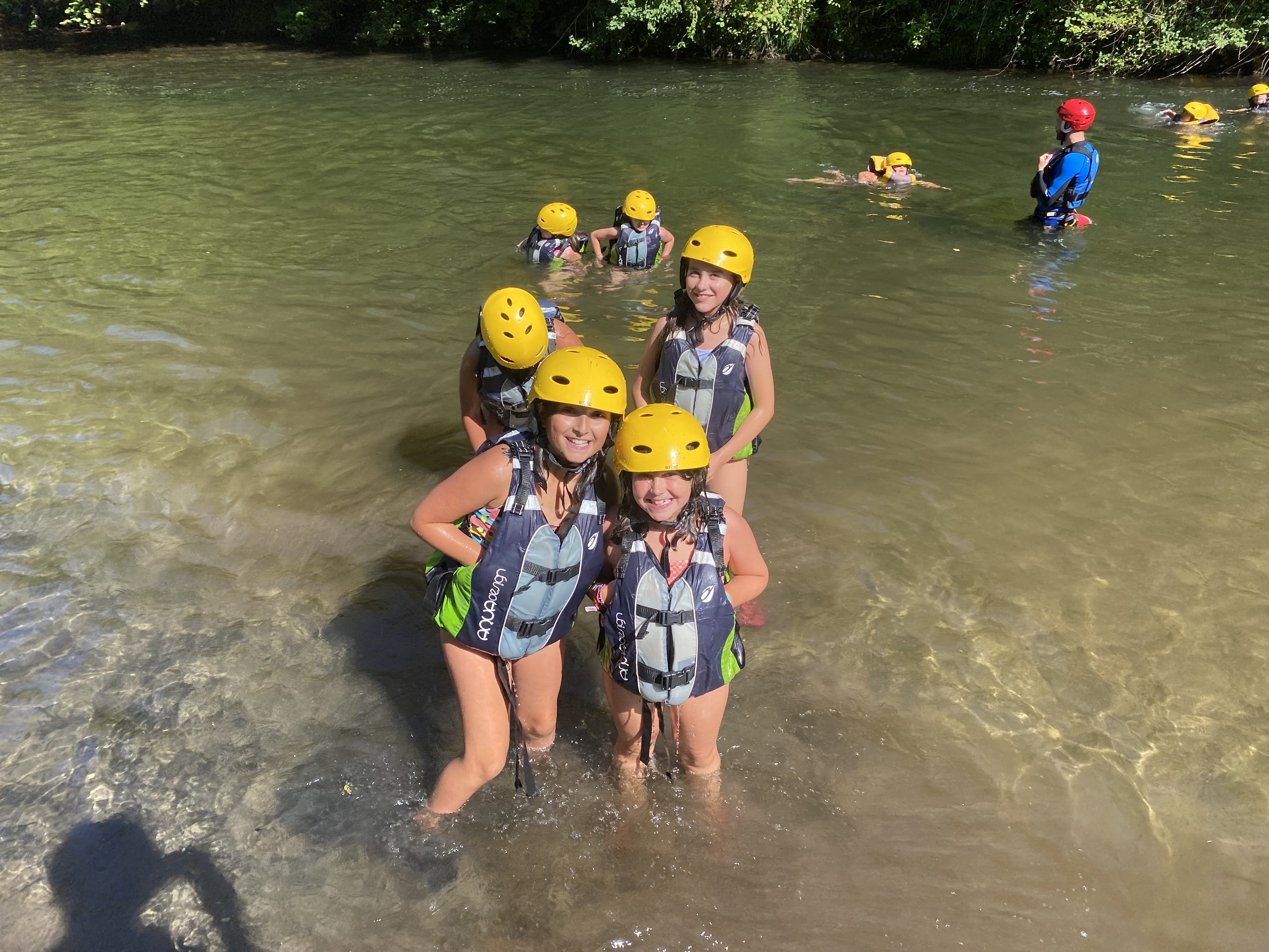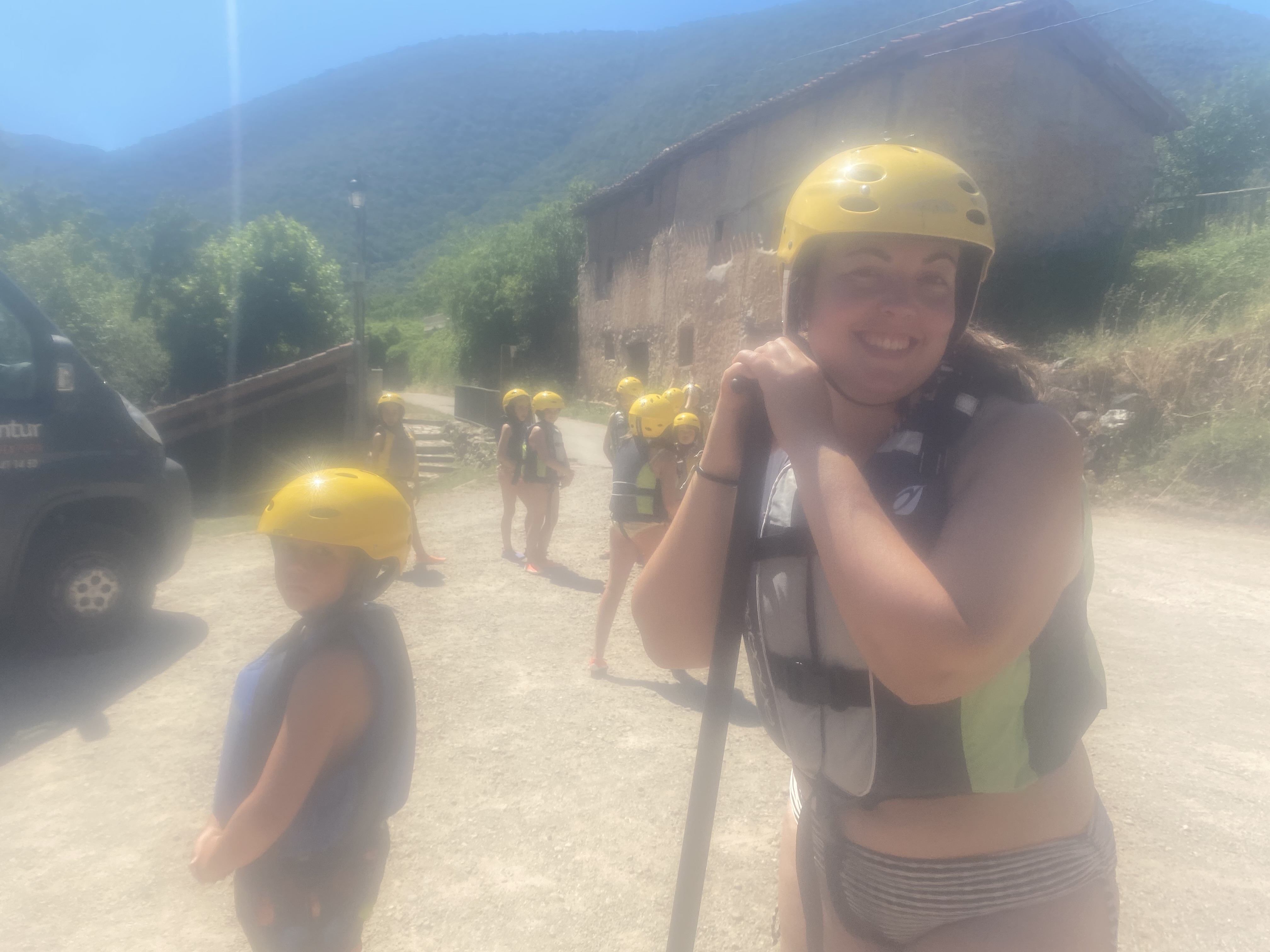 El tercer día tocó cambiar los papeles. Mientras esta vez eran los mayores los que se quedaban en el campamento preparando pociones y tiñendo camisetas, los pequeños salían rumbo a Anguiano. Desde allí, emprendieron el camino que llevaba hasta la cueva de un tal Nuño, que al parecer se había olvidado allí el burro y los caballos. Al volver a Anguiano, se montaron en unos botes para practicar rafting en el río Najerilla. Aprendieron a remar, rescatar a gente del agua e incluso a dejarse llevar por la corriente. Al volver al campa, los mayores contaron que habían estado en la piscina. Ya juntos, por la noche, jugamos a dos juegos míticos y tradicionales del campa: el ogro y el agujero negro.