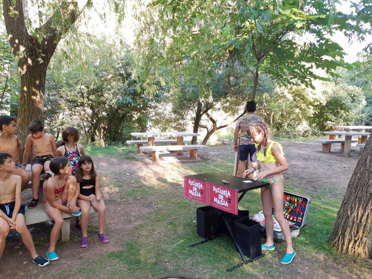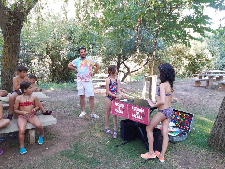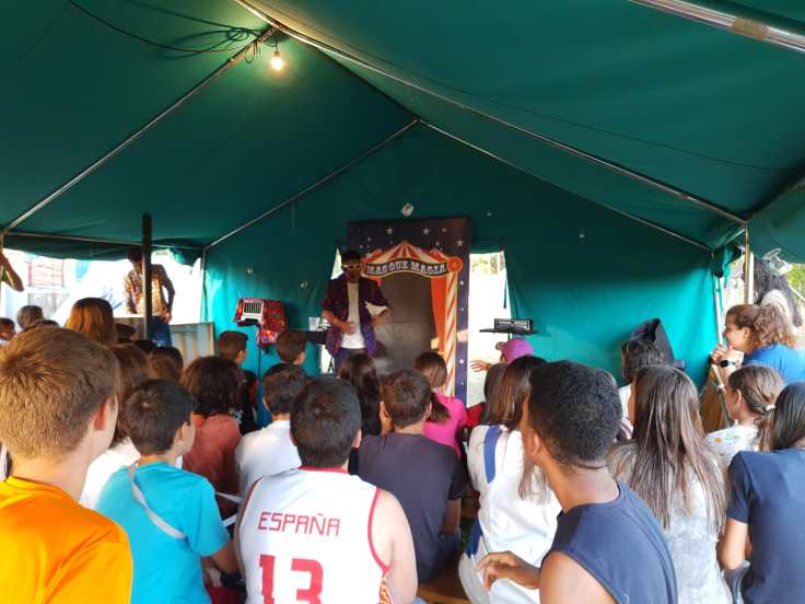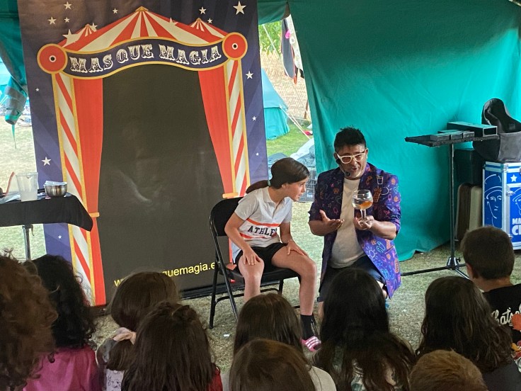 A la tarde, recibimos una visita de lo más inesperada. Dos magos reales, Cid y Alcalá, nos dieron unas clases de magia para luego dejarnos con la boca abierta con su espectáculo de ilusionismo. Aún nos estamos rascando la cabeza por el truco del pez.