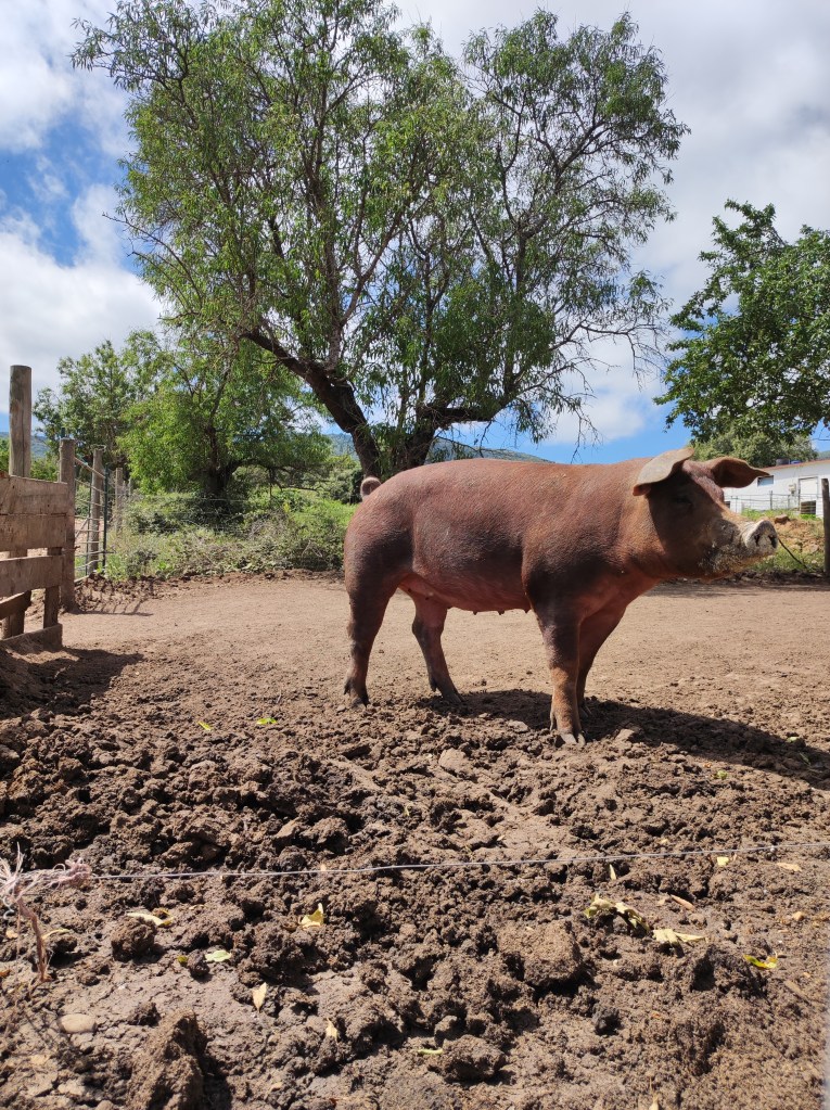 Allí hemos tenido una degustación de sus chorizos y salchichones y… ¡¡¡han sido todo un éxito!!! Tampoco nos hemos ido sin antes conocer a todos y cada uno de sus cerditos y caballos.