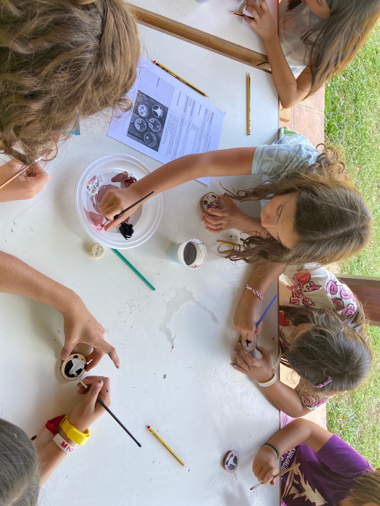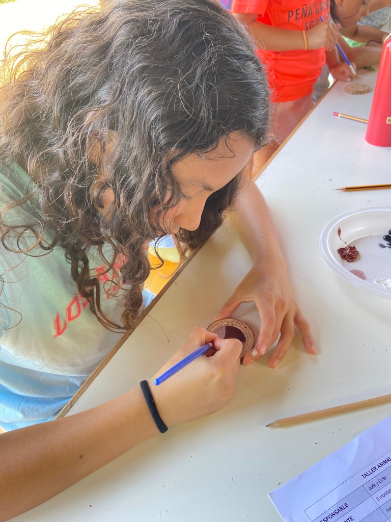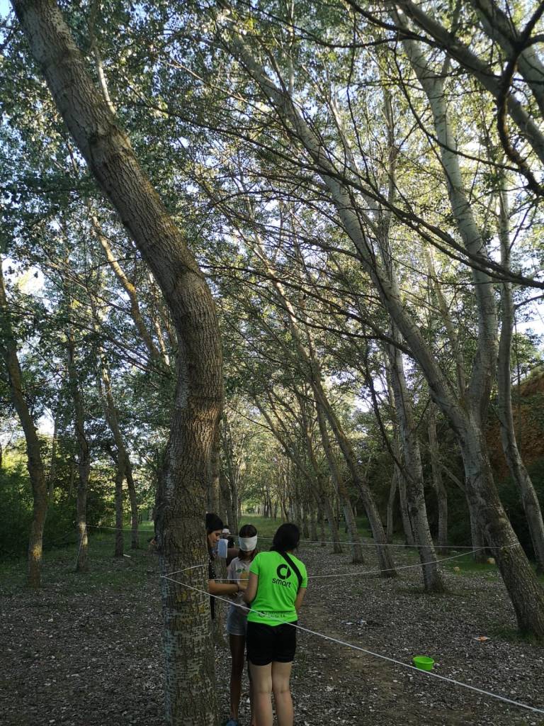 Hoy atravesando el portal hemos llegado al mundo del bosque en el que habitan duendes y hadas. Tras cantar las canciones típicas del campamento y recargar fuerzas con nuestro primer desayuno nos hemos puesto en marcha hacia una granja de cerdos ecológicos.