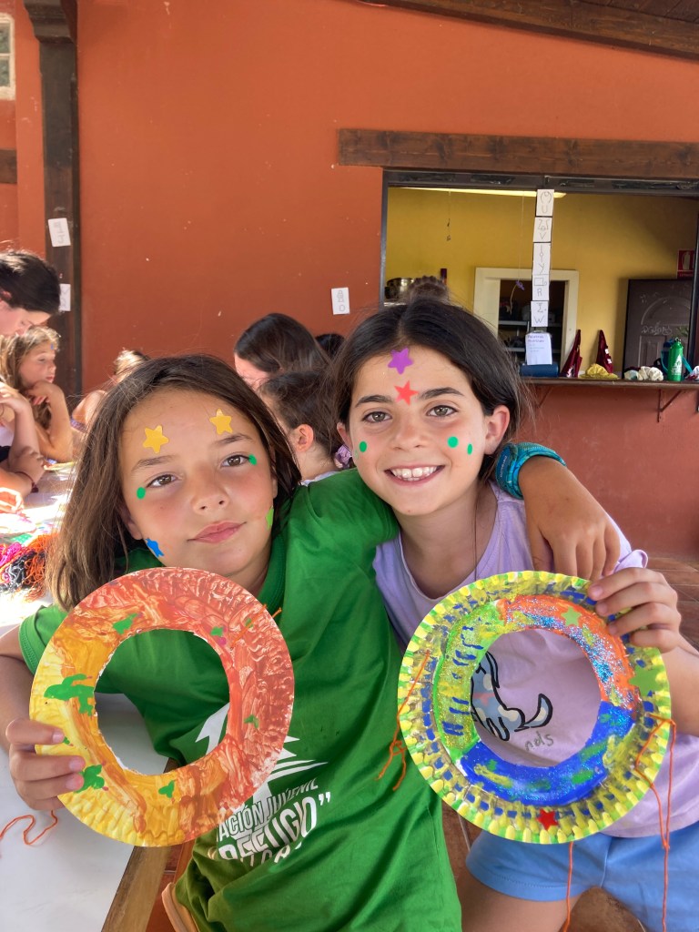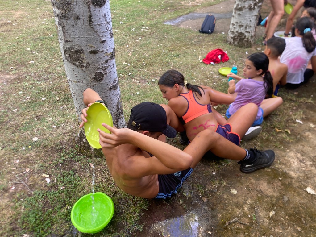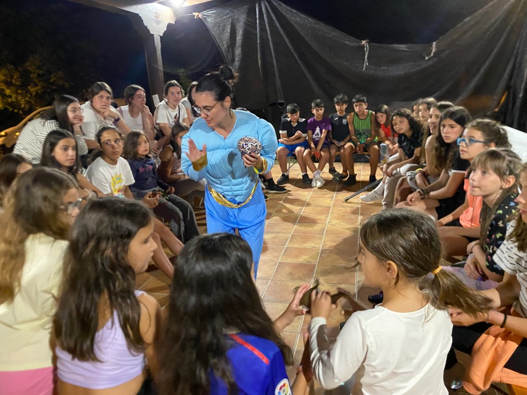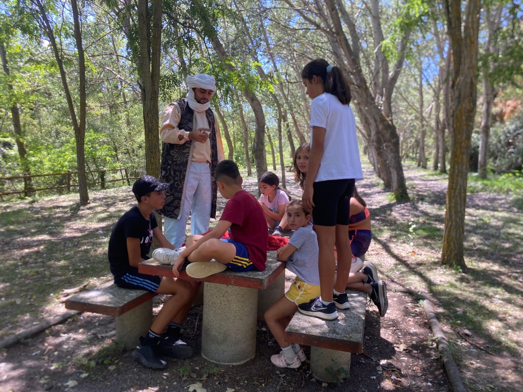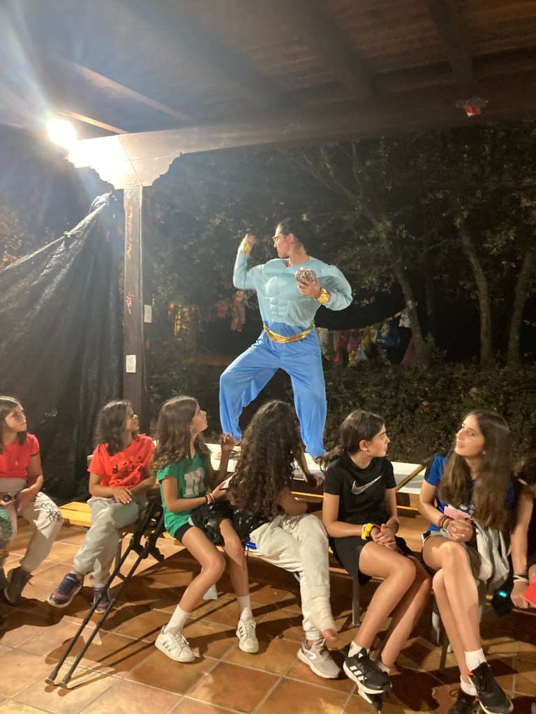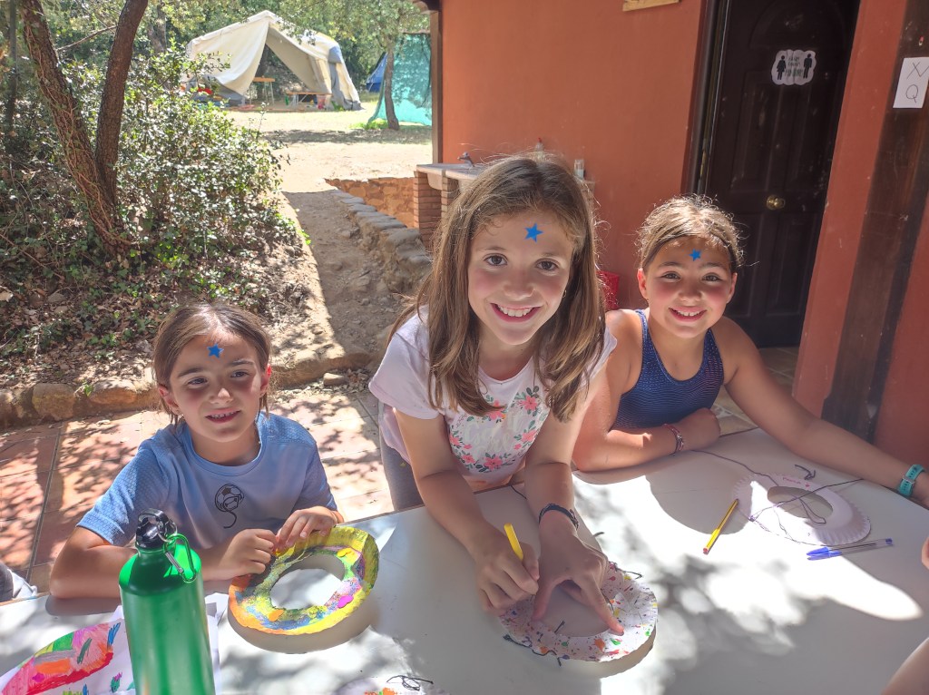 Buenos días familias, hoy hemos cruzado el portal para conocer el mundo de Arabia. Hemos comenzado con una buena clase de yoga para activarnos. Tras el desayuno nos hemos puesto a realizar tareas y ordenar las tiendas para poder comenzar los talleres. Cada acampado pudo hacer volar su imaginación para realizar un atrapasueños y un llavero de la mano de Fátima. Como hacía mucho calor almorzamos melón y sandía para refrescarnos y a continuación realizamos una pequeña gymkana de las mil y una noches.