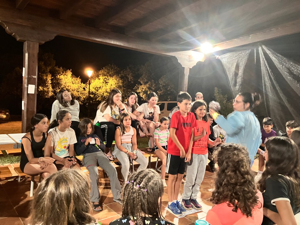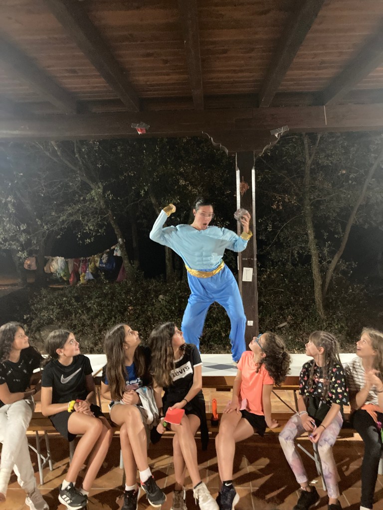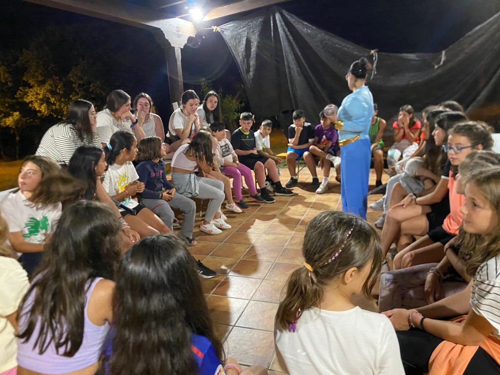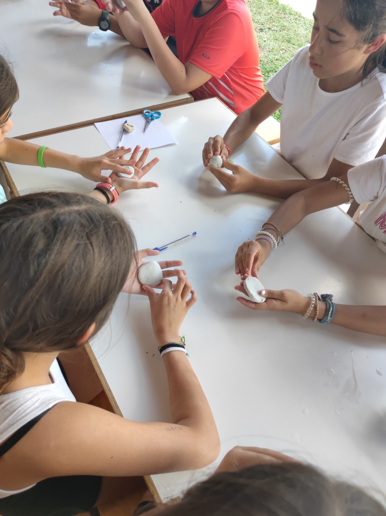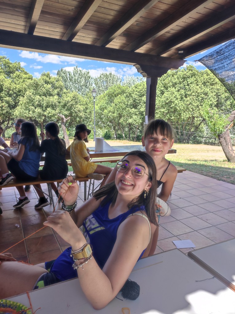 Buenos días familias, hoy hemos cruzado el portal para conocer el mundo de Arabia. Hemos comenzado con una buena clase de yoga para activarnos. Tras el desayuno nos hemos puesto a realizar tareas y ordenar las tiendas para poder comenzar los talleres. Cada acampado pudo hacer volar su imaginación para realizar un atrapasueños y un llavero de la mano de Fátima. Como hacía mucho calor almorzamos melón y sandía para refrescarnos y a continuación realizamos una pequeña gymkana de las mil y una noches.