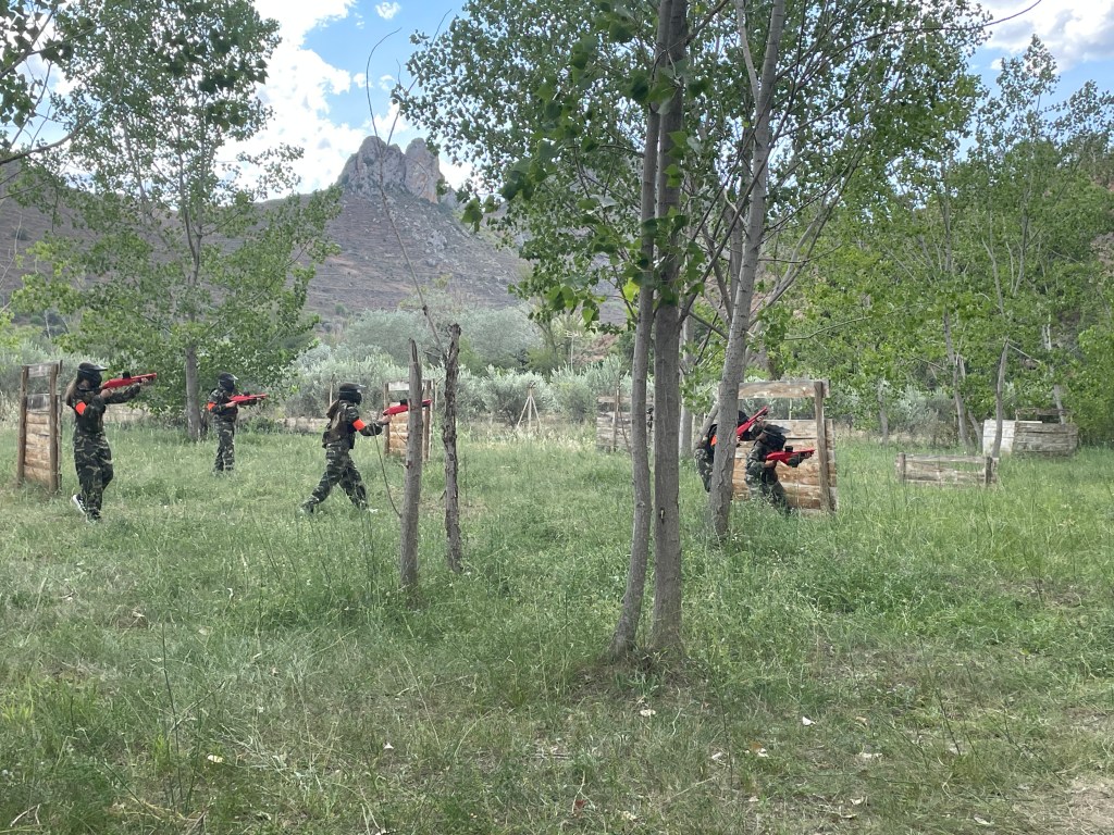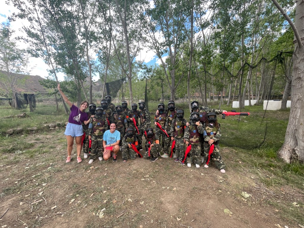 Pero poco duró el descanso, porque el autobús nos estaba esperando para acercarnos al segundo destino: el campo de Paintball y tiro con arco. ¡Fue todo un éxito! Nuestros acampados se pasaron toda la tarde jugando. Disfrutaron tanto… ¡que se les olvidó hasta la merienda! ¡Y eso que era bocadillo de chocolate!
