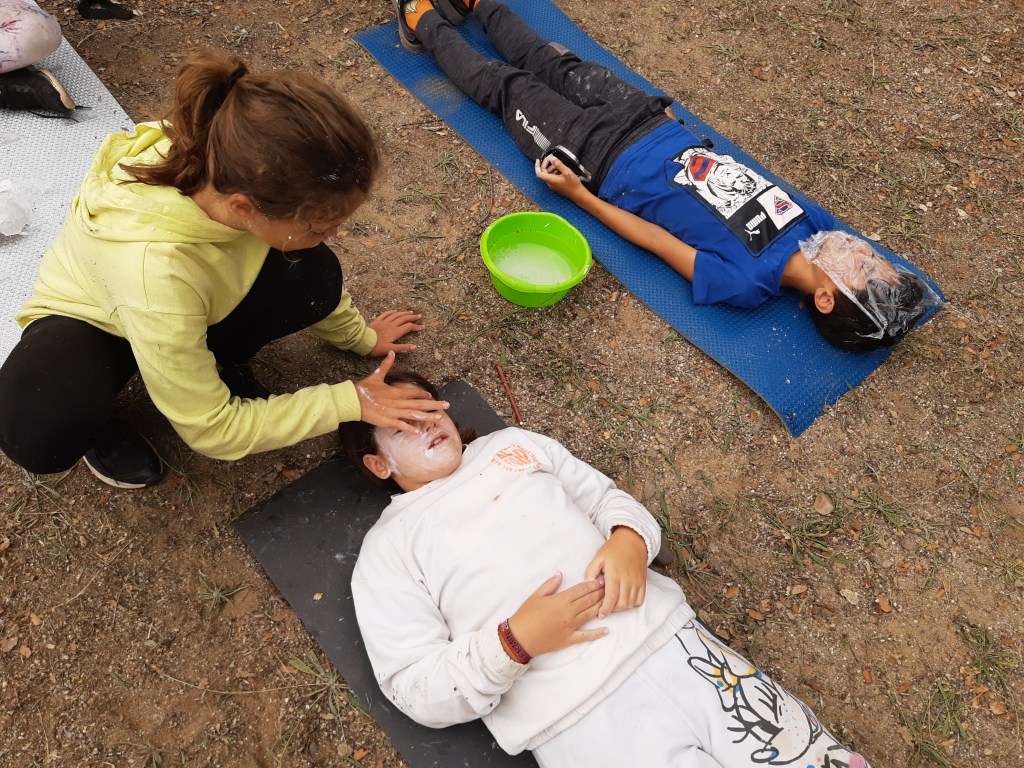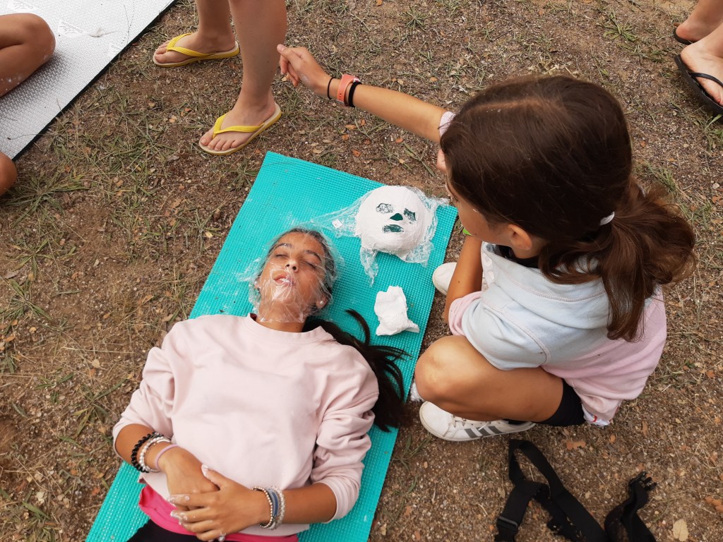Nuestros niños se pusieron en parejas y los unos a los otros se hicieron un tratamiento facial que a la vez sirvió de taller: unas máscaras egipcias.
