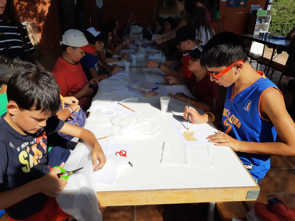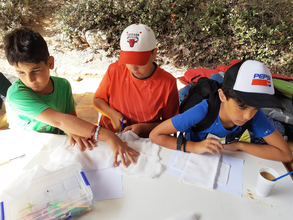 Pero poco duró la relajación ya que… El desayuno les esperaba en las mesas. Rápido devoraron también esta primera comida egipcia pues les esperaba otro taller que no podía faltar en nuestro día…¡¡Aprendieron a hacer auténticos papiros egipcios!!