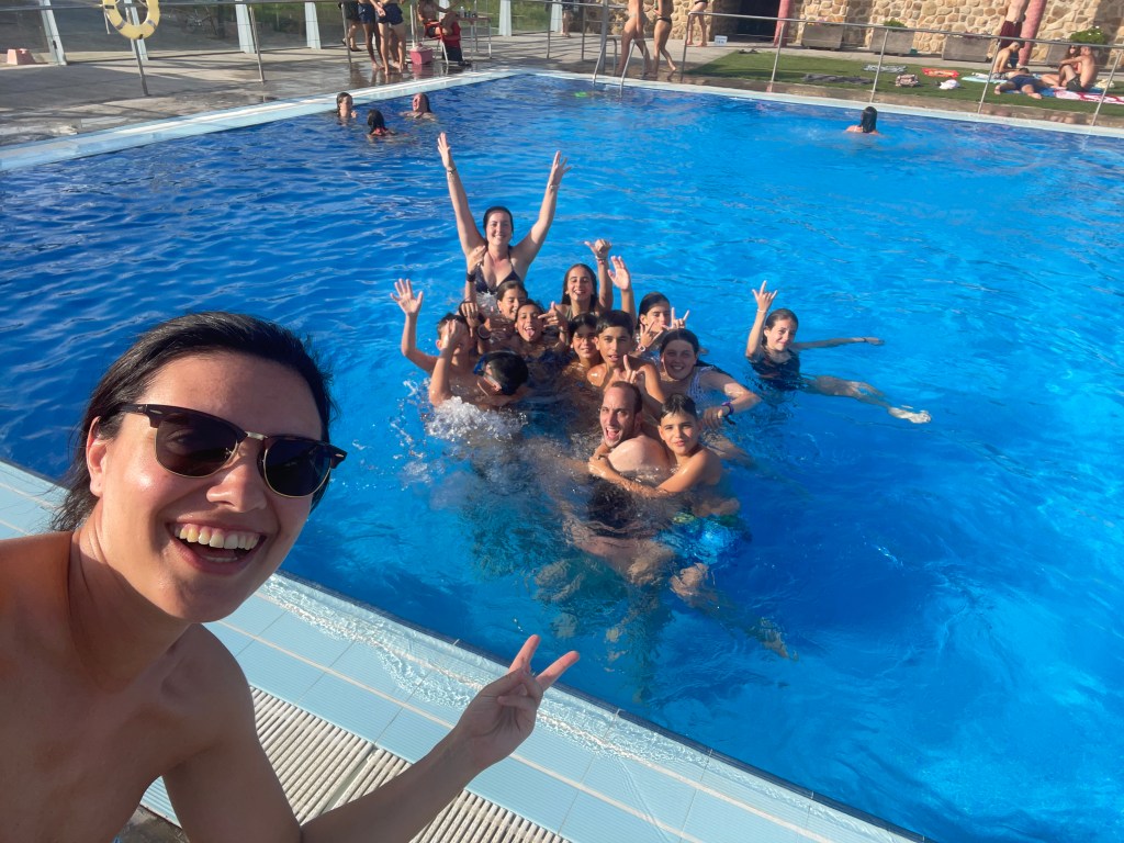 Pasamos toda la tarde en la piscina de Galilea, disfrutando de esta y del tiempo libre, pudiendo jugar a distintos juegos entre los que fue muy popular el de las familias.