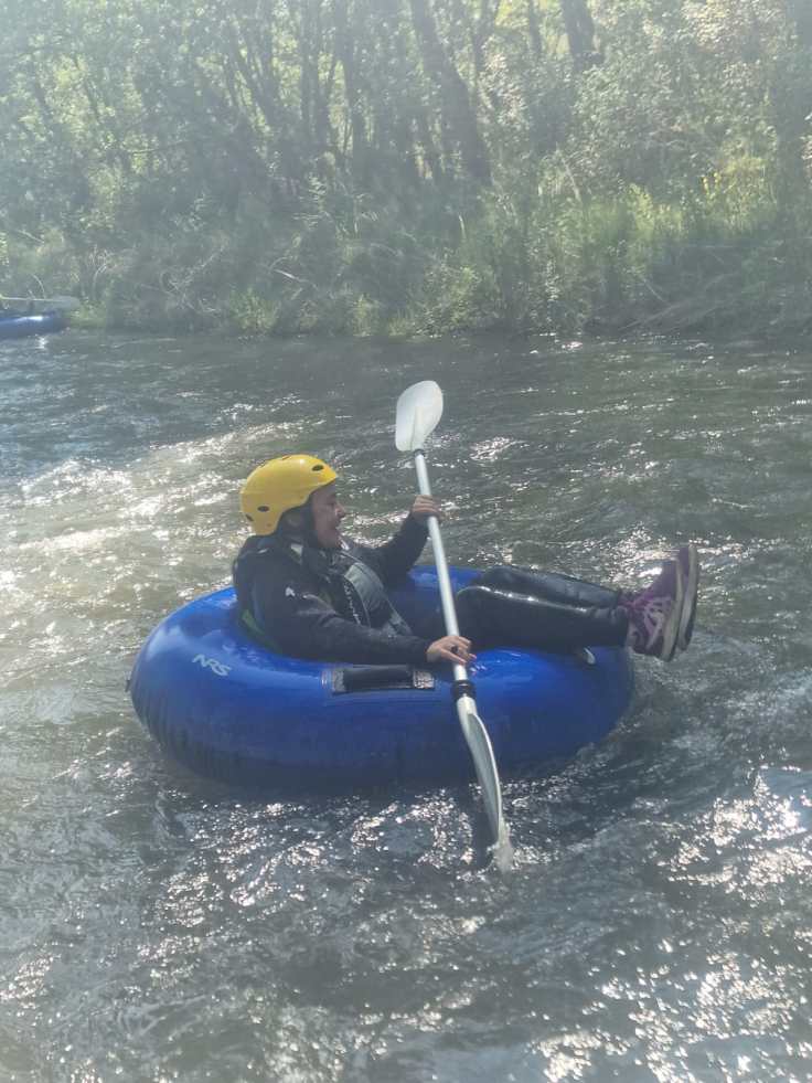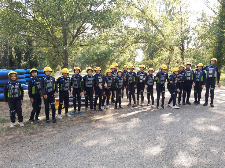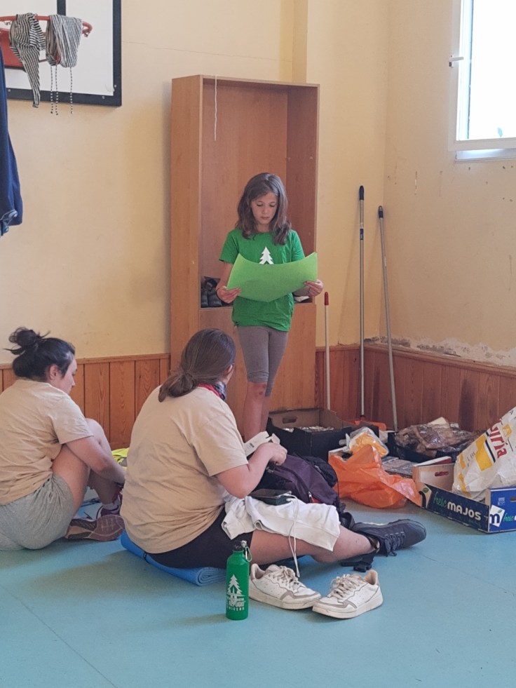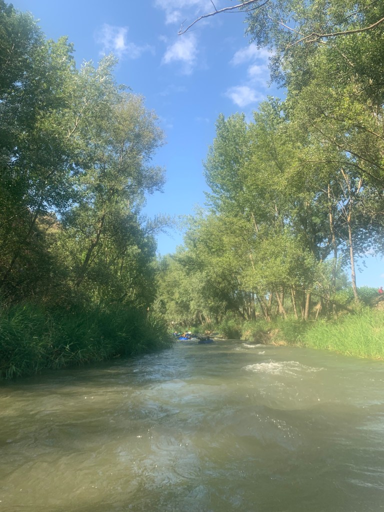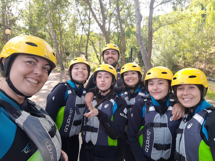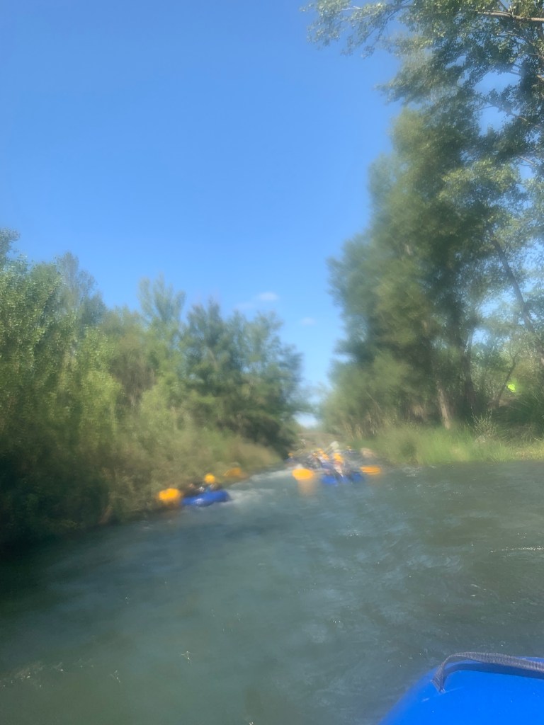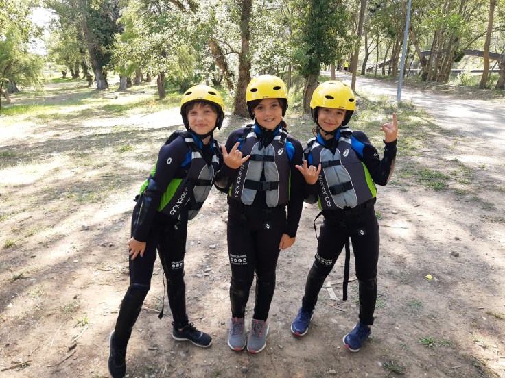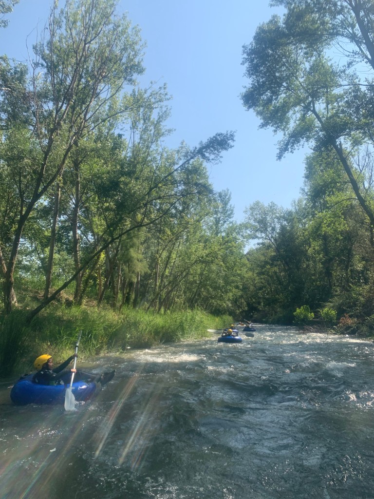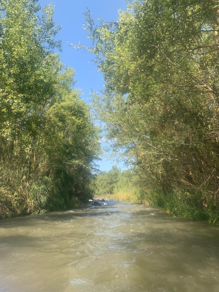 Hemos desayunado un batido de chocolate, un croissant y un trozo de bizcocho casero que nos han preparado los cocineros Marta y Raúl. ¡Estaba riquísimo! Tras el desayuno, hemos recogido las esterillas y sacos y, han preparado sus mochilas, se han puesto el bañador y las deportivas para realizar la novedosa actividad de Moscaventur: Rivertubbing. En esta actividad cada acampado y monitor se han apropiado, de forma individual, de una barca-canoa hinchable y han ido flotando y remando río abajo. ¡Nos ha encantado! Volvimos a las piscinas de Arnedillo y en la hora de comer nos han traído nuestros cocineros Marta y Raúl, unos ricos macarrones con tomate y trozos de seres malignos. ¡Qué ricos estaban!