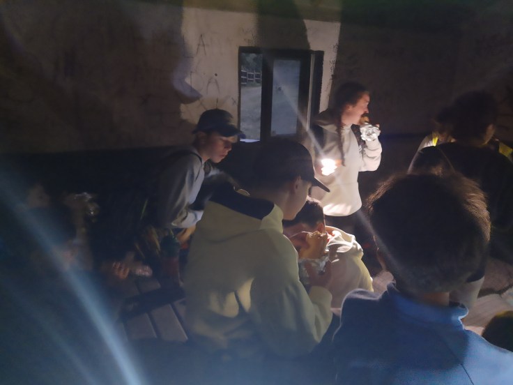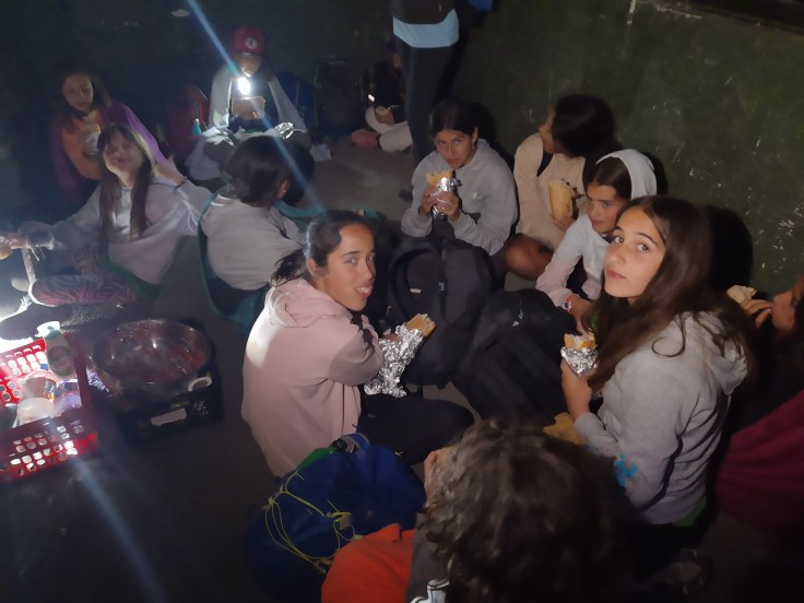 Después de comer, permanecimos unas horas más en las piscinas y, cuando llegó la hora de irnos, nos preparamos, nos pusimos las botas de monte y directos para la próxima parada: El refugio. Aquí cenamos unos ricos bocadillos que nos hicieron los cocineros Tamara y Jesús Mari. Posteriormente, nos bajaron por grupos en la furgoneta y, ¿a que no sabéis qué? Hicimos la terrorífica noche del terror, en la cual los acampados por grupos tenían que buscar un órgano de animal. Una vez que todos los grupos los encontraron nos fuimos a la cama tras un largo día de marcha.