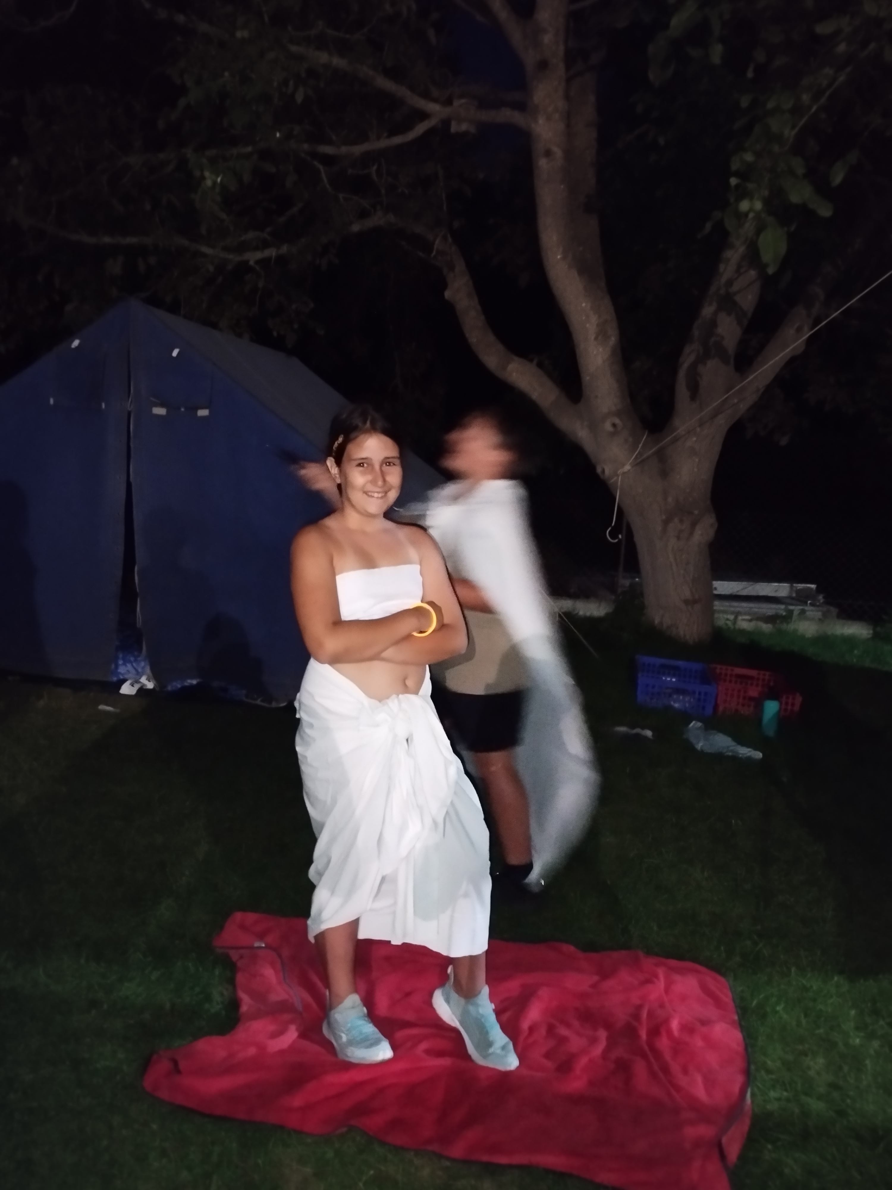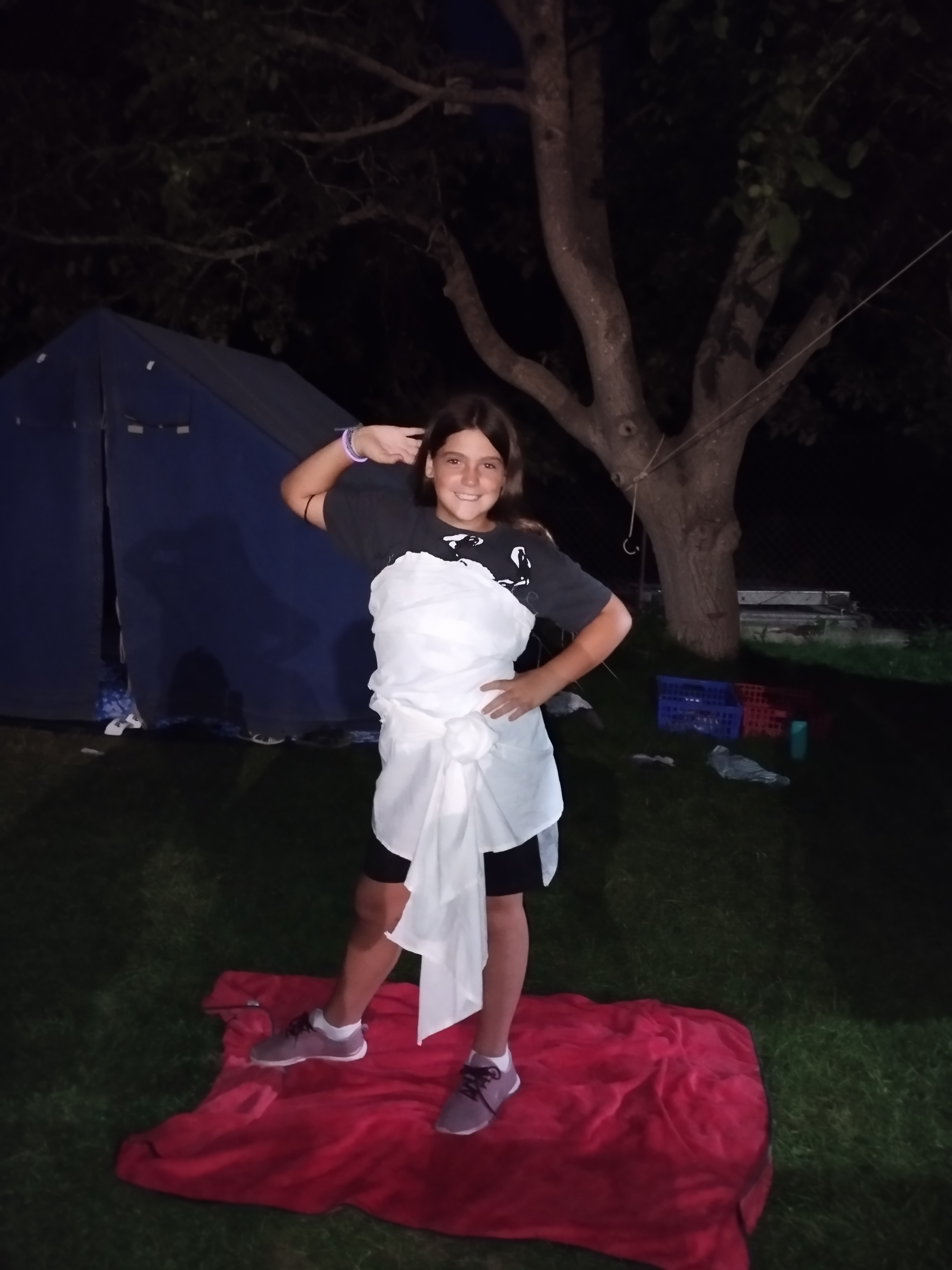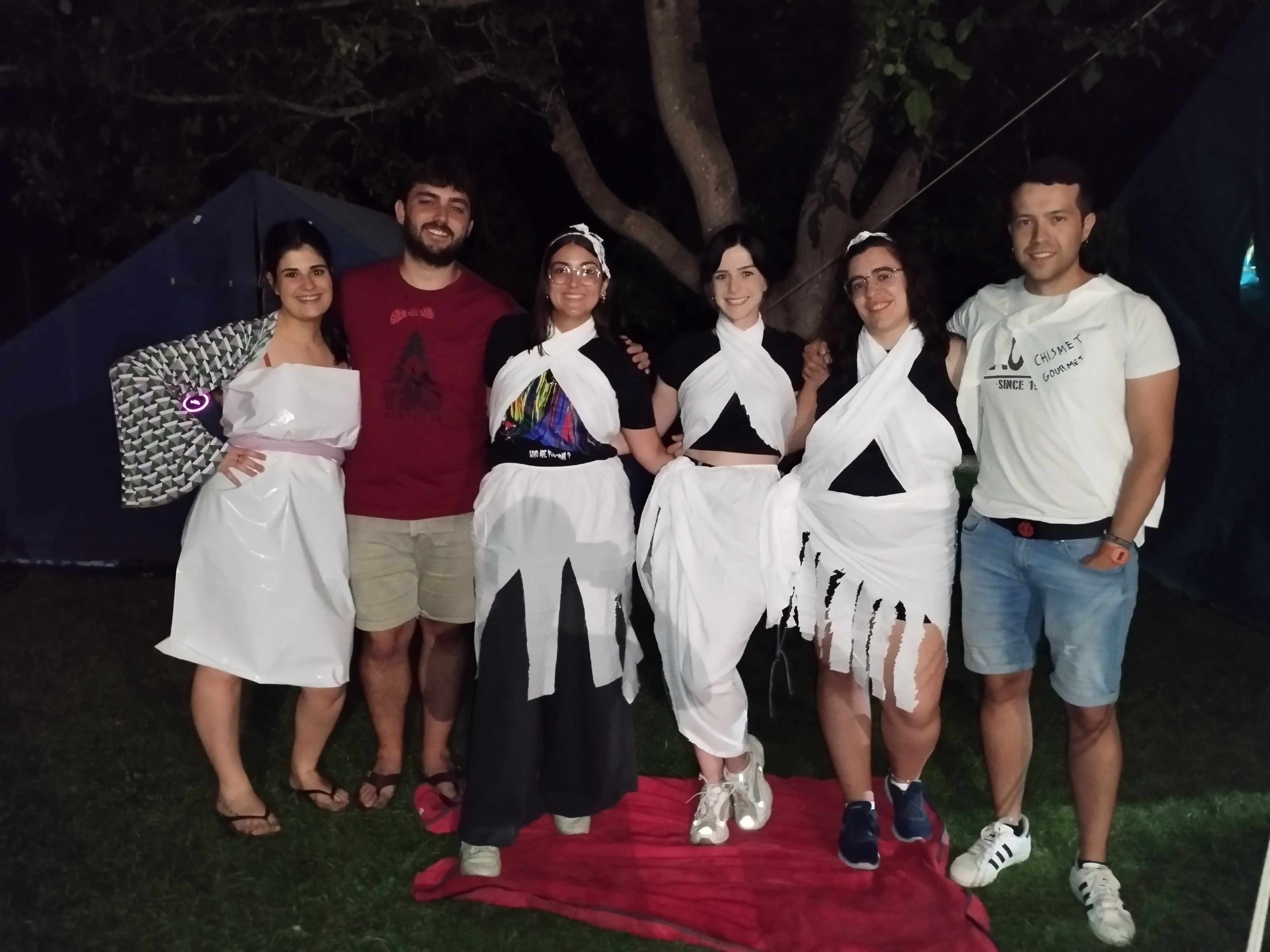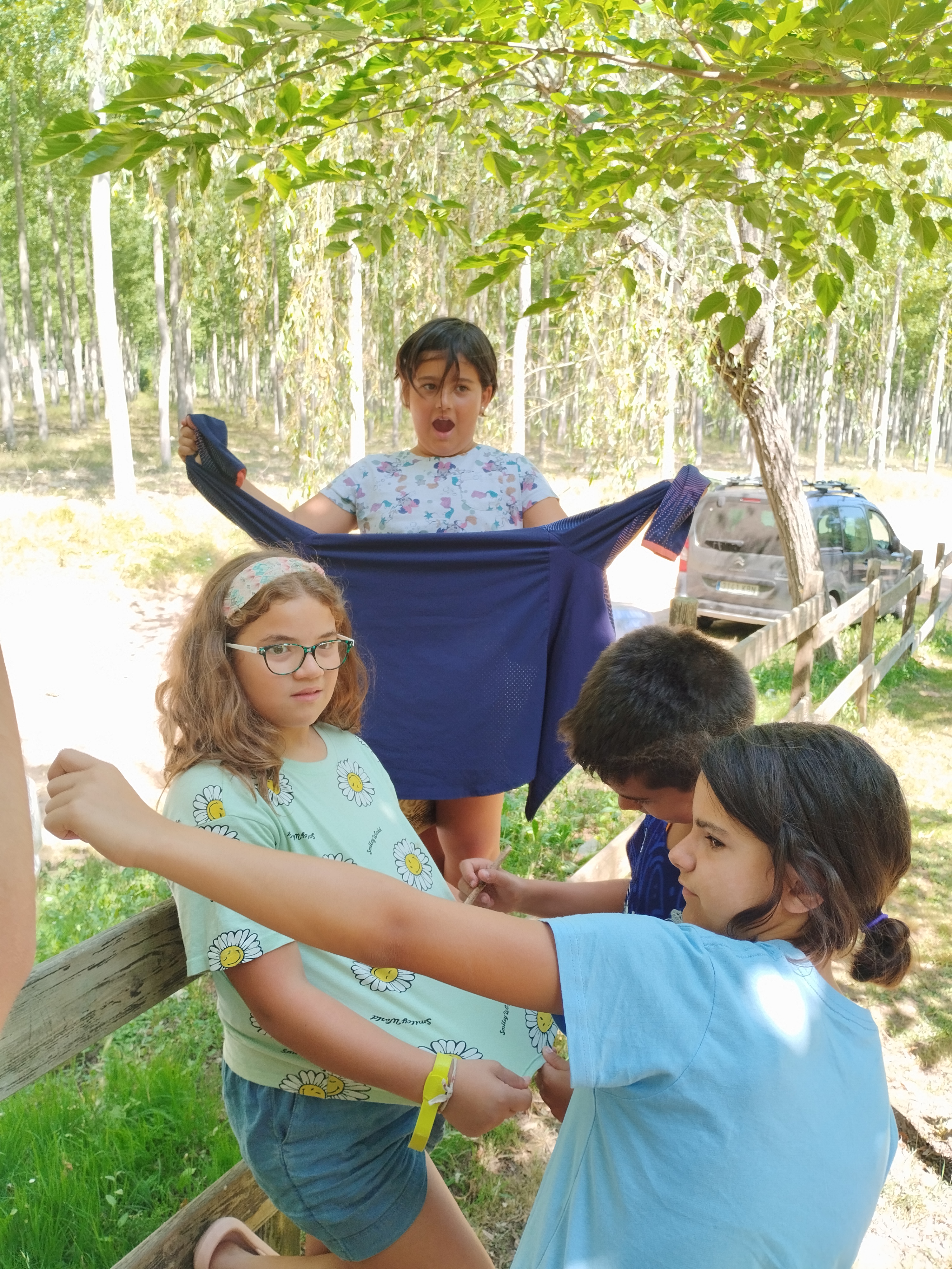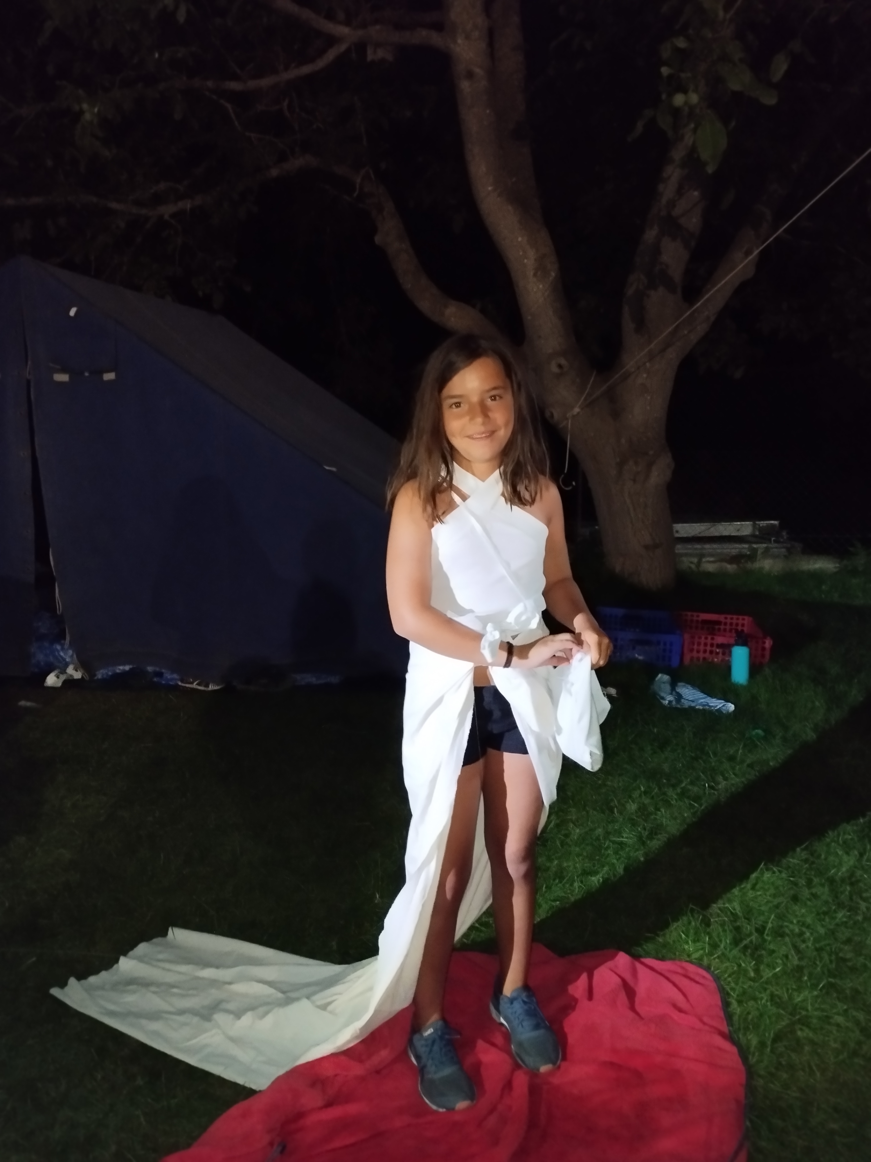 Por la tarde fue el turno de recuperar una tradición perdida. Hace unos años se solía hacer el «día del revés» en el que se le daba la vuelta como un calcetín a todo el campamento: se desayunaba la cena y se merendaba la comida (y viceversa), la ropa interior se ponía por fuera y los acampados más mayores pasaban a ser monitores. Este año fueron las mayores las que tuvieron la iniciativa de proponer esto último y prepararon su propia gymkhana, en la que pusieron a prueba nuestros conocimientos artísticos.