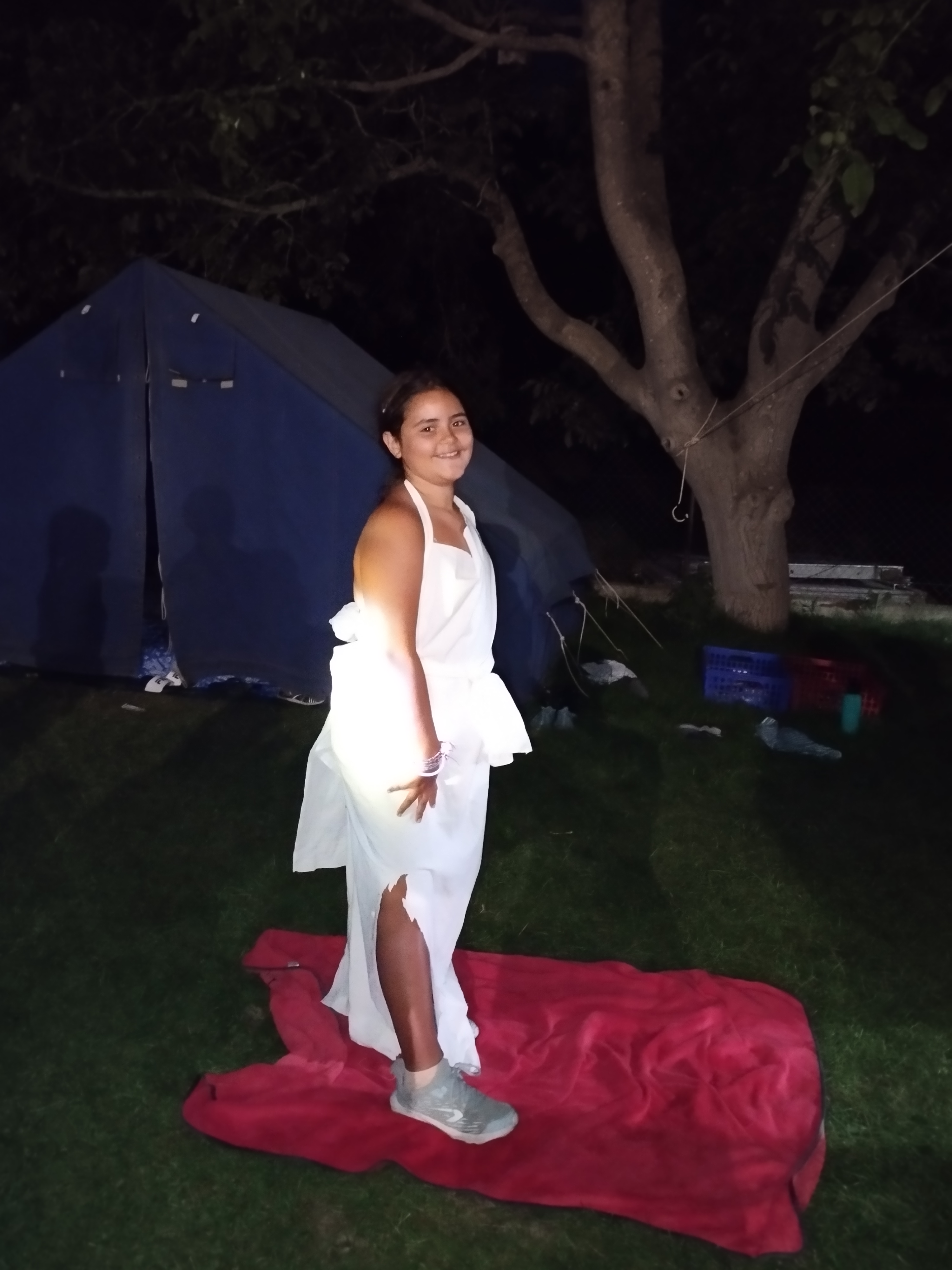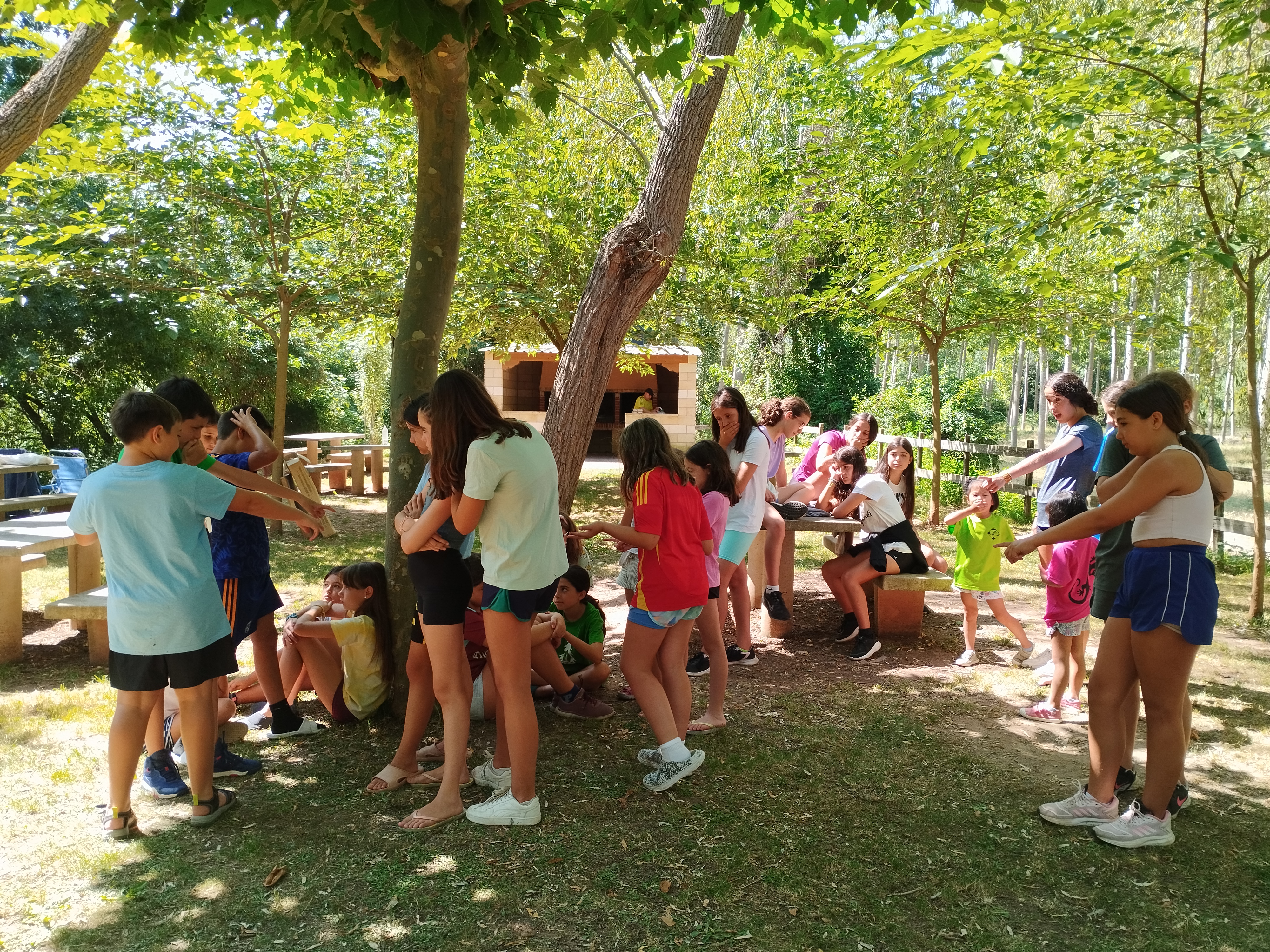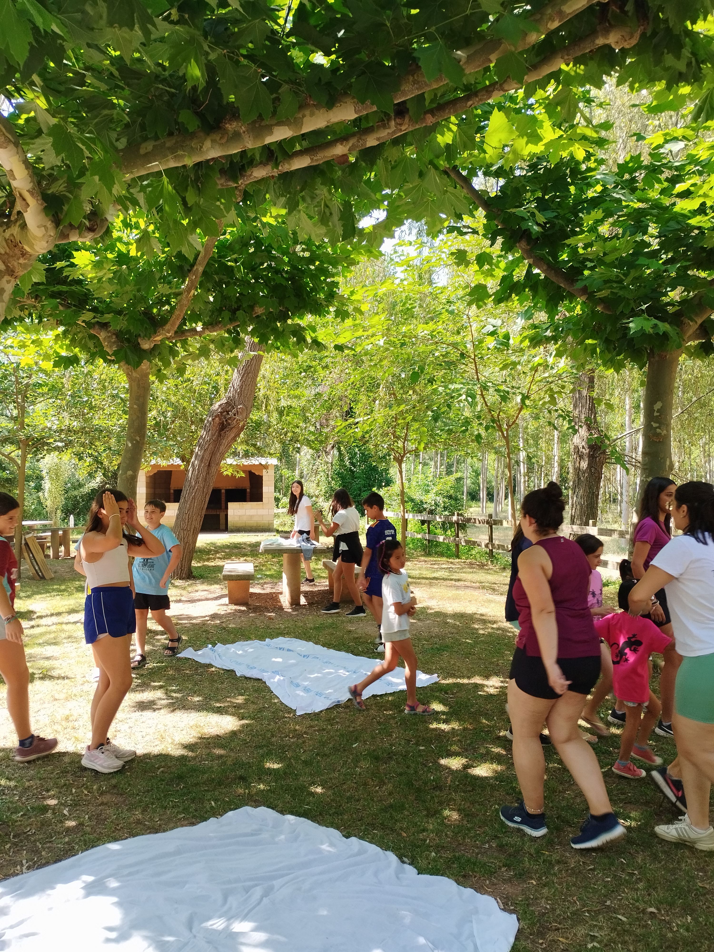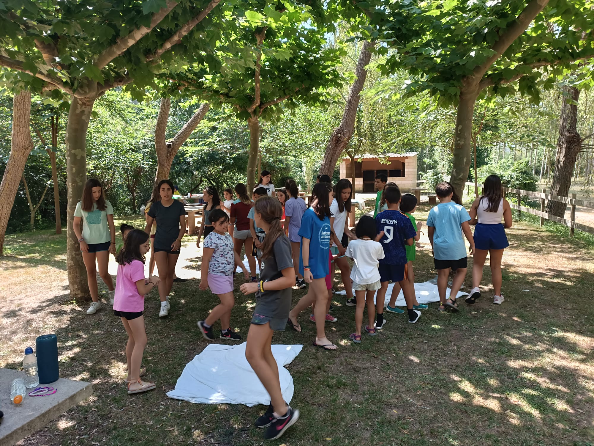 Por la tarde fue el turno de recuperar una tradición perdida. Hace unos años se solía hacer el «día del revés» en el que se le daba la vuelta como un calcetín a todo el campamento: se desayunaba la cena y se merendaba la comida (y viceversa), la ropa interior se ponía por fuera y los acampados más mayores pasaban a ser monitores. Este año fueron las mayores las que tuvieron la iniciativa de proponer esto último y prepararon su propia gymkhana, en la que pusieron a prueba nuestros conocimientos artísticos.