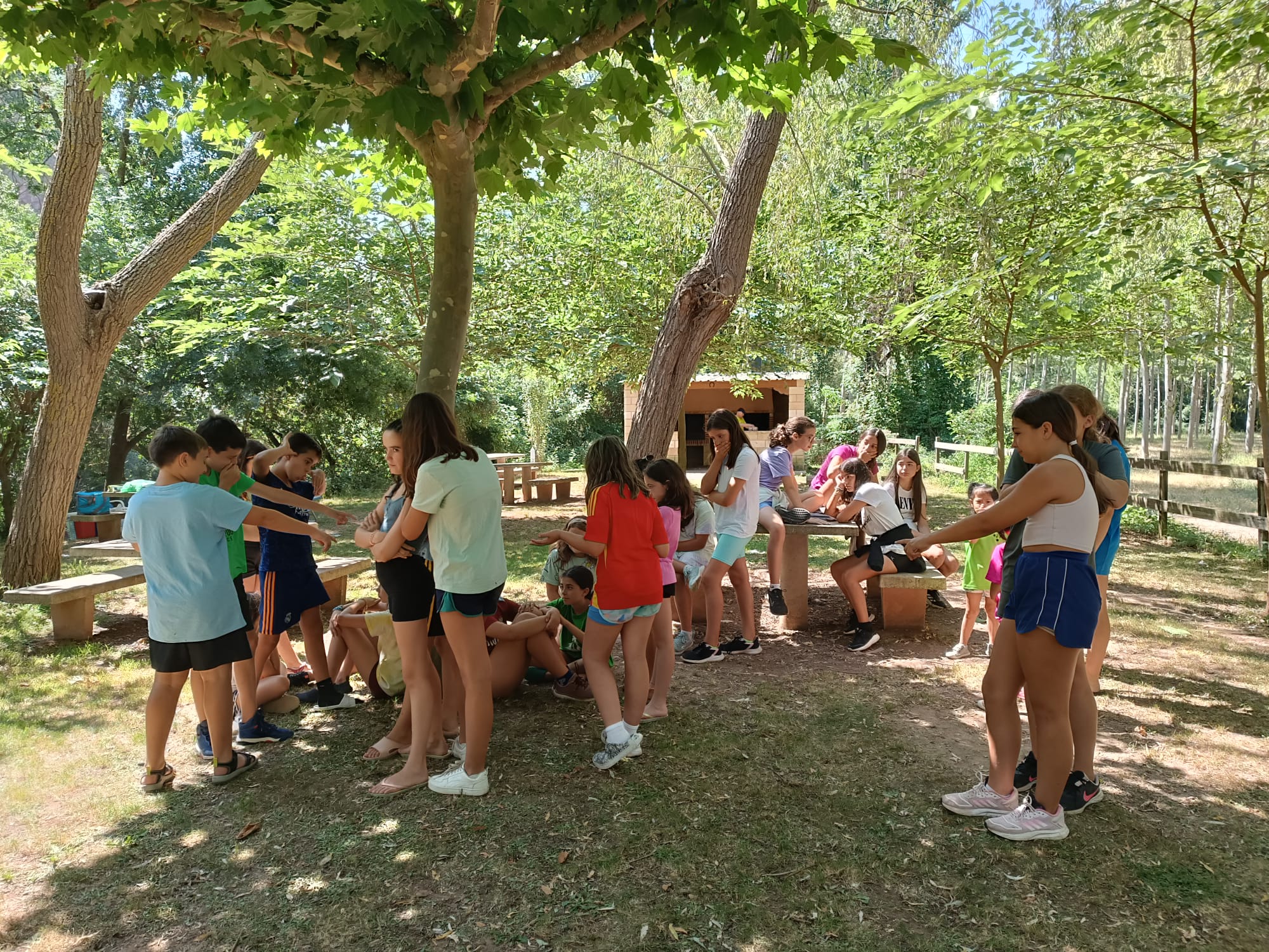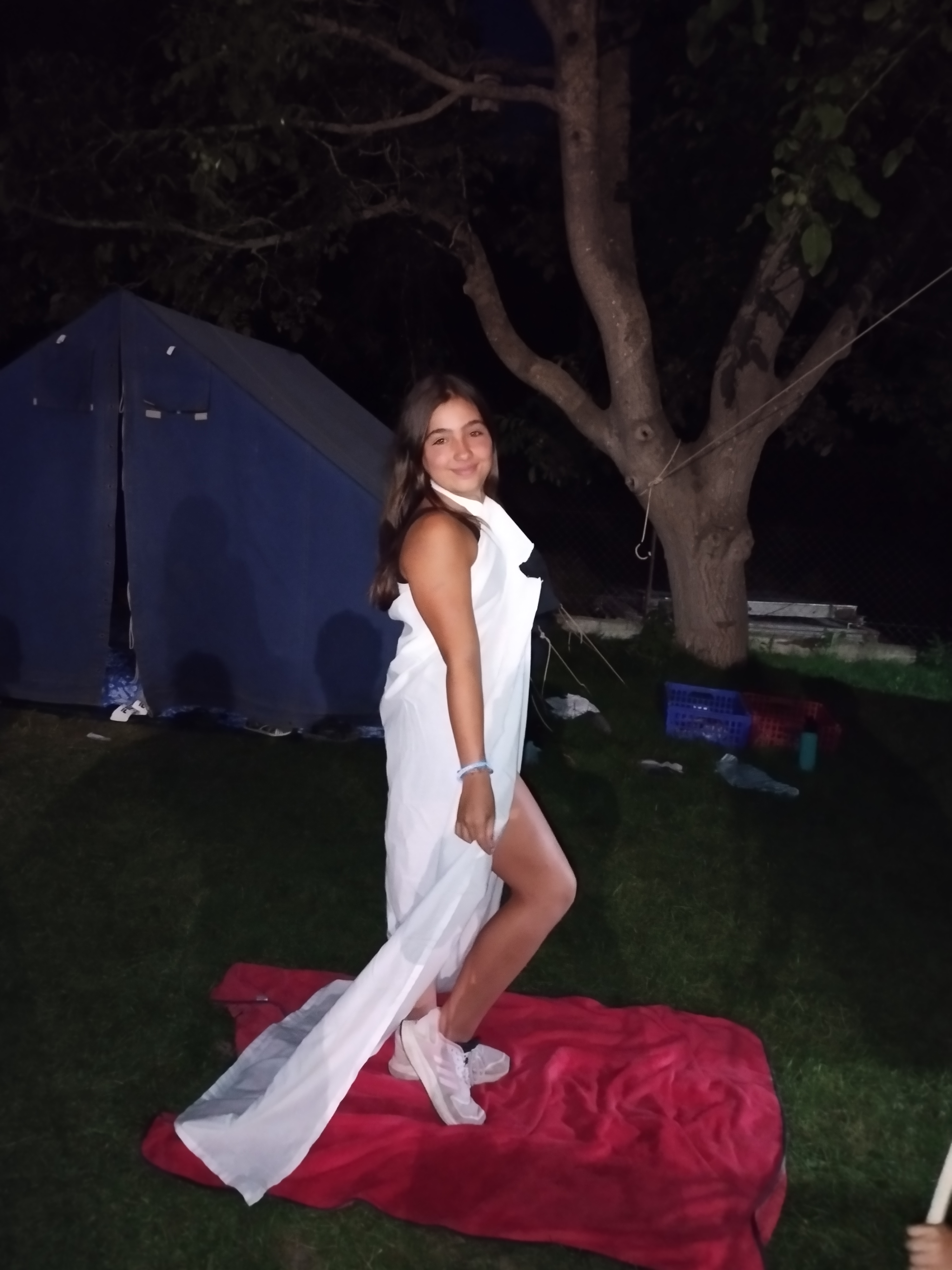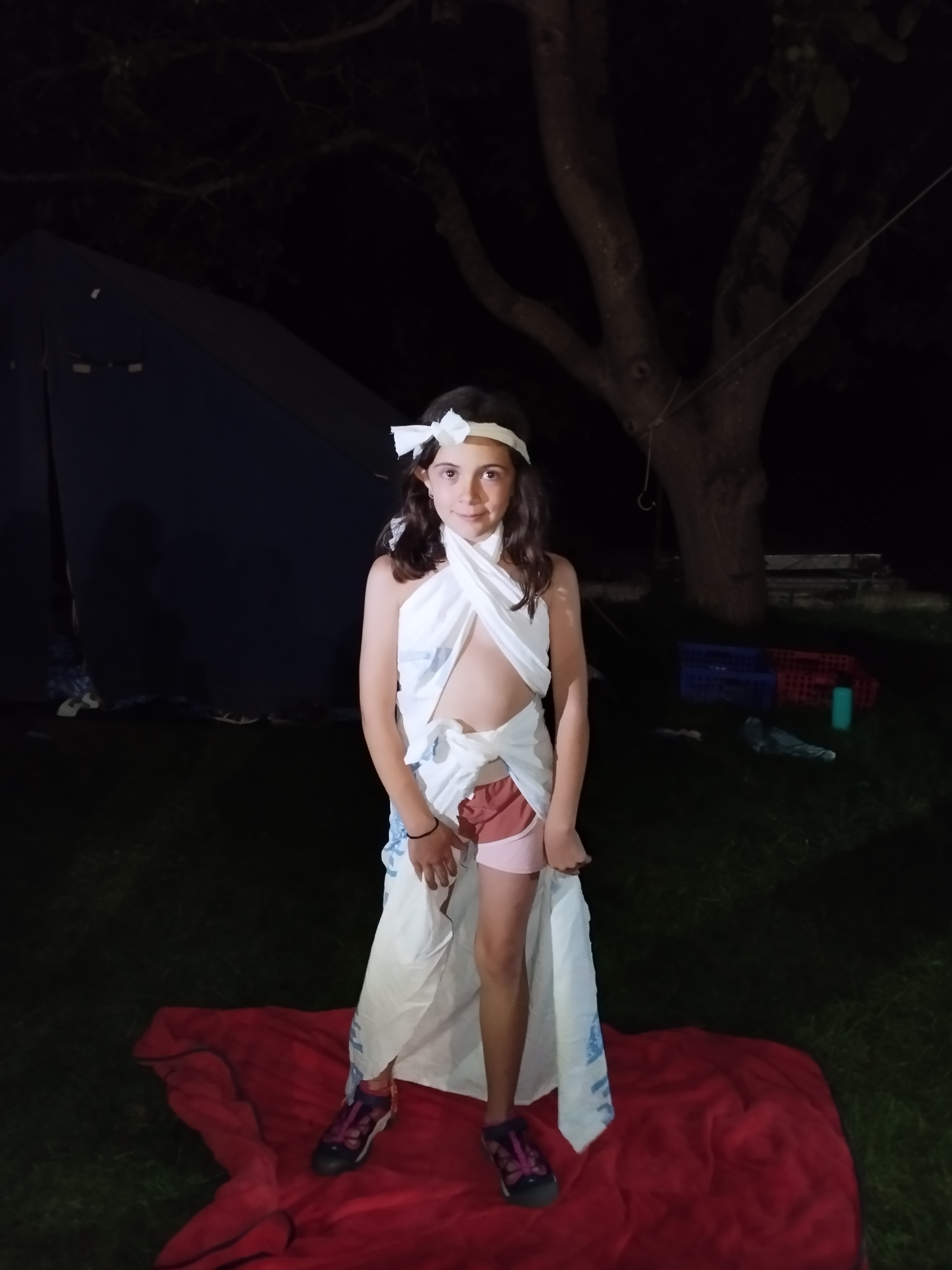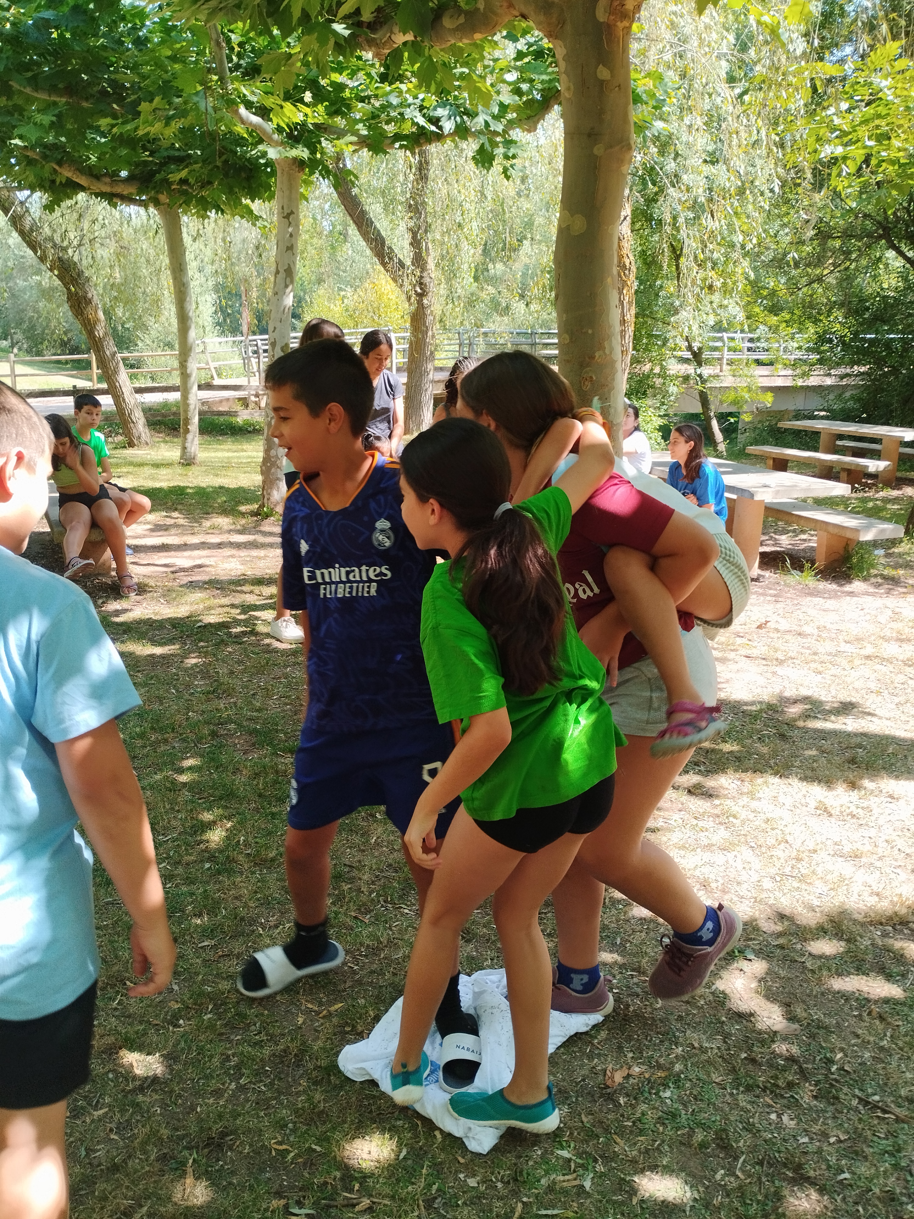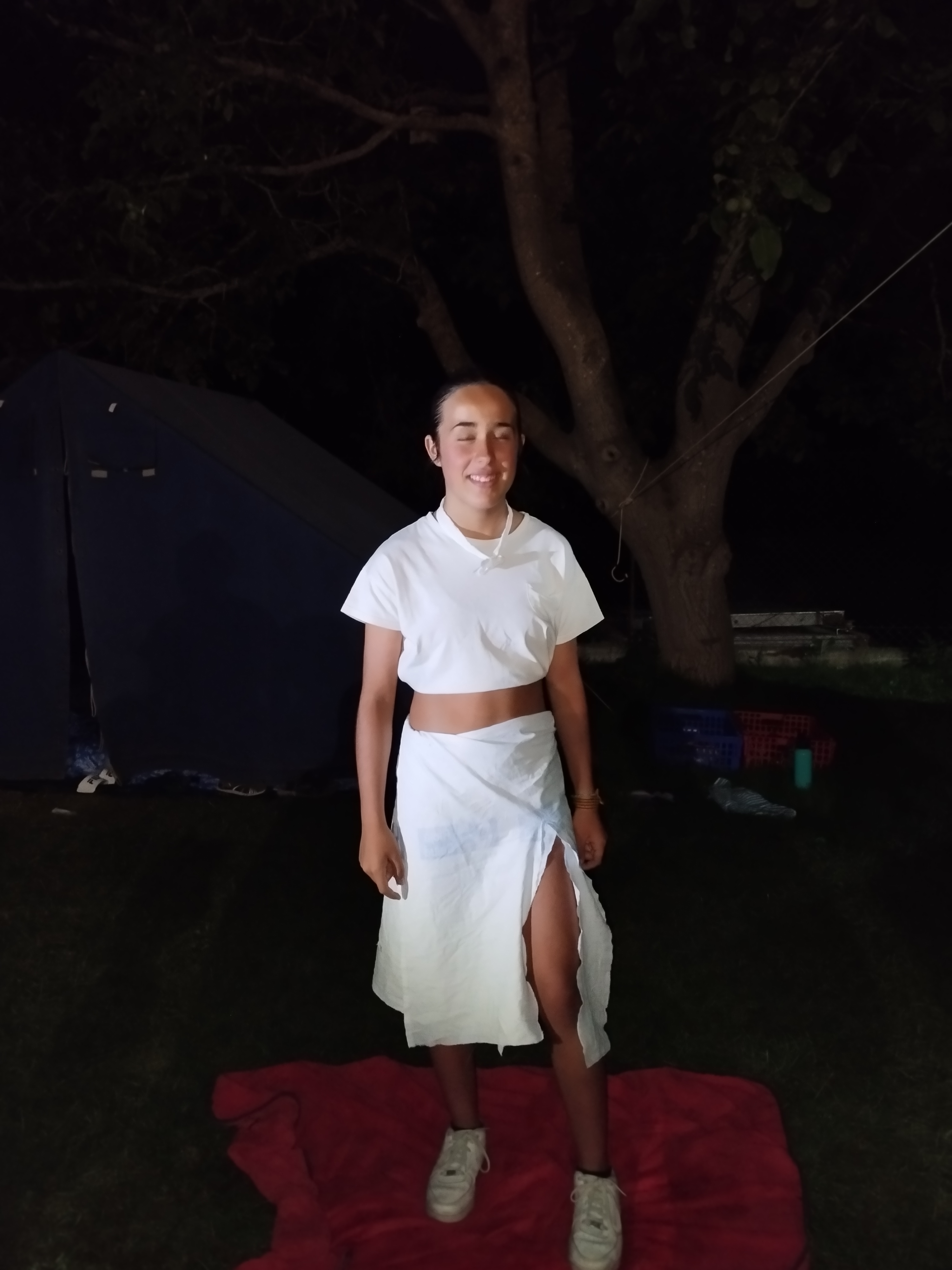 Por la tarde fue el turno de recuperar una tradición perdida. Hace unos años se solía hacer el «día del revés» en el que se le daba la vuelta como un calcetín a todo el campamento: se desayunaba la cena y se merendaba la comida (y viceversa), la ropa interior se ponía por fuera y los acampados más mayores pasaban a ser monitores. Este año fueron las mayores las que tuvieron la iniciativa de proponer esto último y prepararon su propia gymkhana, en la que pusieron a prueba nuestros conocimientos artísticos.