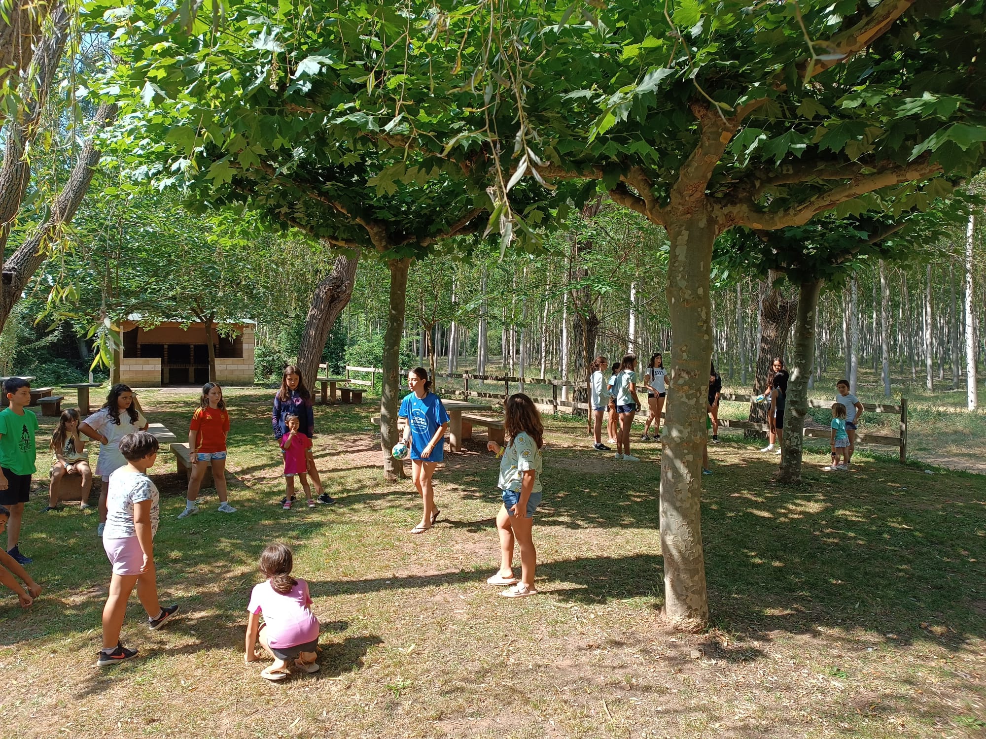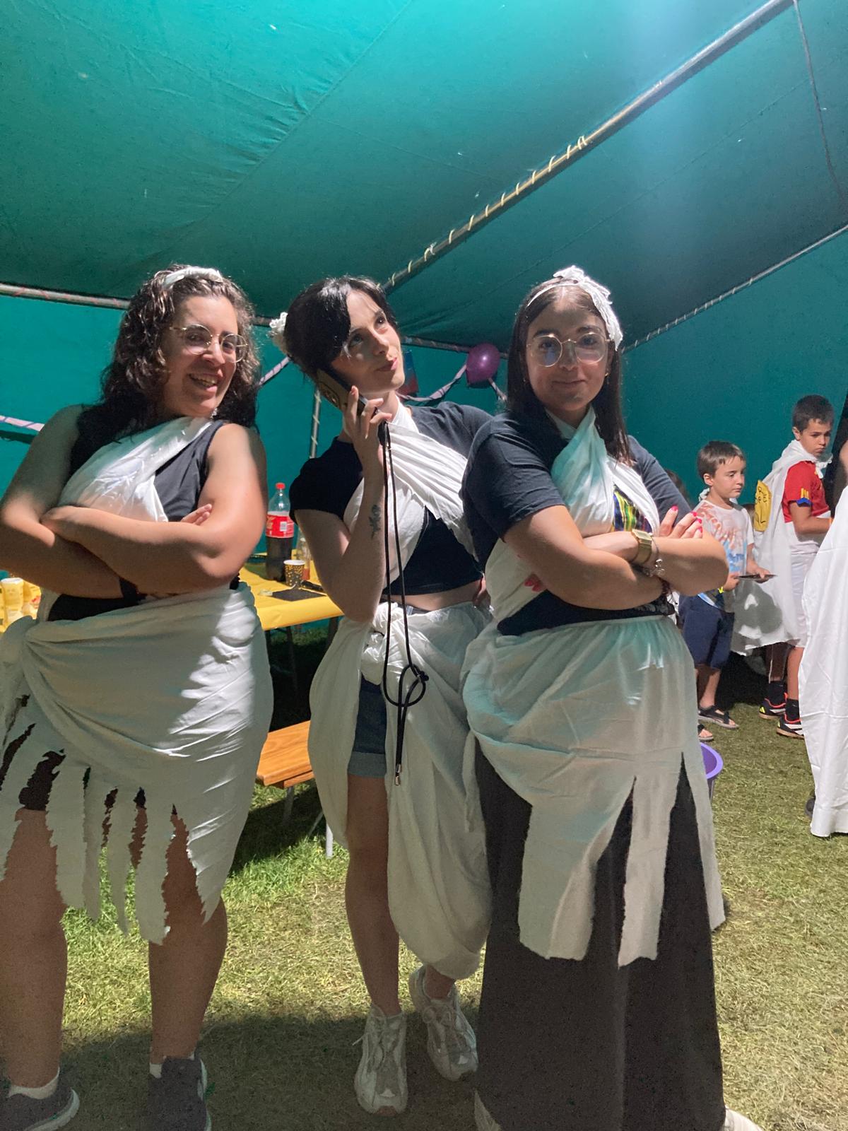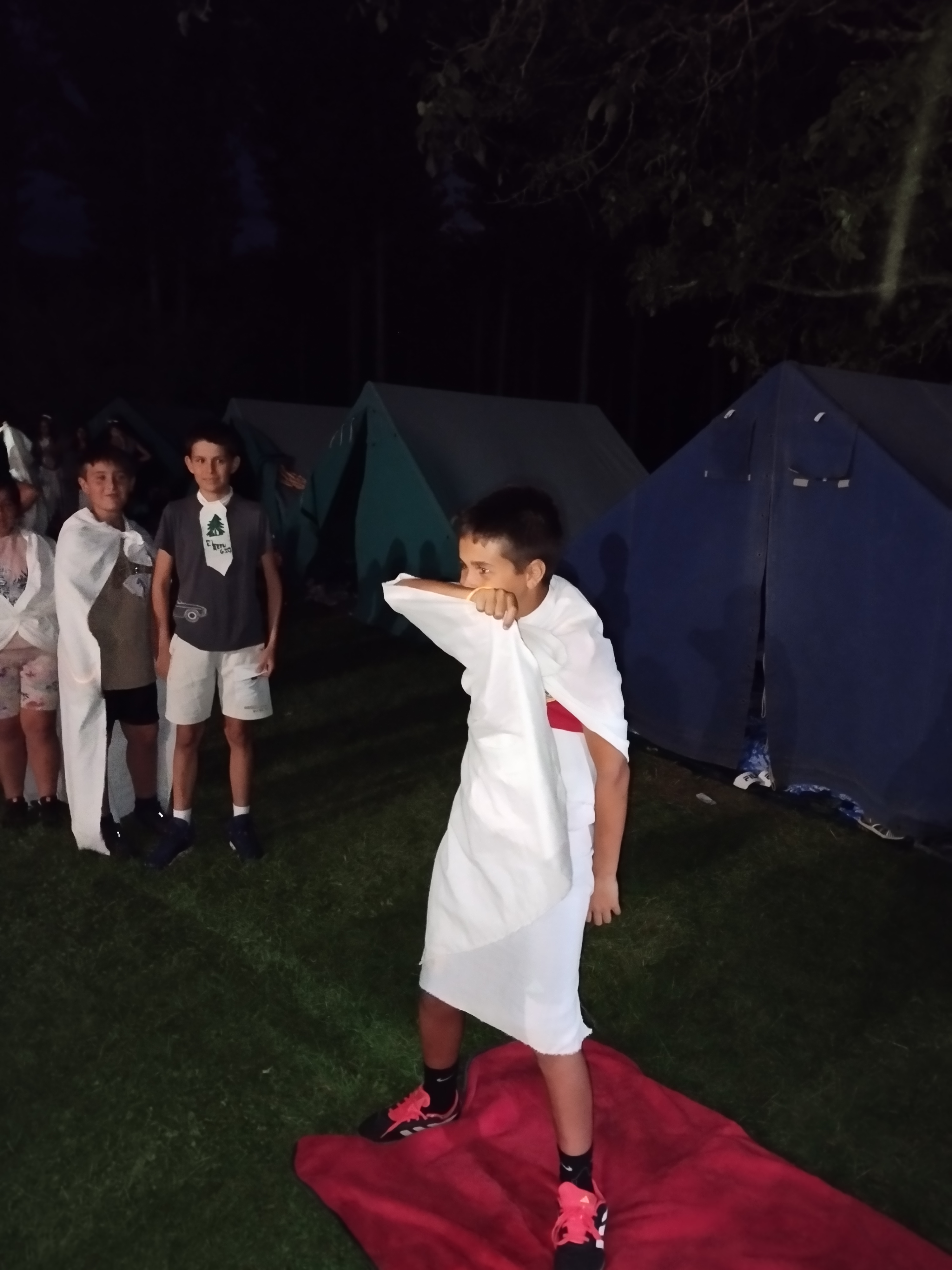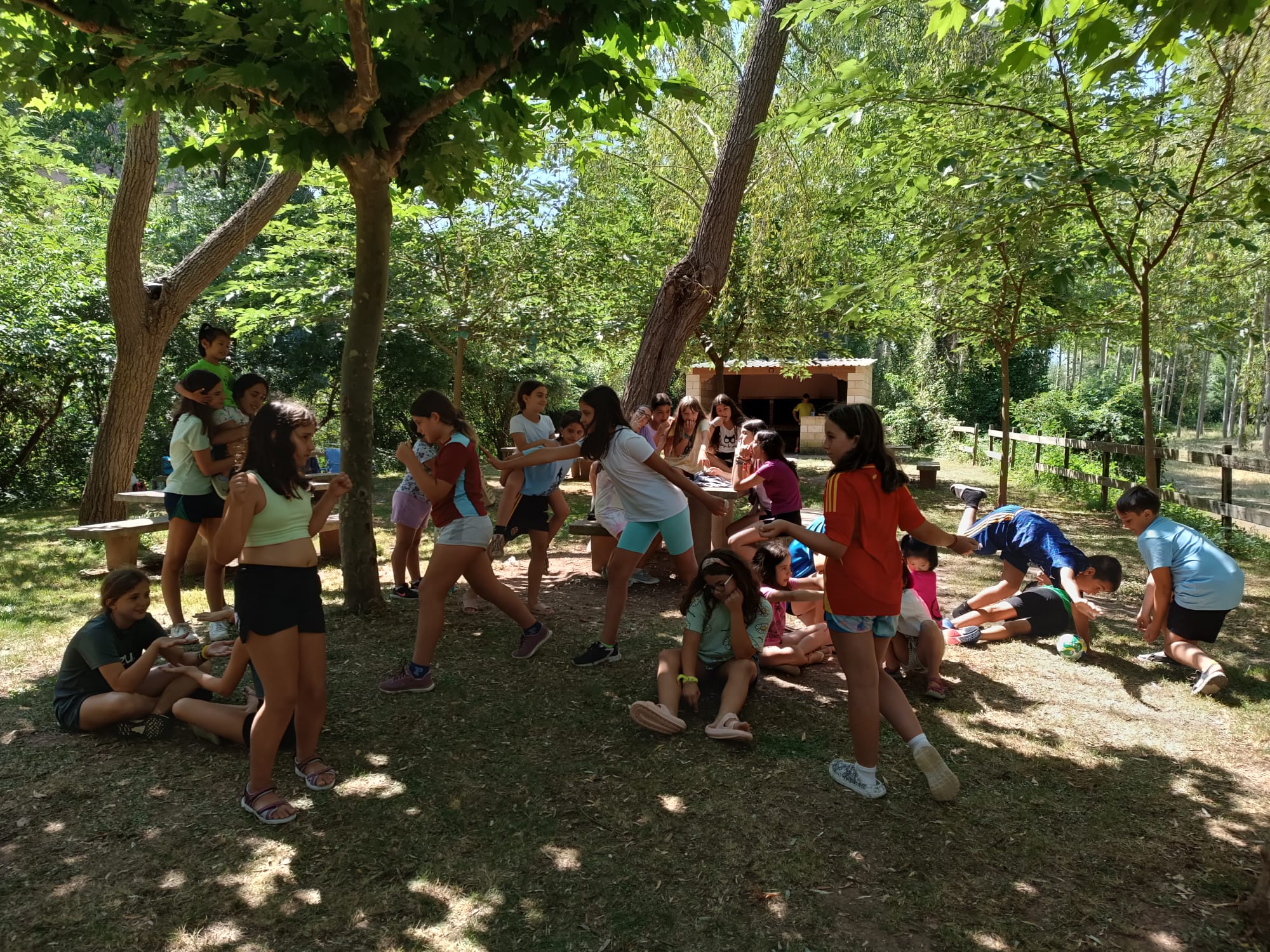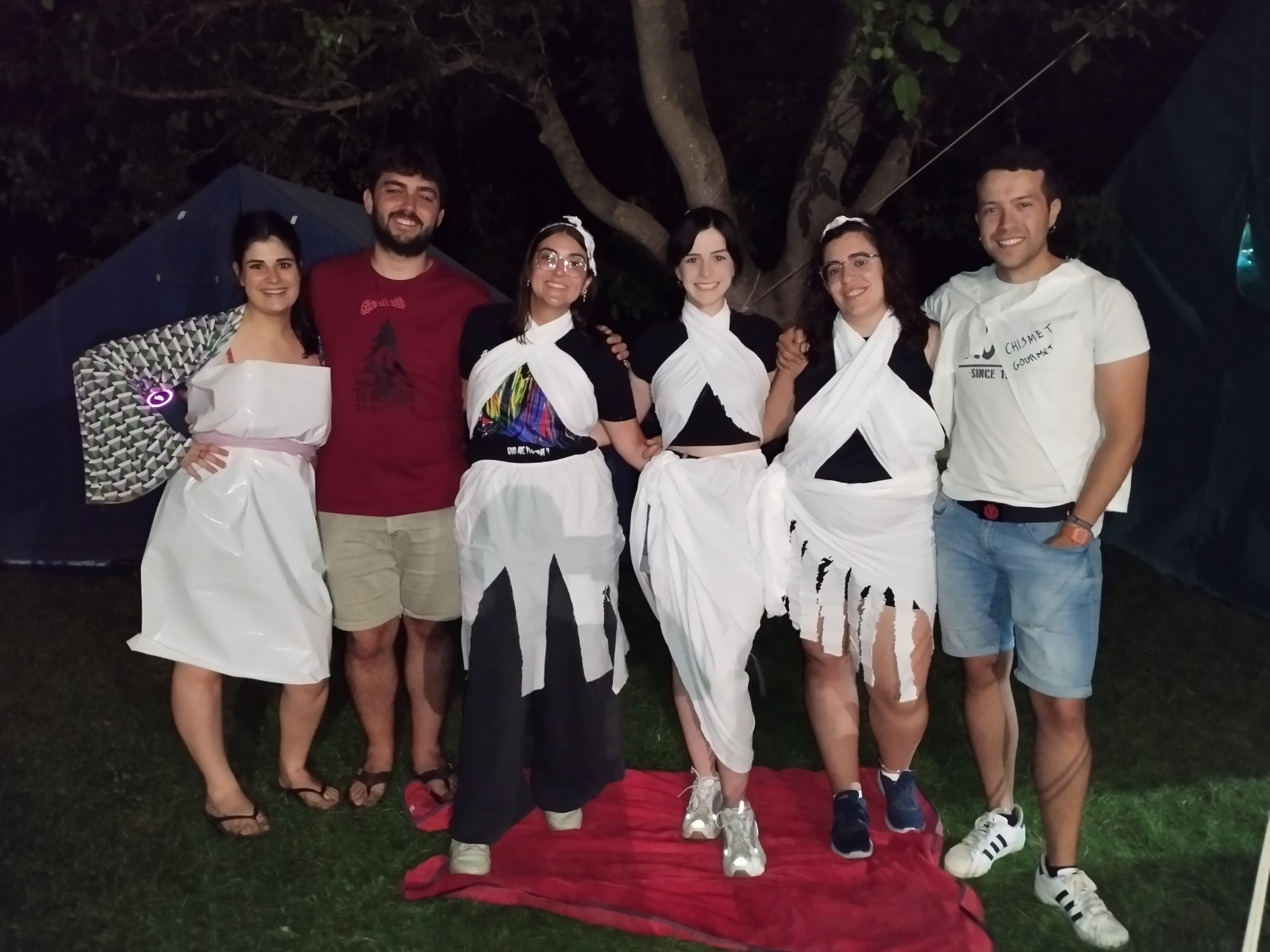 Por la tarde fue el turno de recuperar una tradición perdida. Hace unos años se solía hacer el «día del revés» en el que se le daba la vuelta como un calcetín a todo el campamento: se desayunaba la cena y se merendaba la comida (y viceversa), la ropa interior se ponía por fuera y los acampados más mayores pasaban a ser monitores. Este año fueron las mayores las que tuvieron la iniciativa de proponer esto último y prepararon su propia gymkhana, en la que pusieron a prueba nuestros conocimientos artísticos.