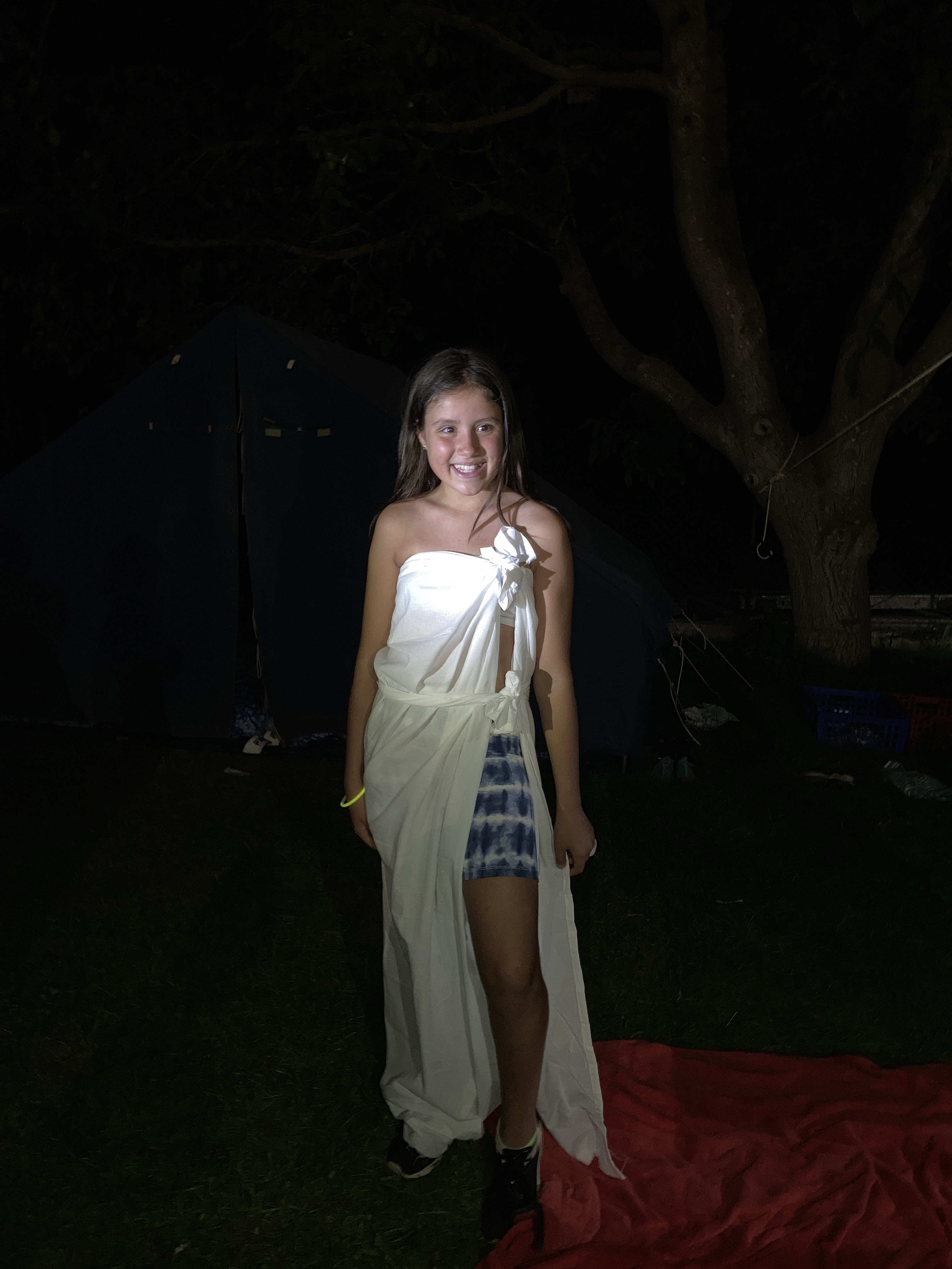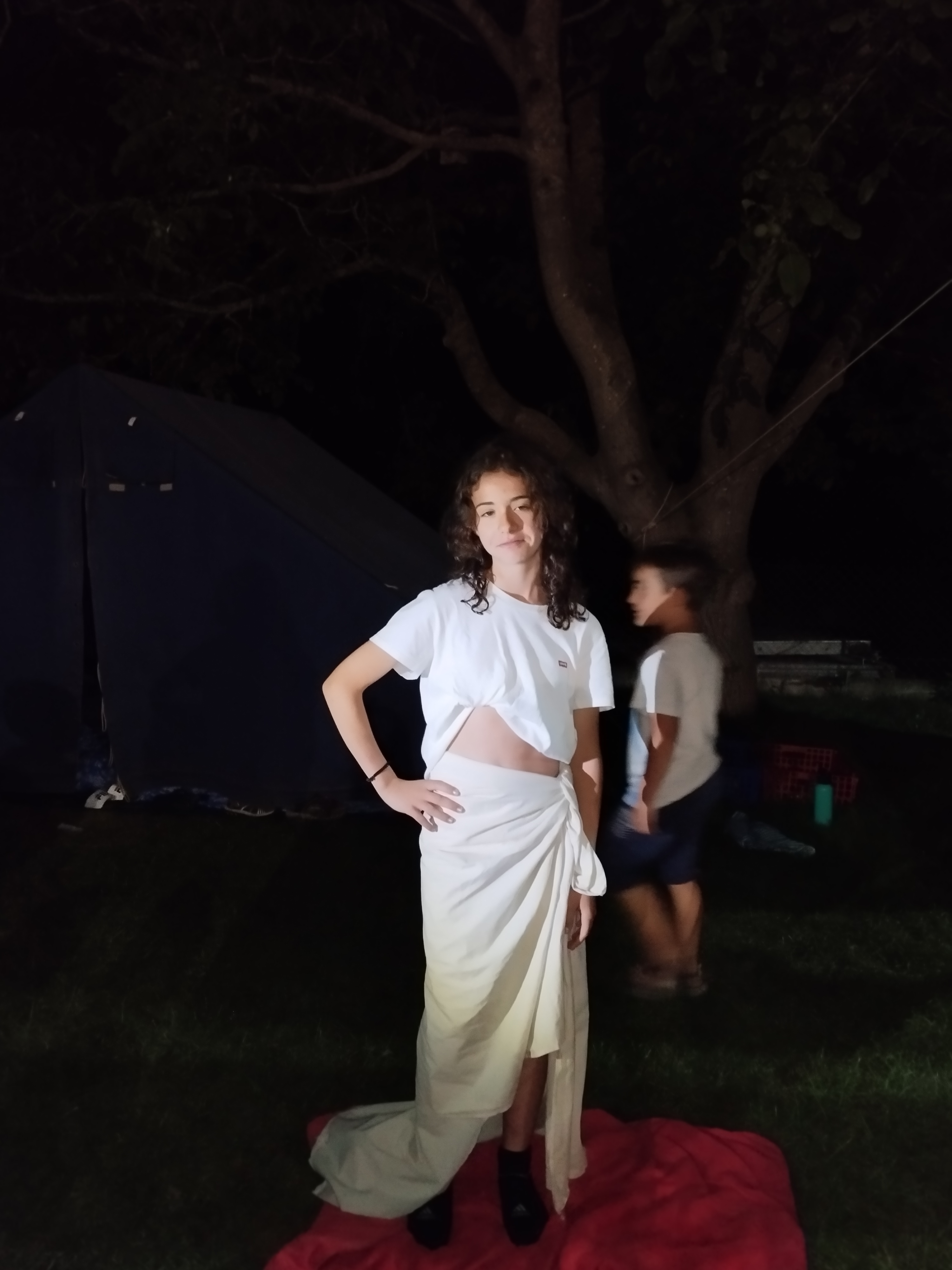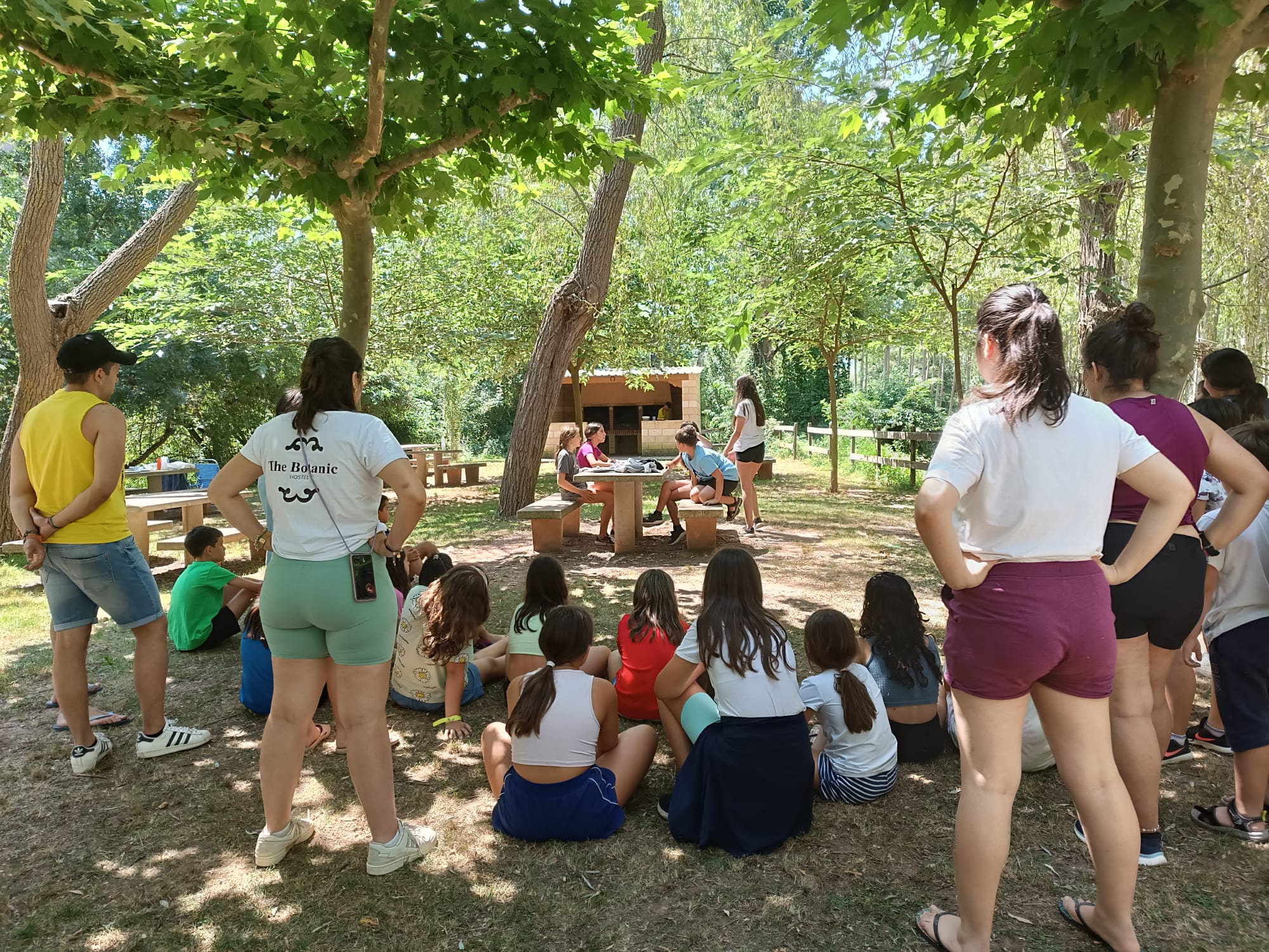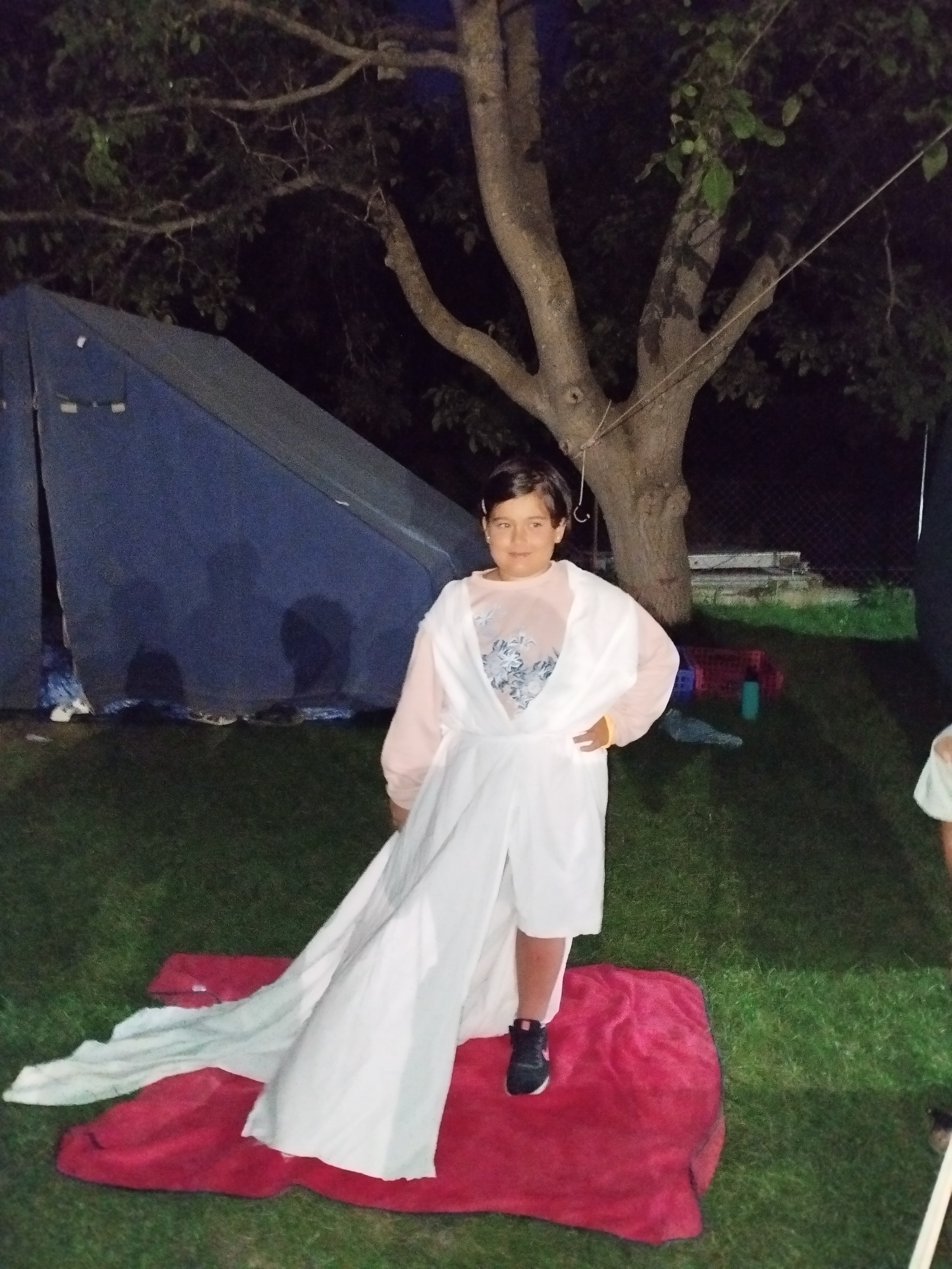 Por la tarde fue el turno de recuperar una tradición perdida. Hace unos años se solía hacer el «día del revés» en el que se le daba la vuelta como un calcetín a todo el campamento: se desayunaba la cena y se merendaba la comida (y viceversa), la ropa interior se ponía por fuera y los acampados más mayores pasaban a ser monitores. Este año fueron las mayores las que tuvieron la iniciativa de proponer esto último y prepararon su propia gymkhana, en la que pusieron a prueba nuestros conocimientos artísticos.