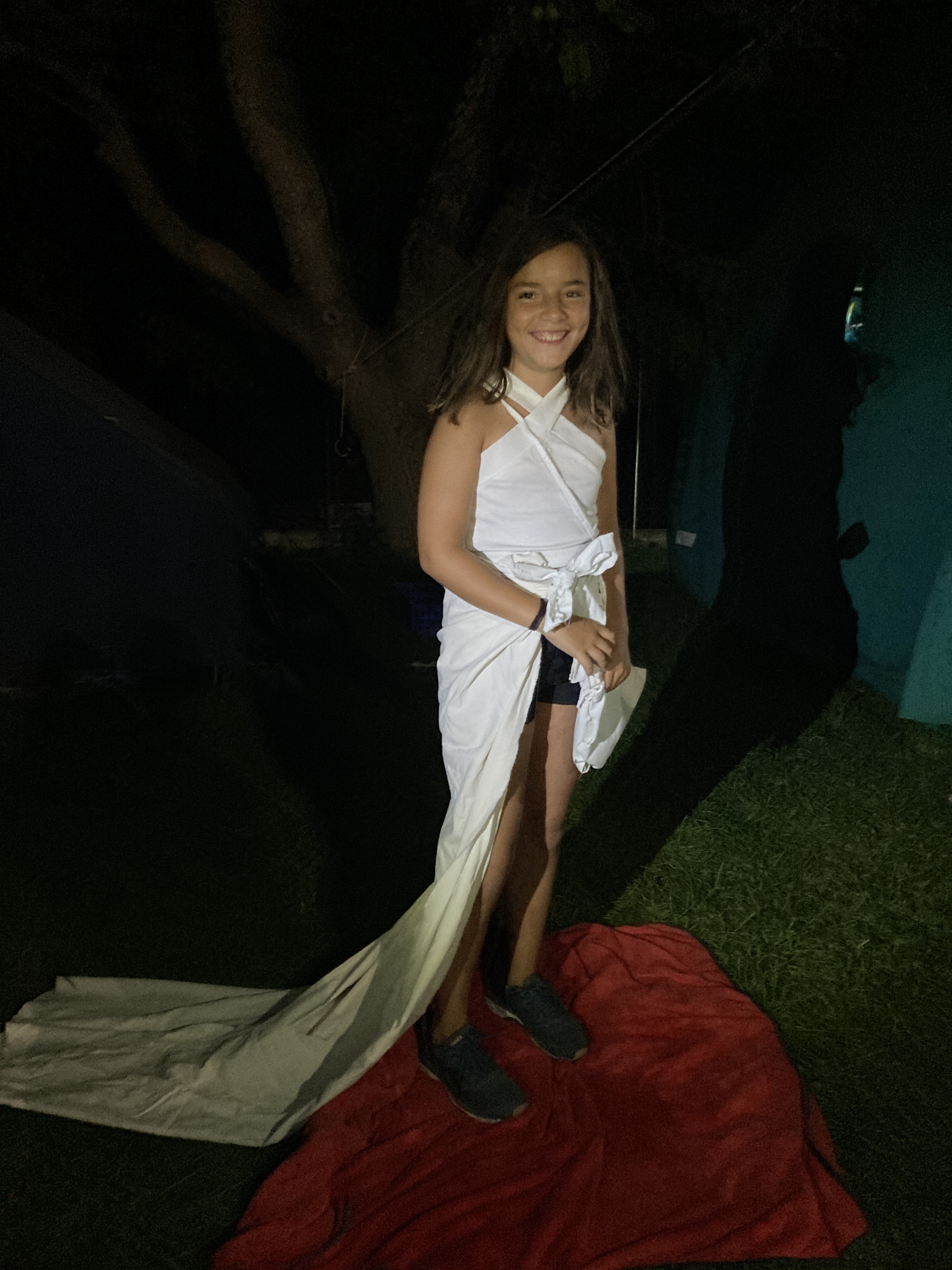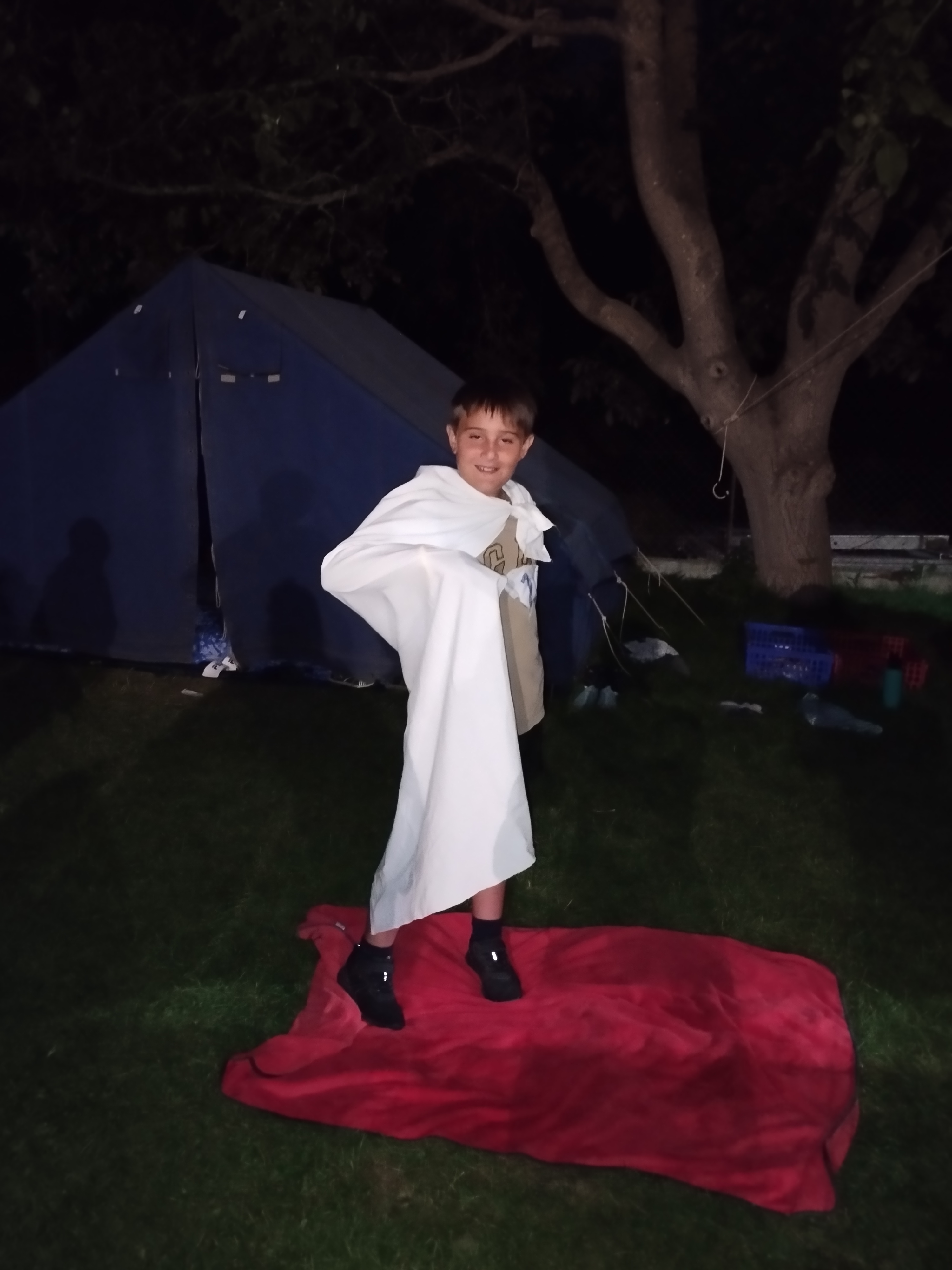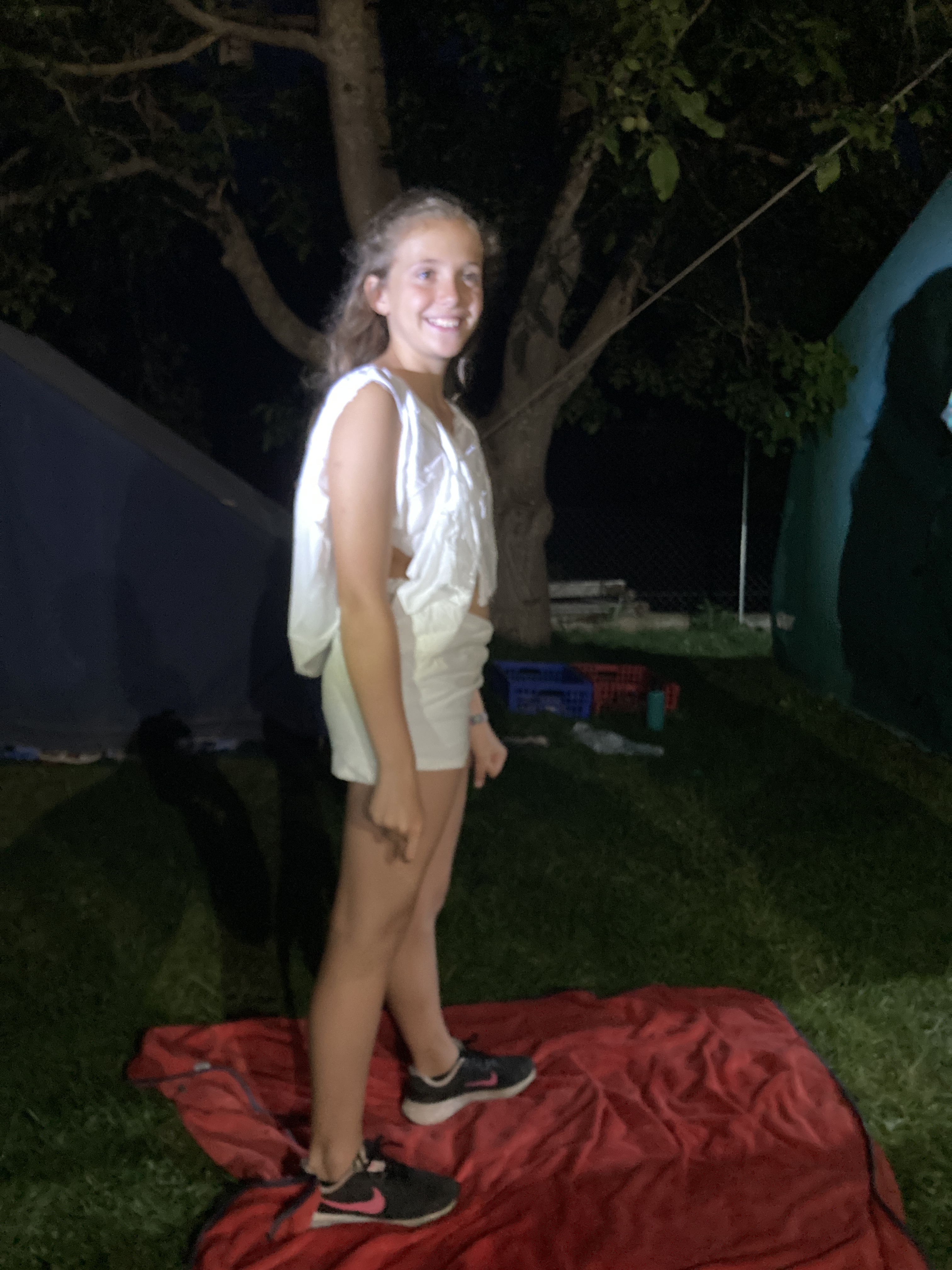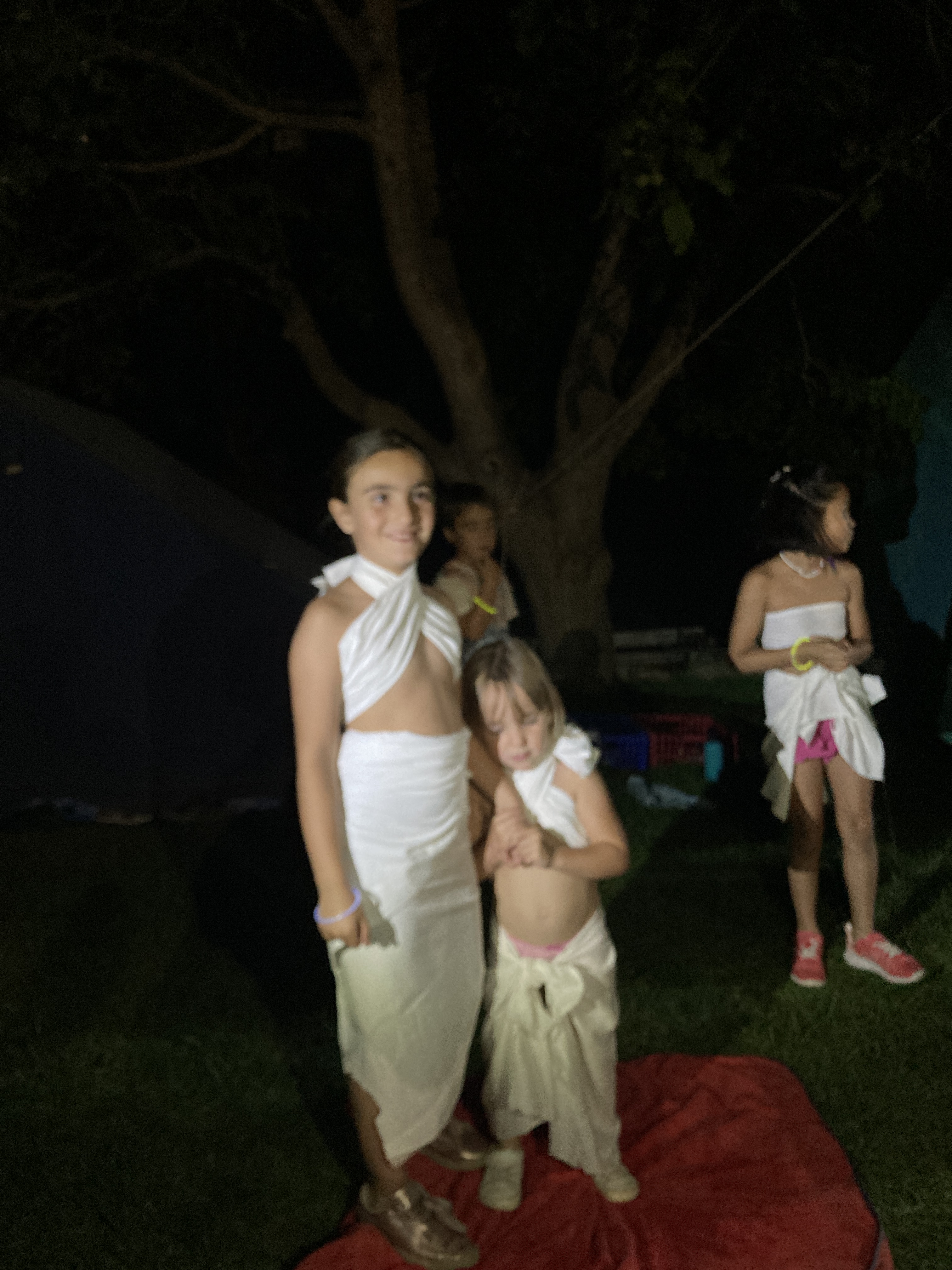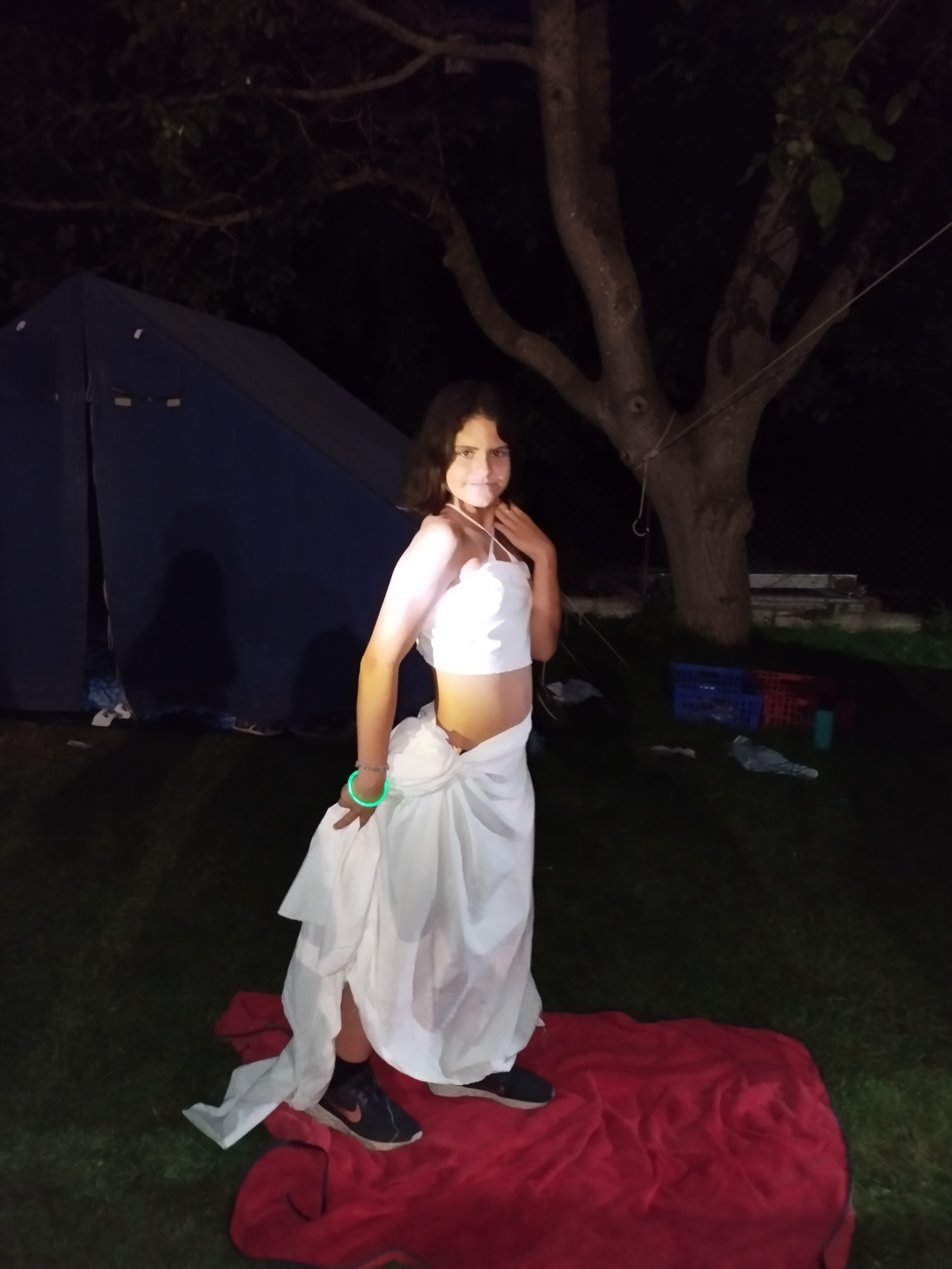 Por la tarde fue el turno de recuperar una tradición perdida. Hace unos años se solía hacer el «día del revés» en el que se le daba la vuelta como un calcetín a todo el campamento: se desayunaba la cena y se merendaba la comida (y viceversa), la ropa interior se ponía por fuera y los acampados más mayores pasaban a ser monitores. Este año fueron las mayores las que tuvieron la iniciativa de proponer esto último y prepararon su propia gymkhana, en la que pusieron a prueba nuestros conocimientos artísticos.