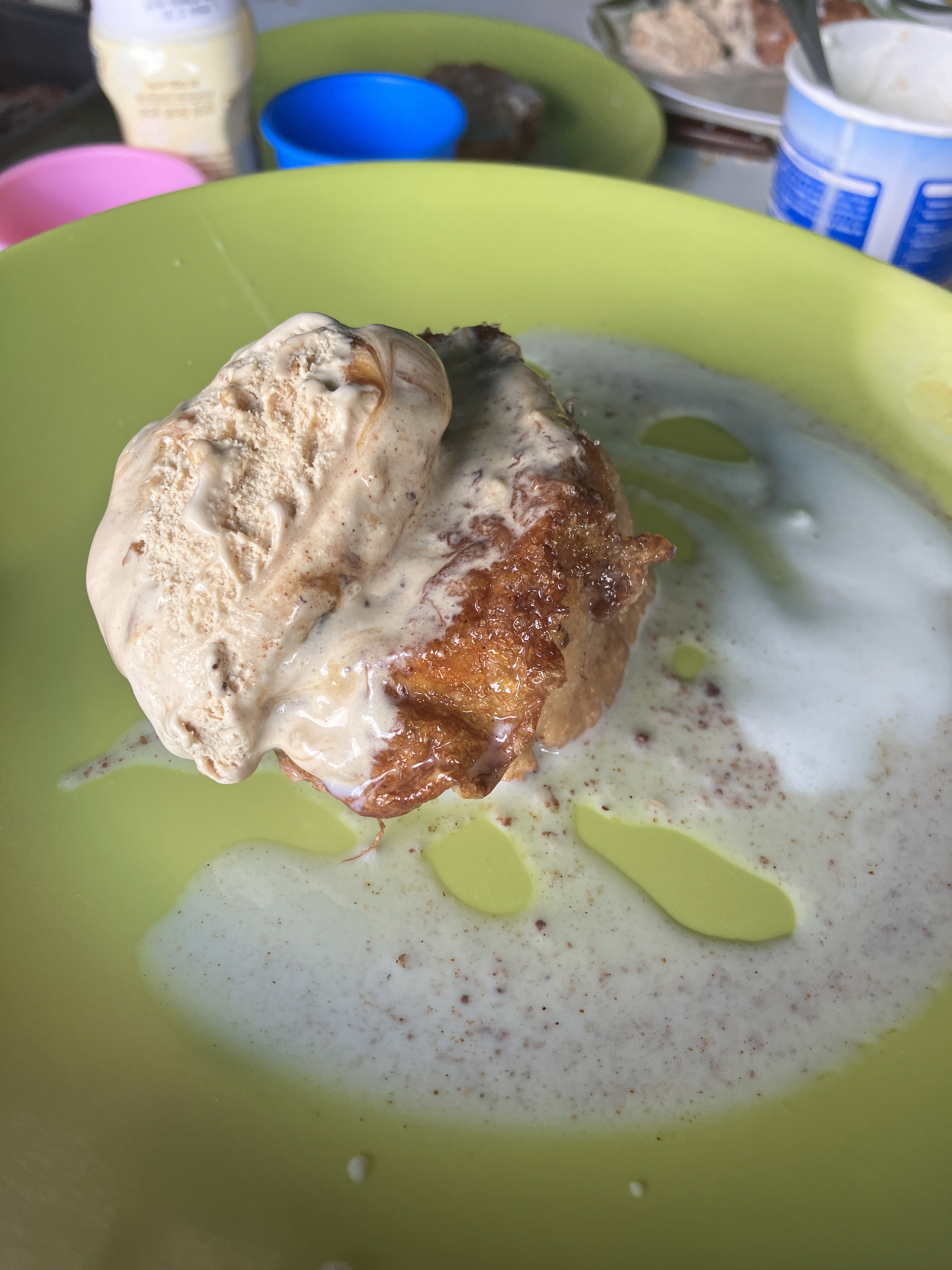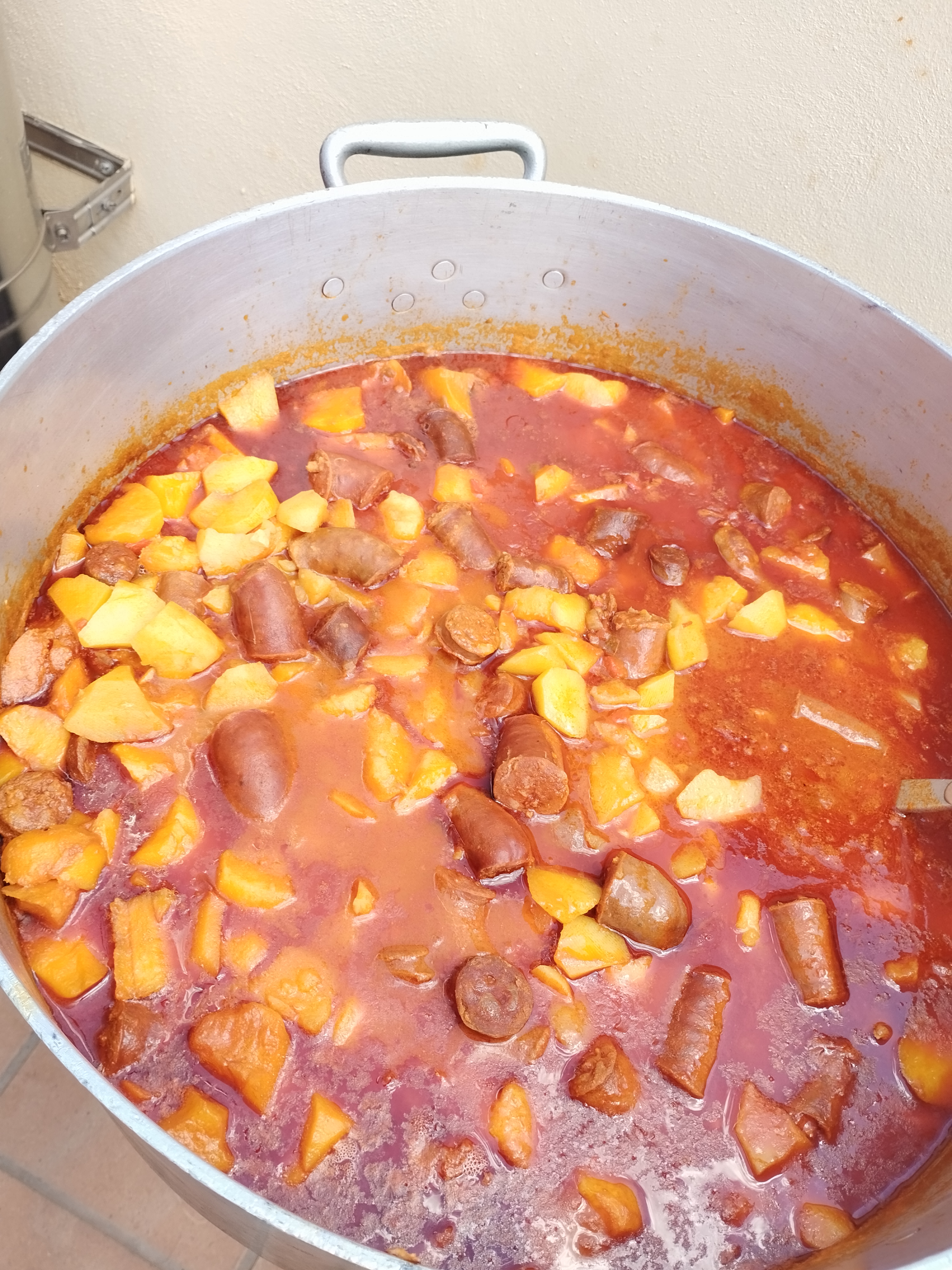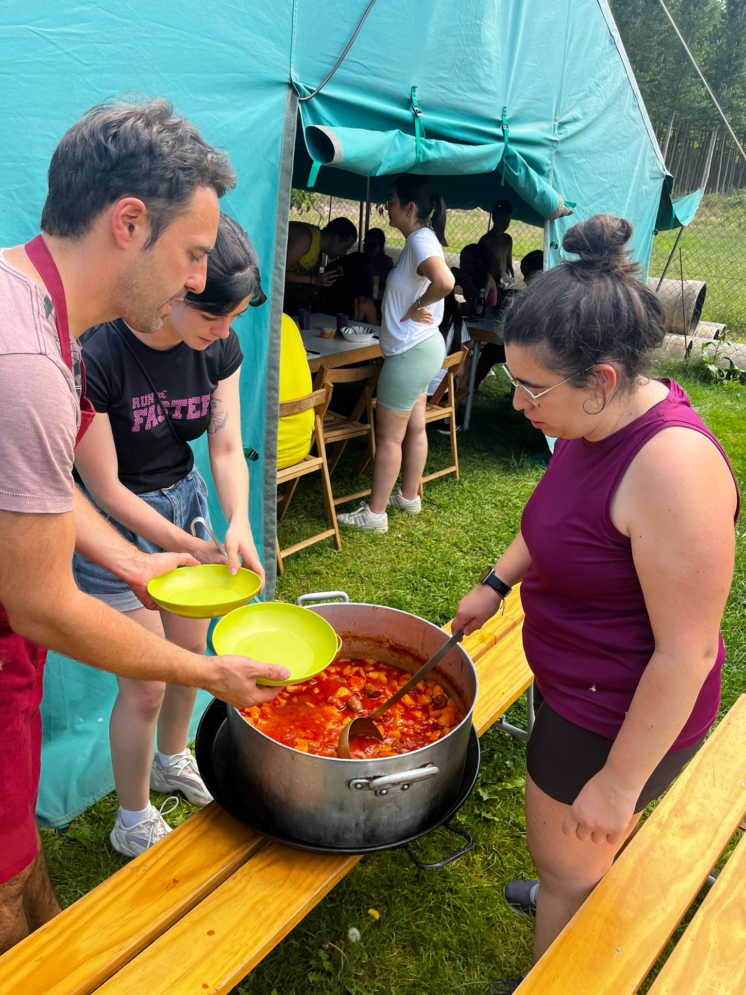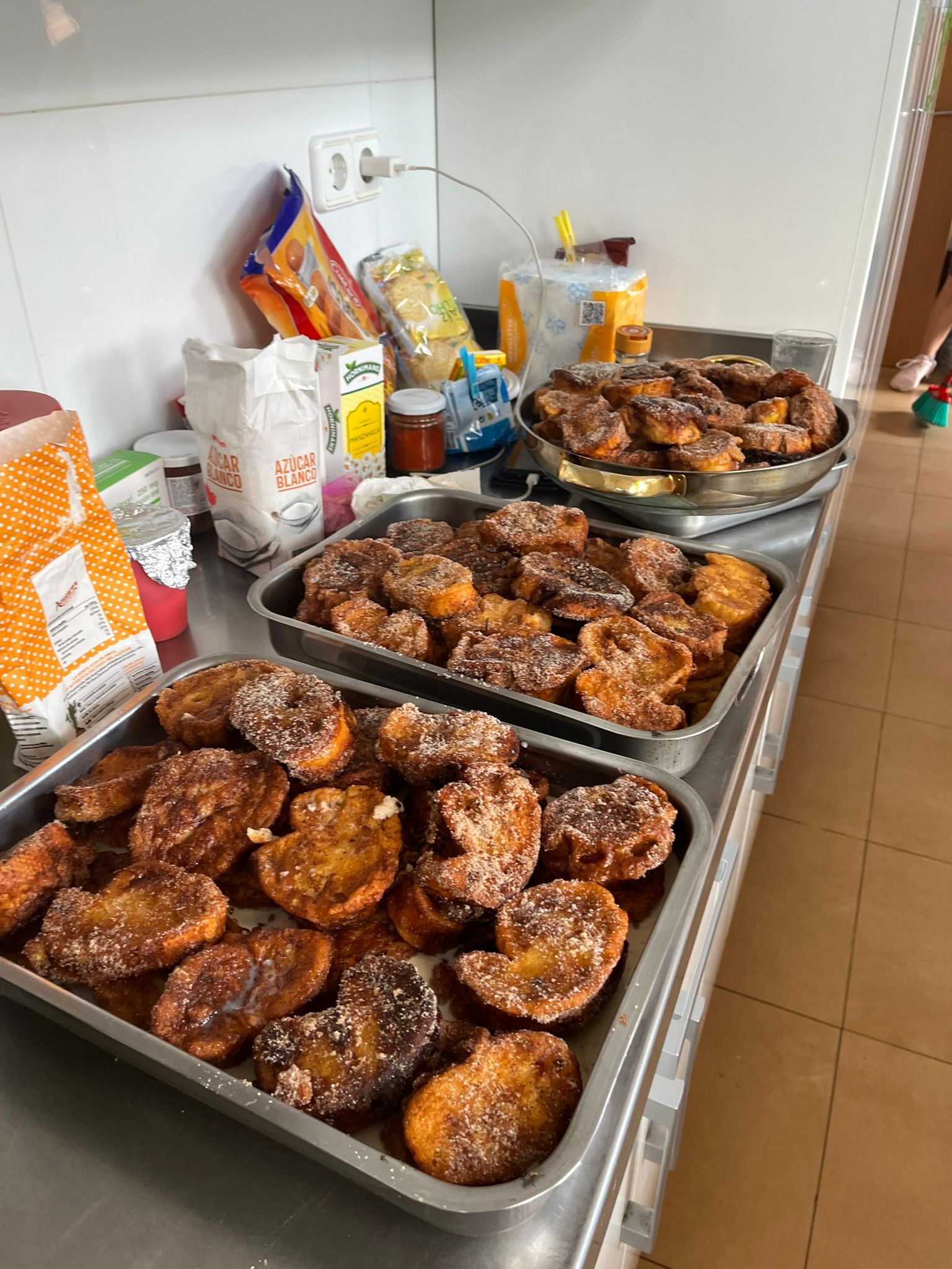 Para comer, Alfonso, Myriam, Paola y Joanes nos prepararon una caldereta de patatas a la riojana, aderezadas con pescado rebozado y unas espectaculares torrijas con helado. ¡Qué más se puede pedir!