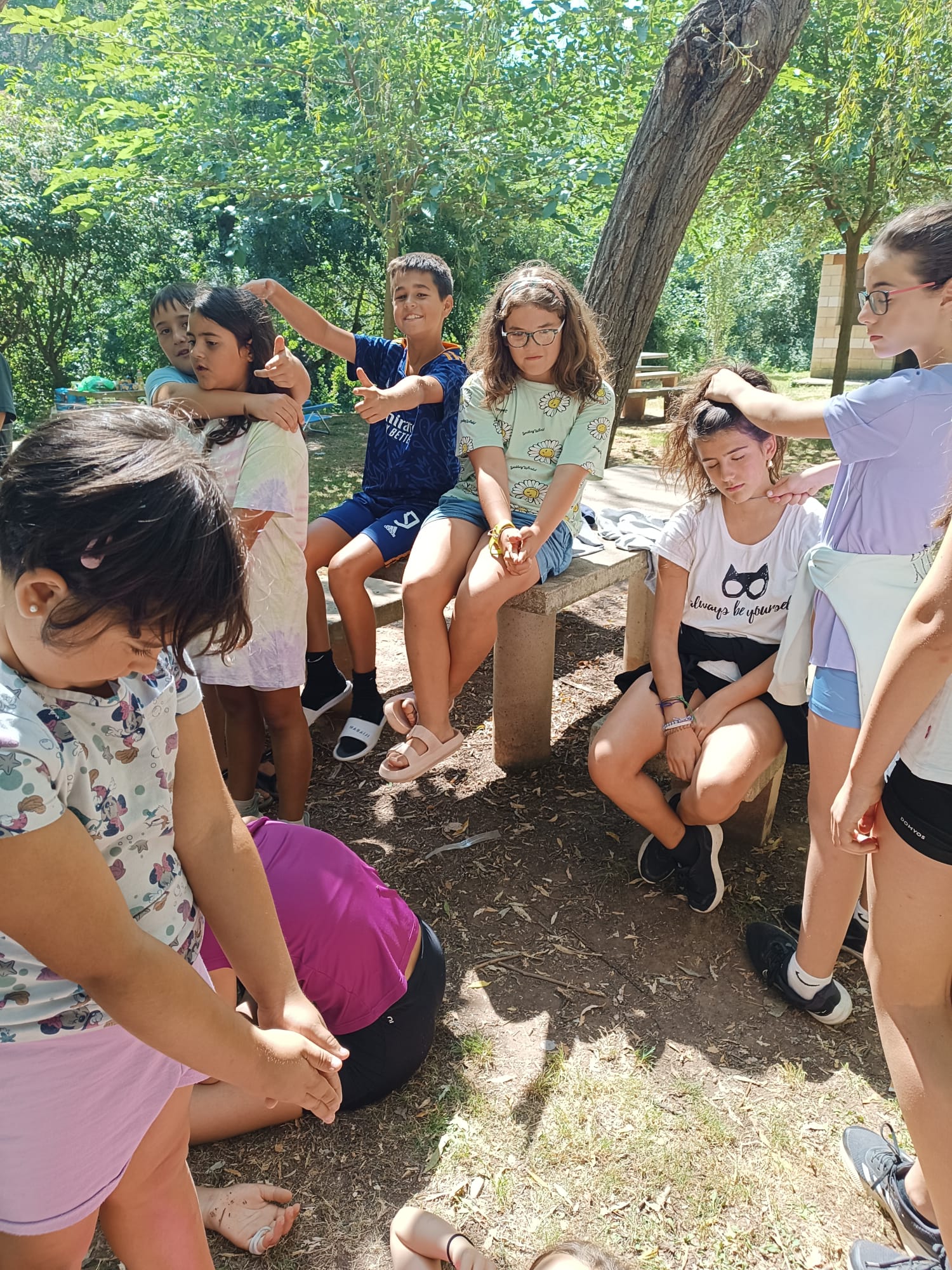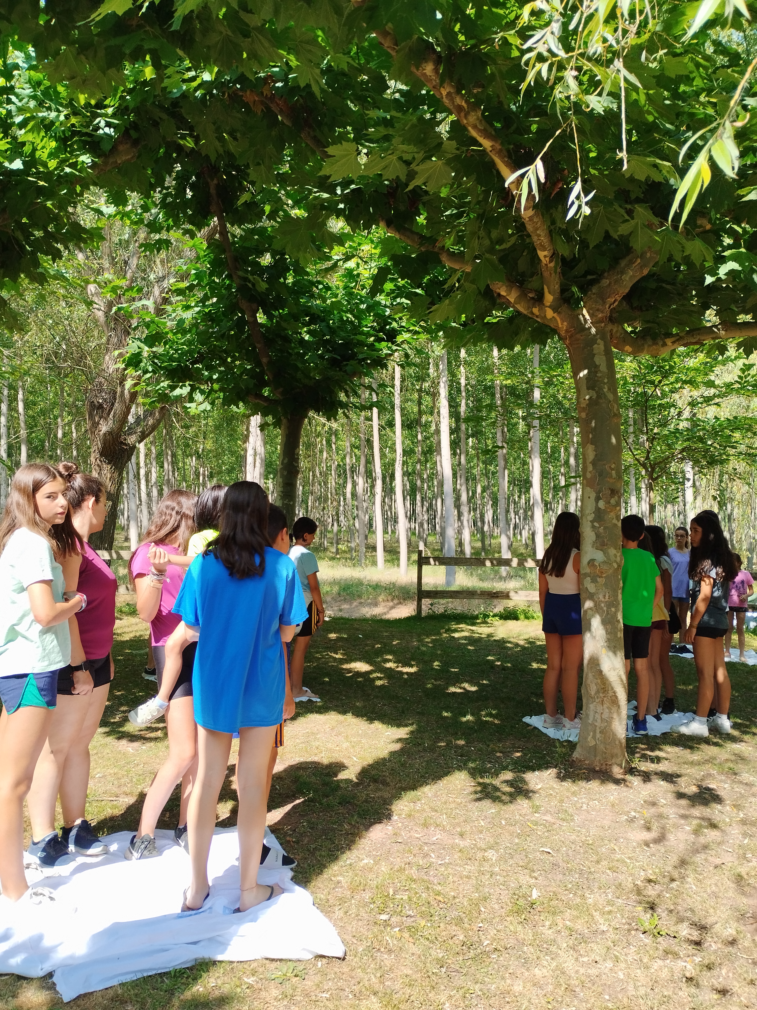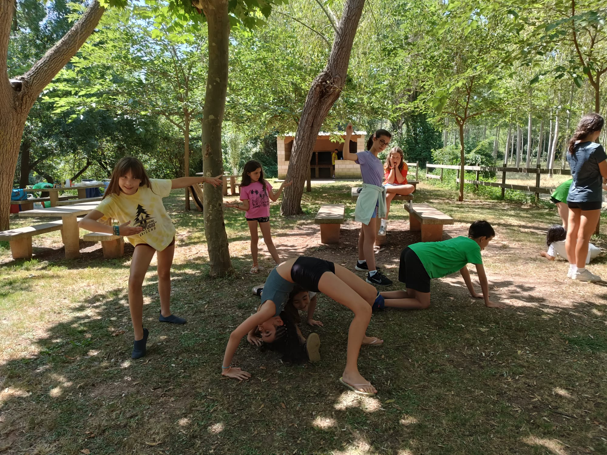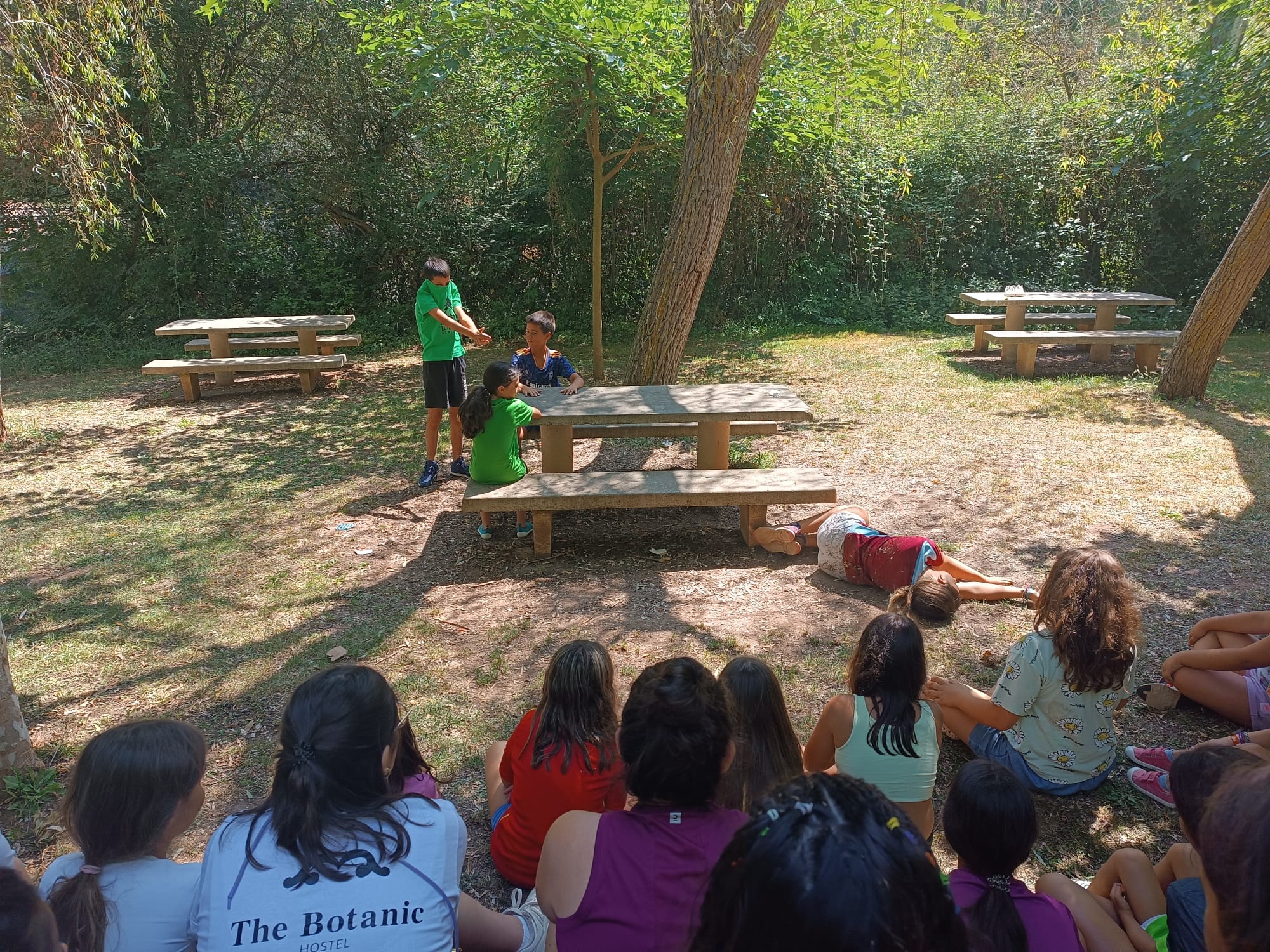 Llegamos ya al último día del campamento, el más intenso en emociones. Y si hablamos de emociones y arte, no cabe duda de que toca hablar del teatro. Por ello, tuvimos una visita especial. Leticia, de Dinámica Teatral, nos enseñó algunas técnicas dramáticas y puso a prueba nuestras dotes actorales con juegos de improvisación.