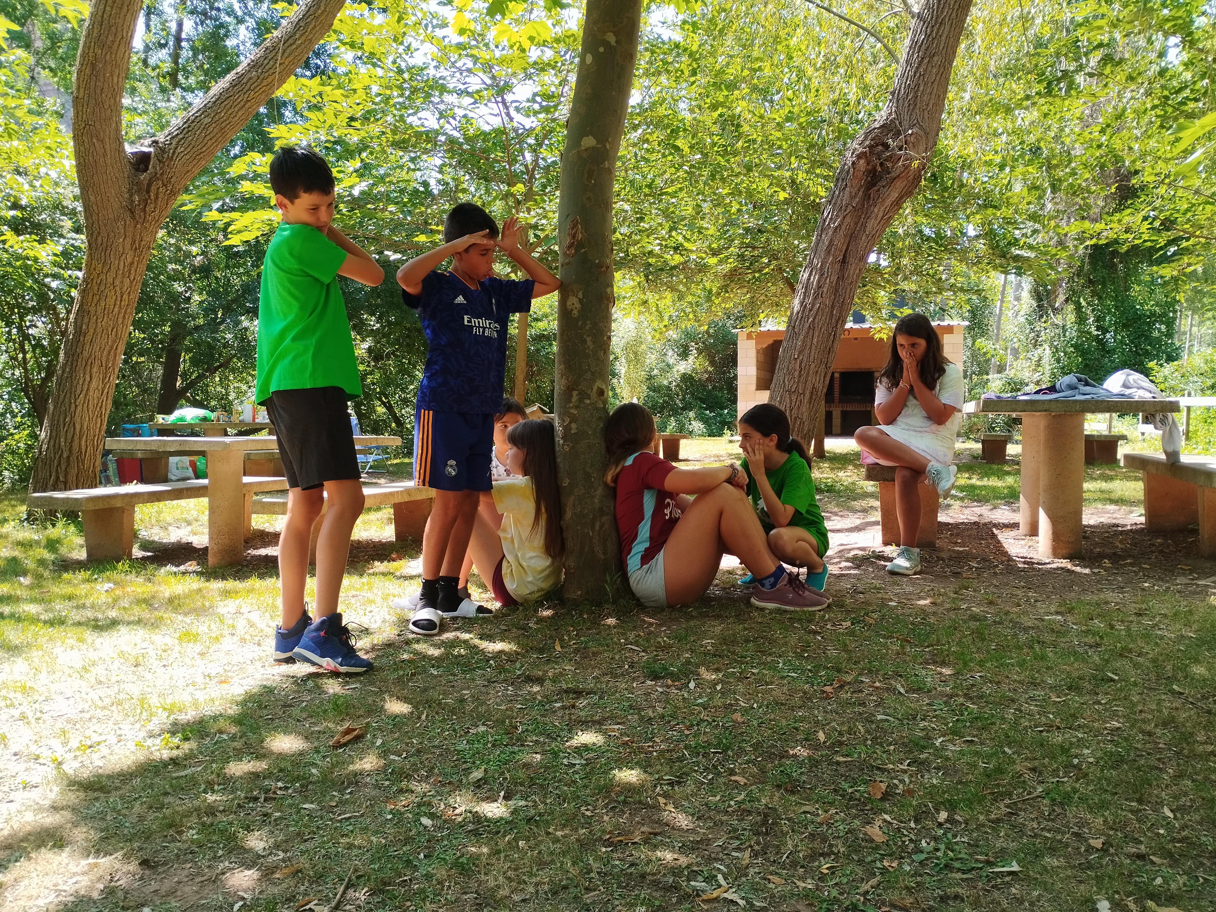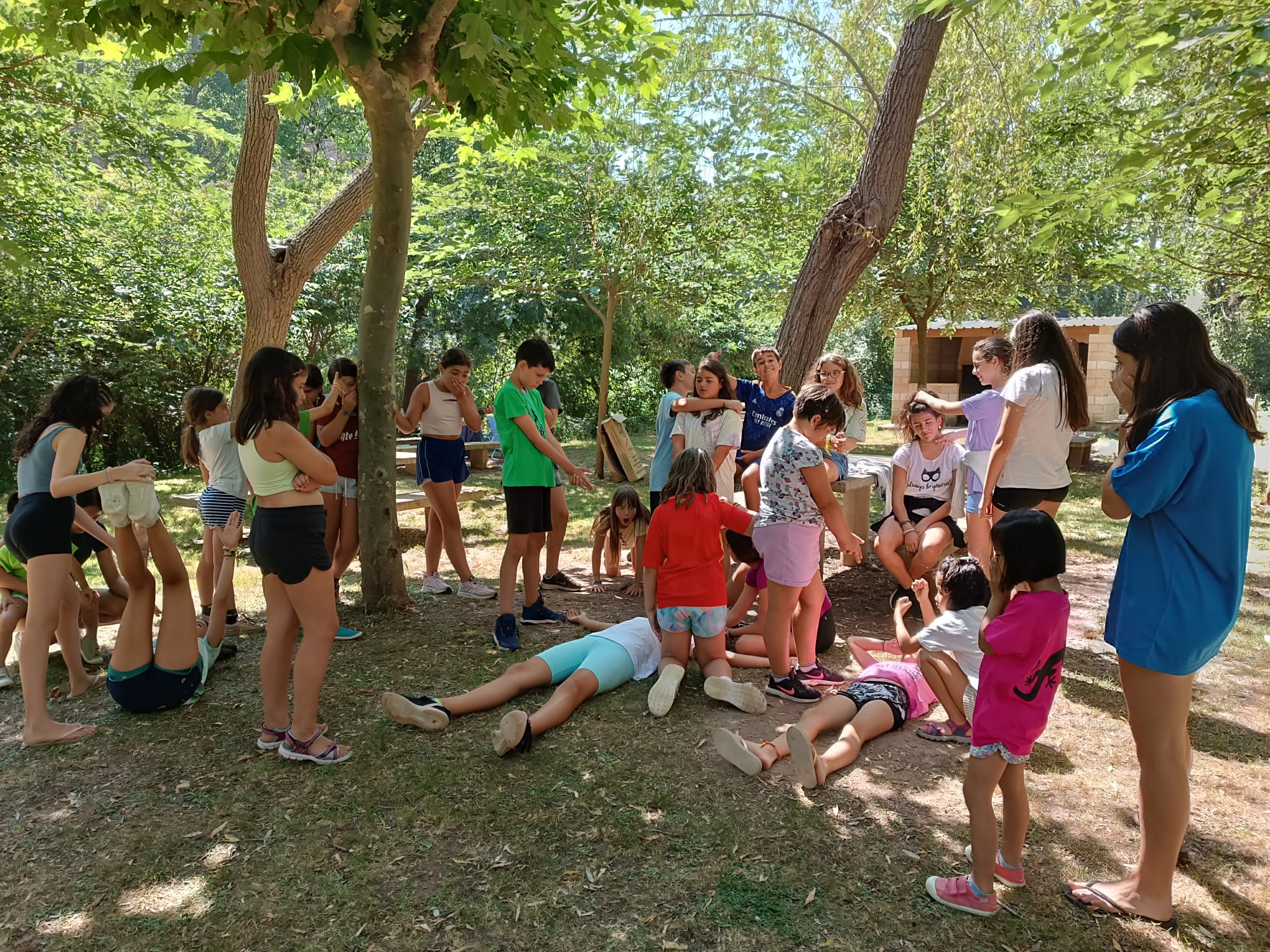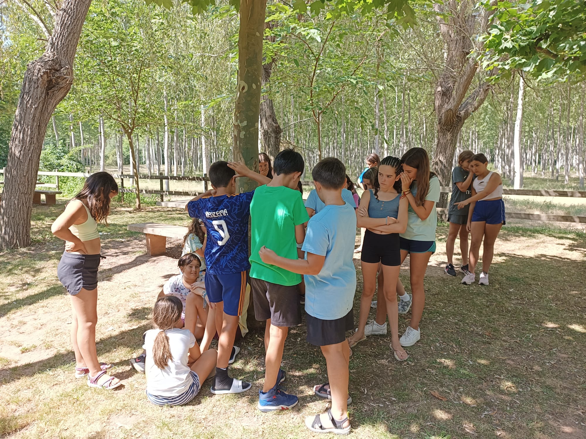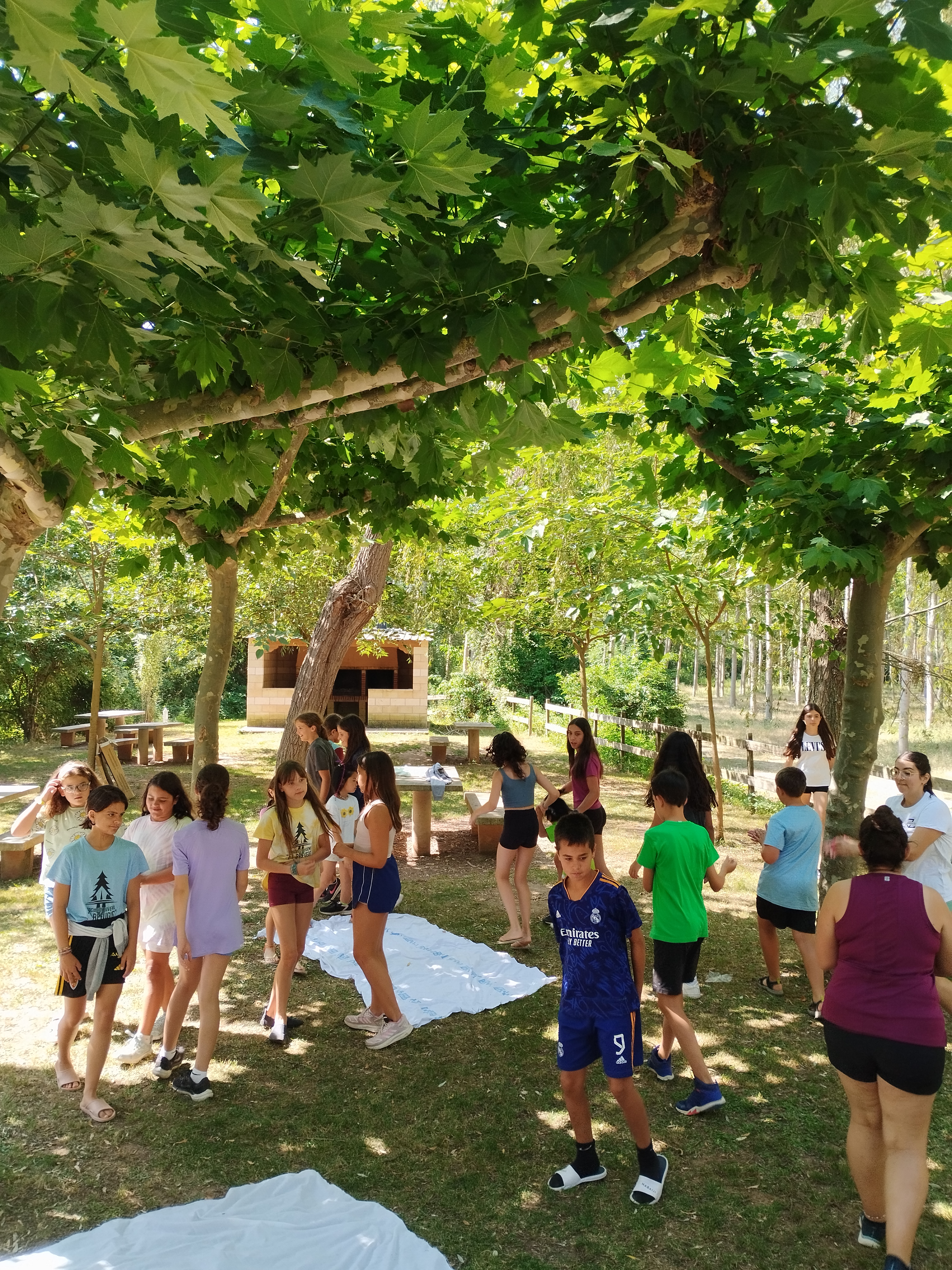 Llegamos ya al último día del campamento, el más intenso en emociones. Y si hablamos de emociones y arte, no cabe duda de que toca hablar del teatro. Por ello, tuvimos una visita especial. Leticia, de Dinámica Teatral, nos enseñó algunas técnicas dramáticas y puso a prueba nuestras dotes actorales con juegos de improvisación.